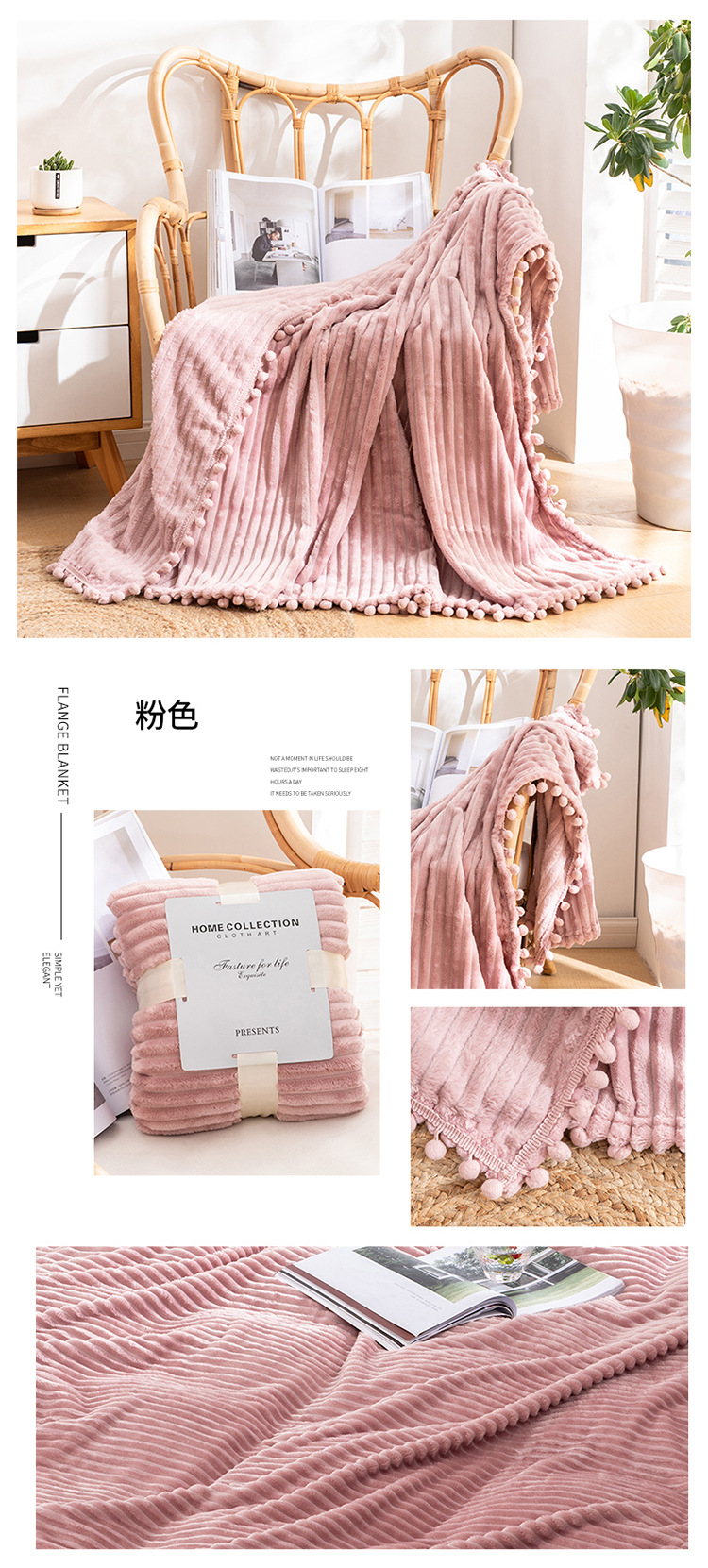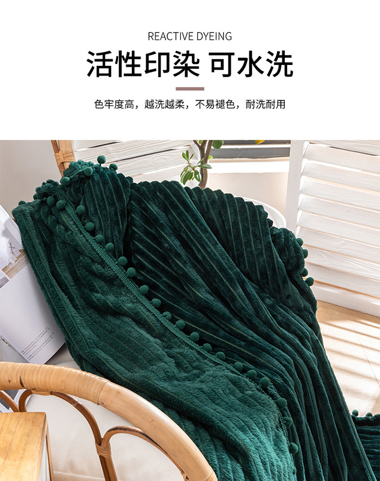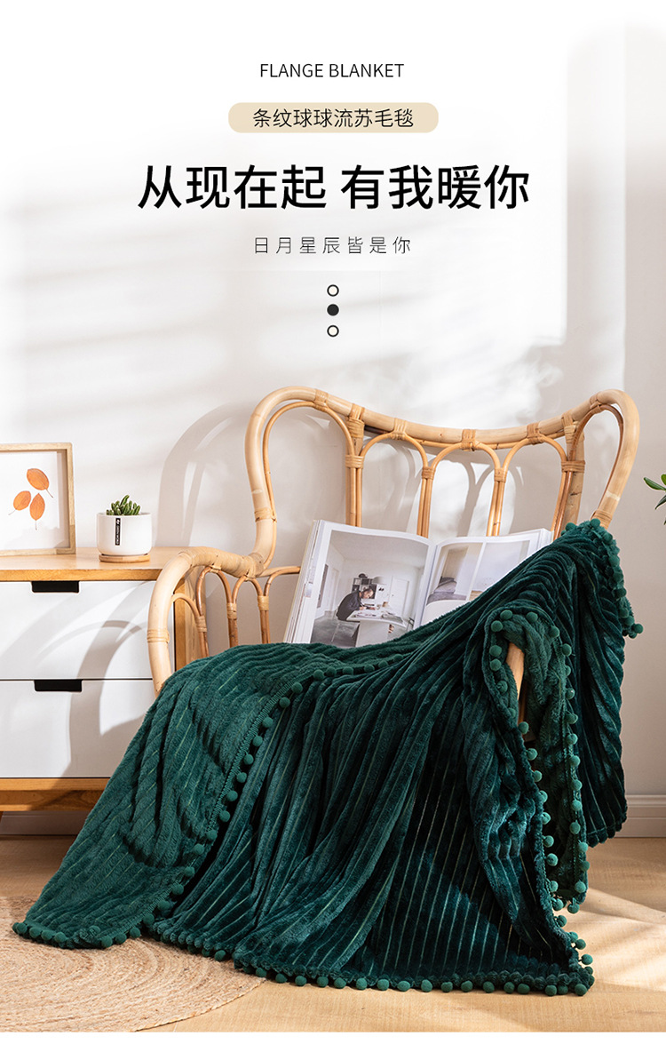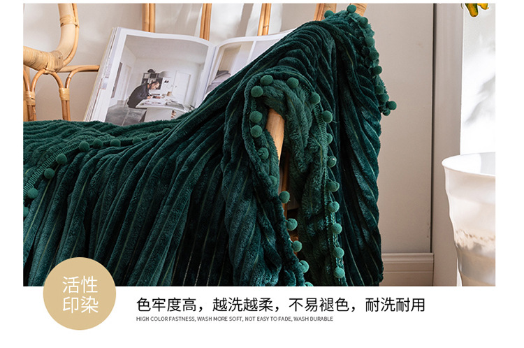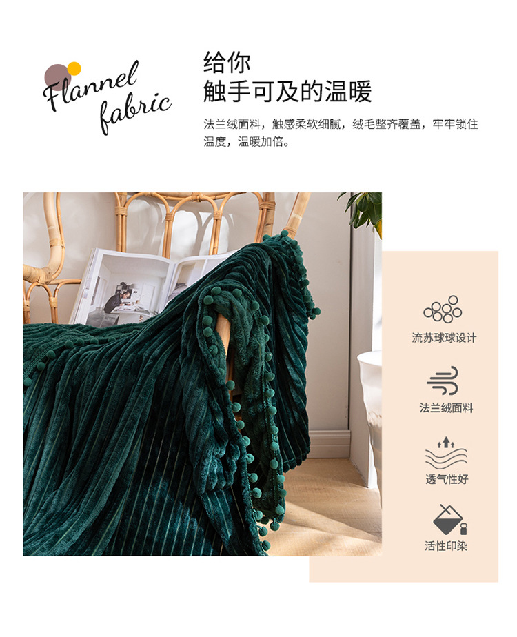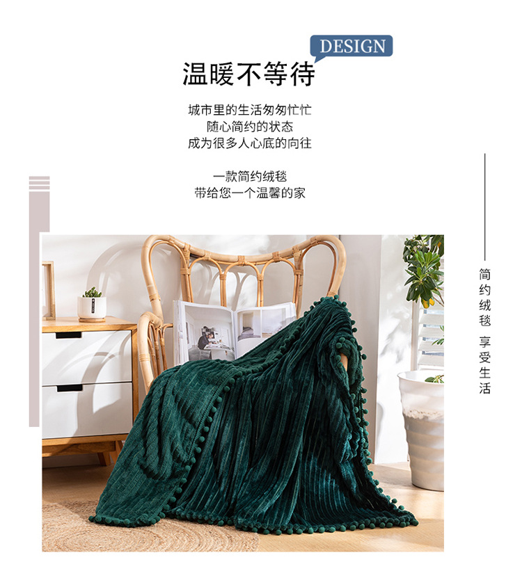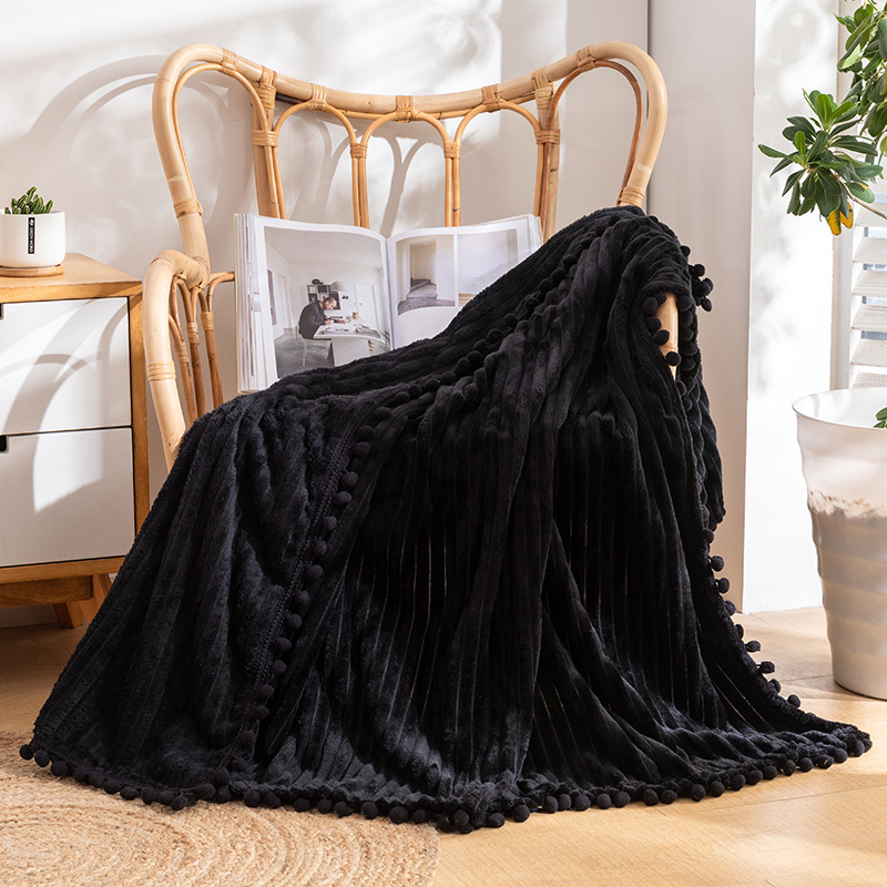 프린지 볼 담요 스트라이프 담요 매직 벨벳 단색 플란넬 사무실 낮잠 담요 사계절 사용 가능
