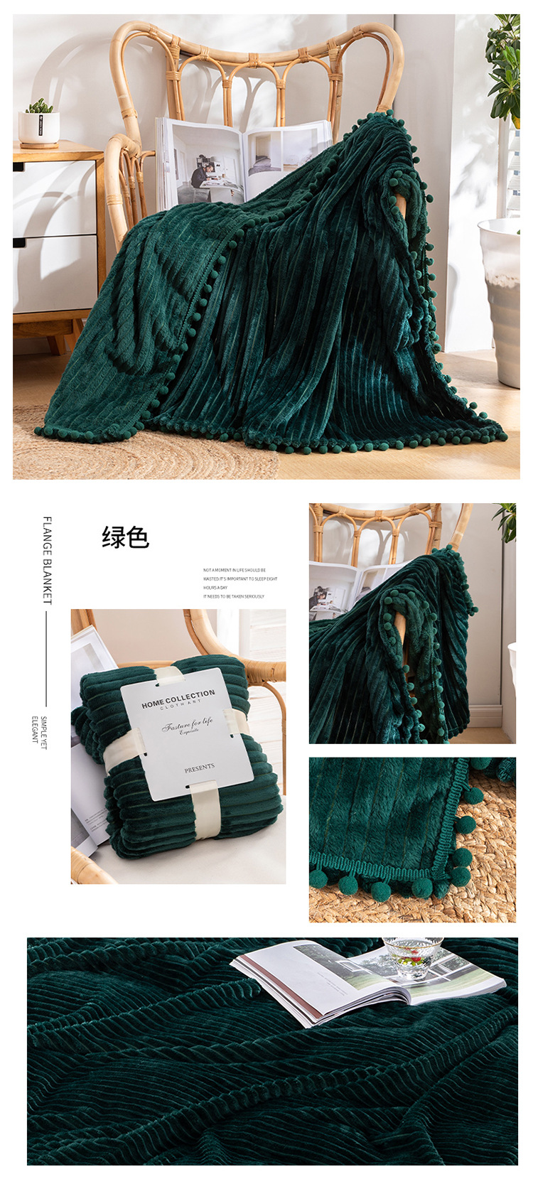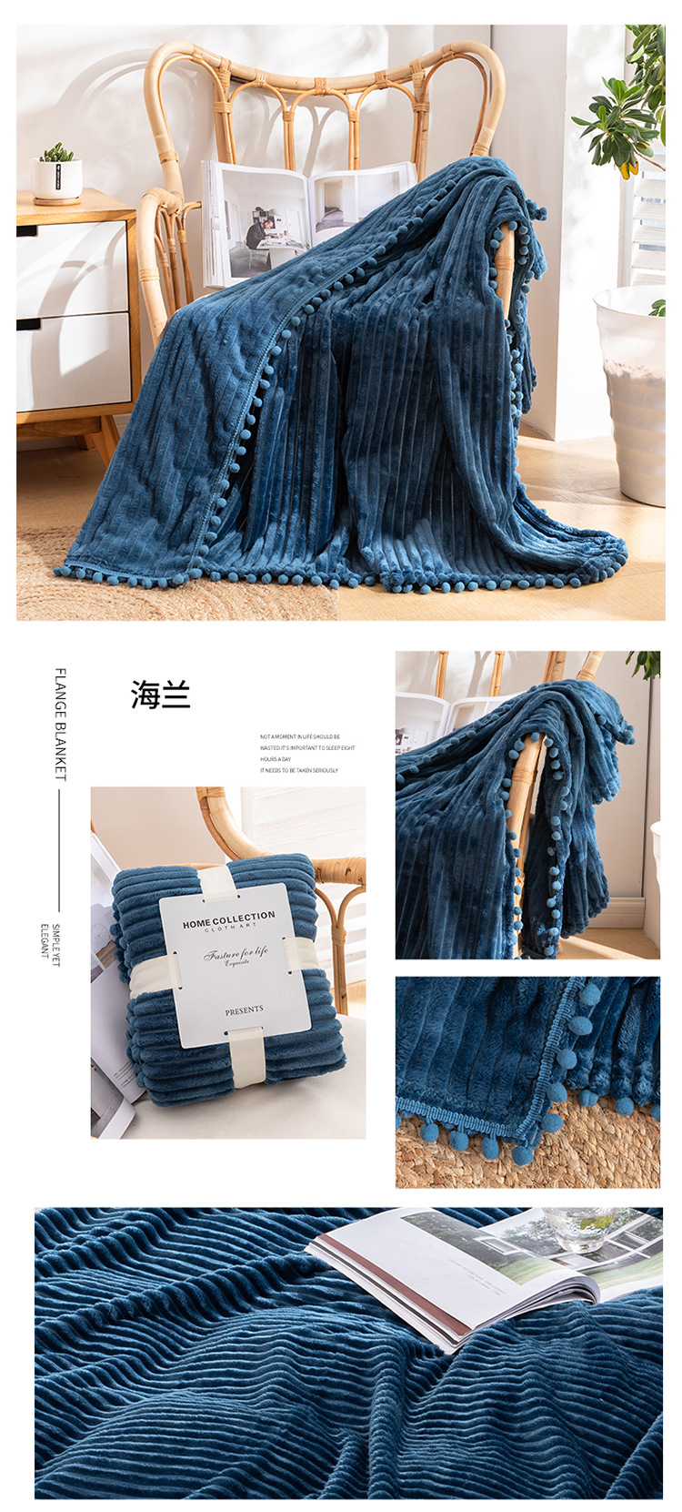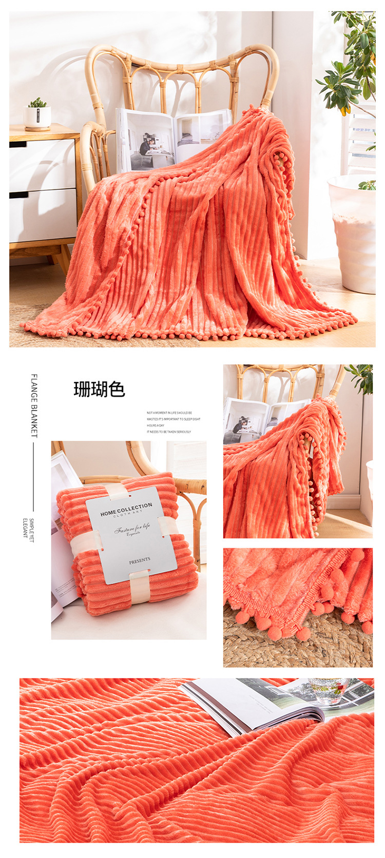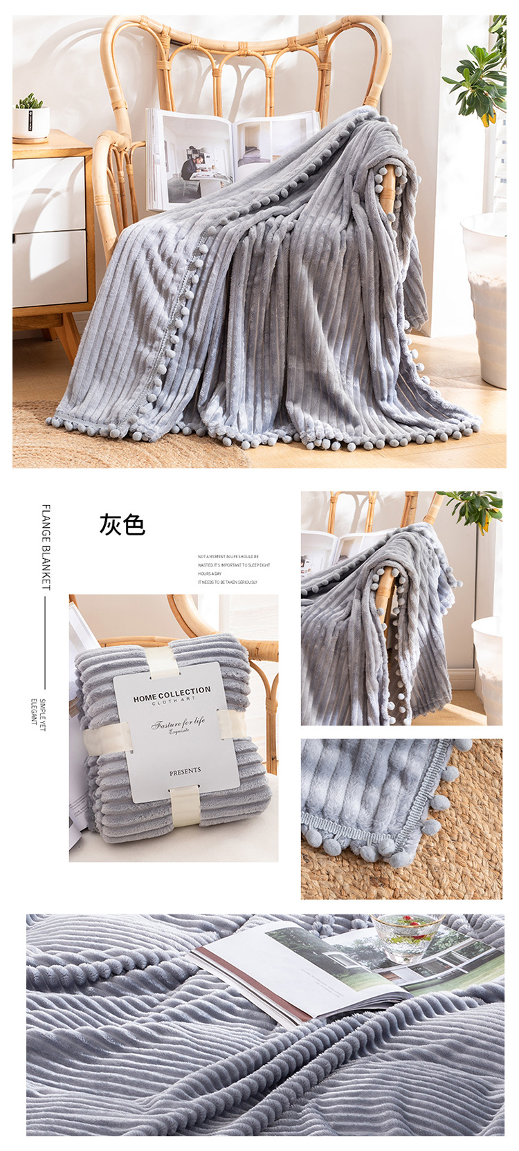 프린지 볼 담요 스트라이프 담요 매직 벨벳 단색 플란넬 사무실 낮잠 담요 사계절 사용 가능