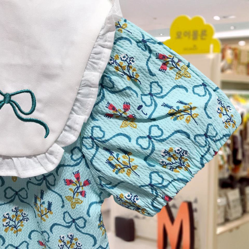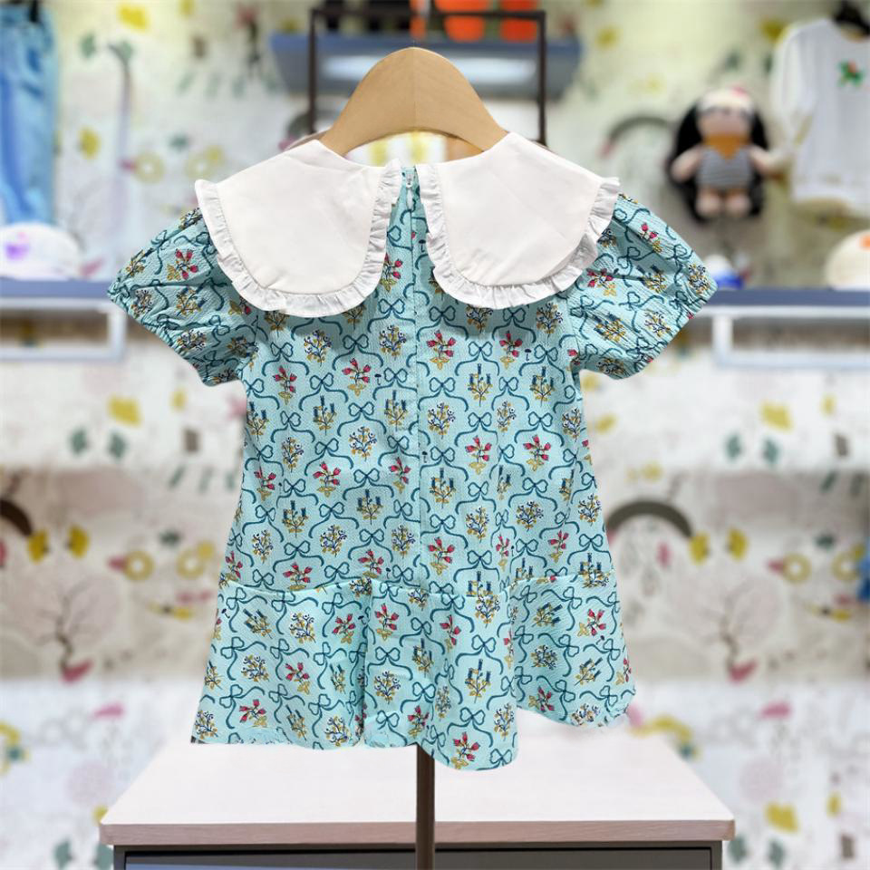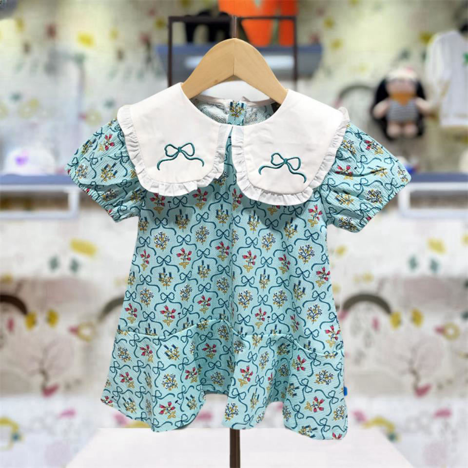 원래 D alu 작은 우산 어린이 의류 여름 소녀 아기 네이비 칼라 짧은 소매 인쇄 원피스 MS440106스토어 가기