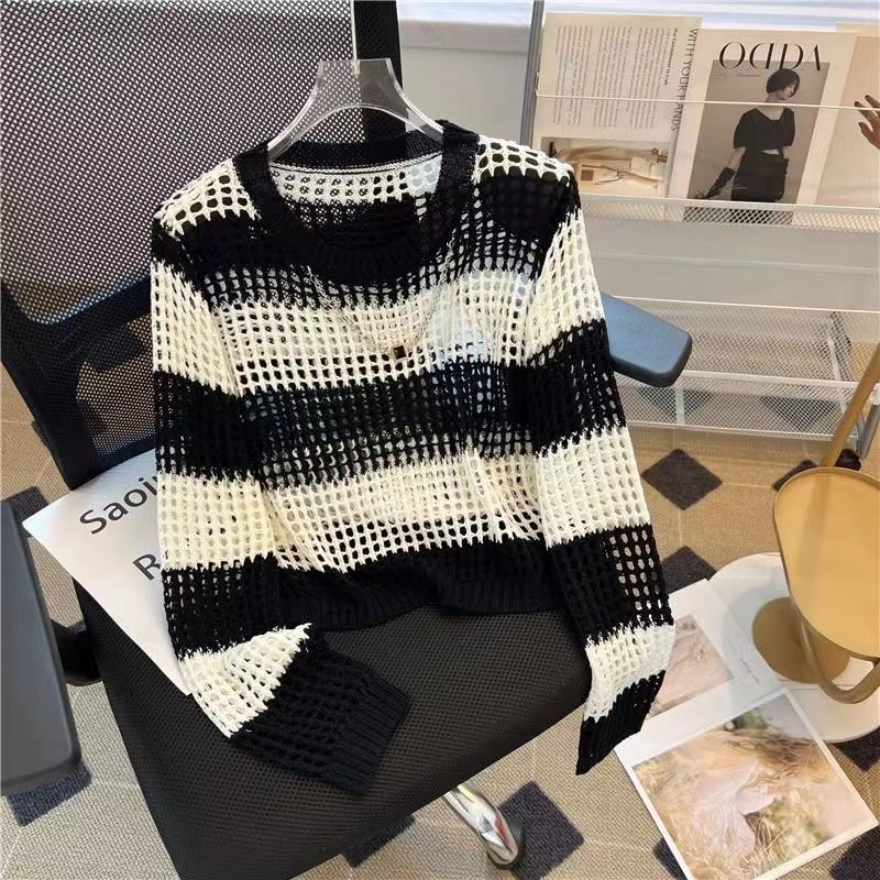 여성을 위한 새로운 여름 중공 스웨터, 얇고 루즈하며 스타일리시하고 짧은 자외선 차단 아우터 블라우스, 핫걸 탑