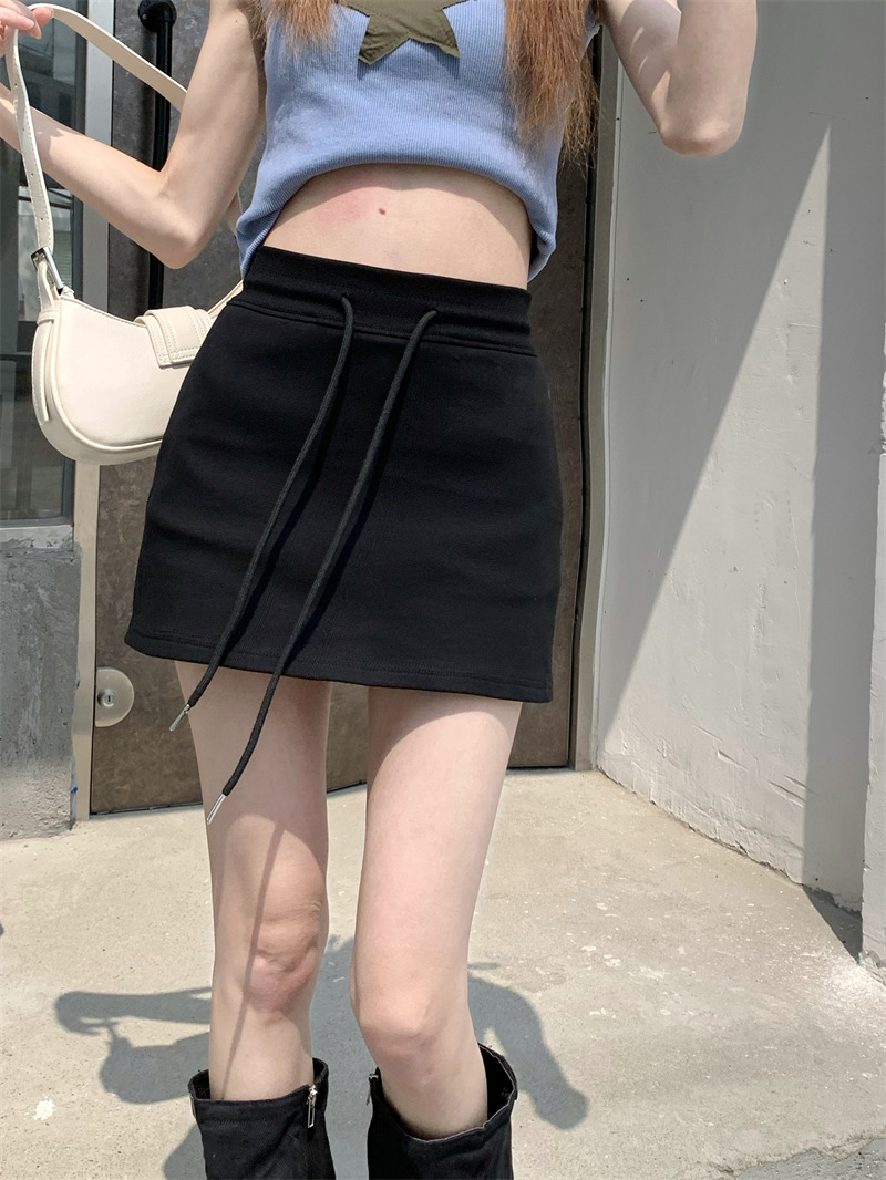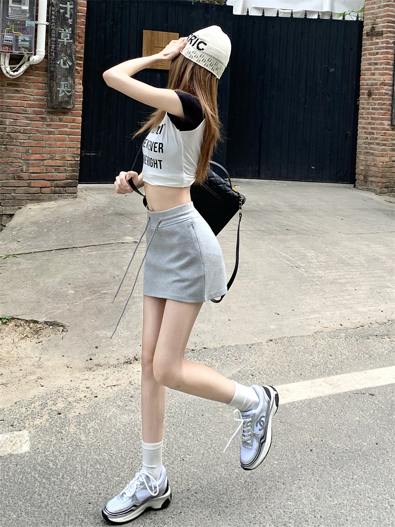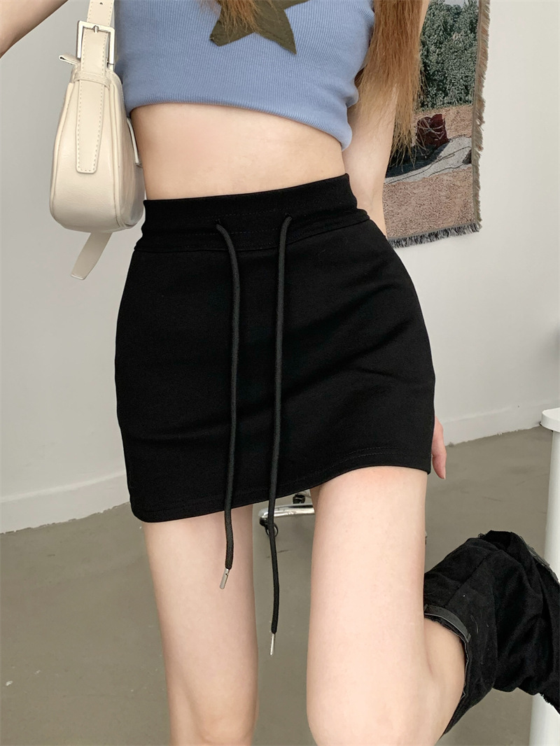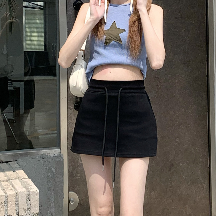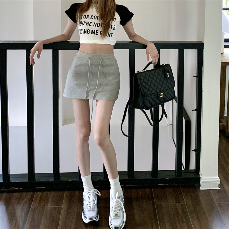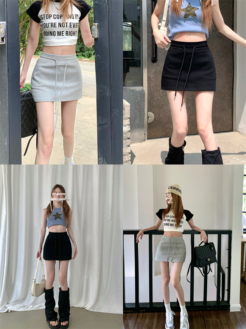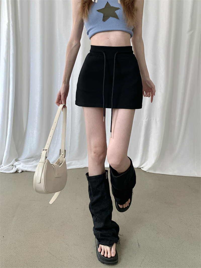 안전 바지를 입은 여성 여름 2024 스커트 새로운 슬림 핏 슬리밍 레이스 업 A 라인 스커트 육류로 덮인 힙합 스커트