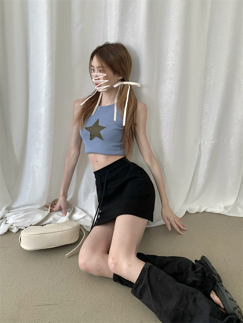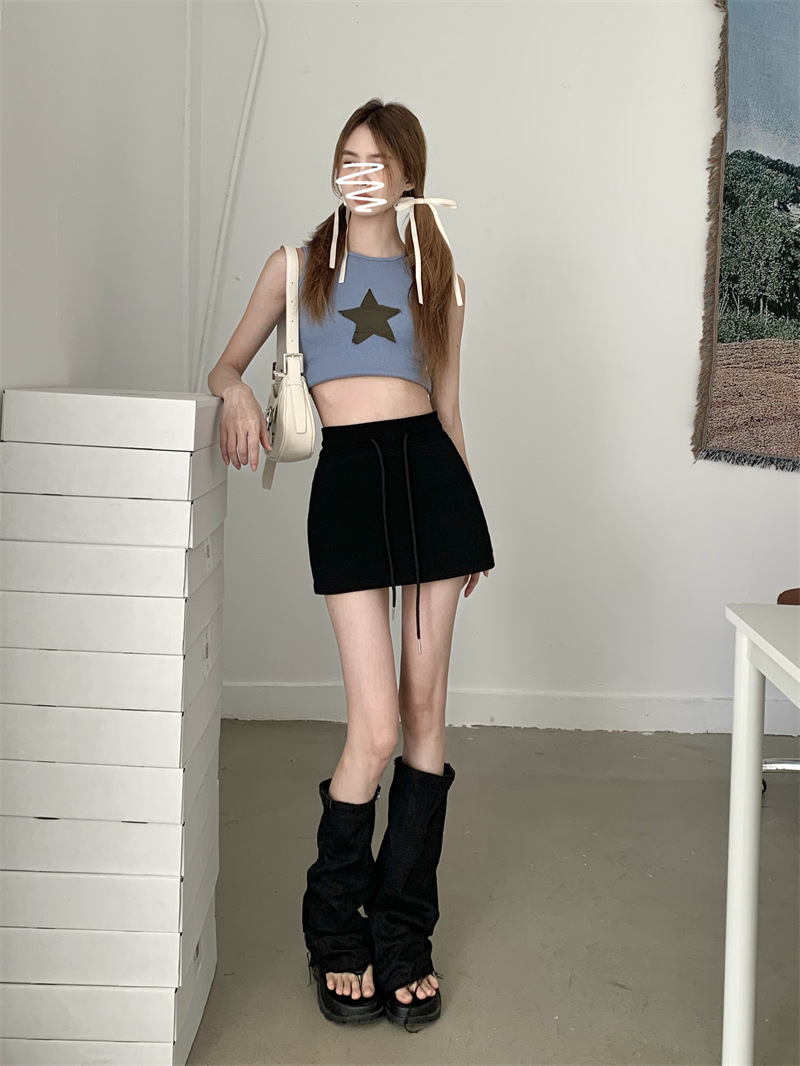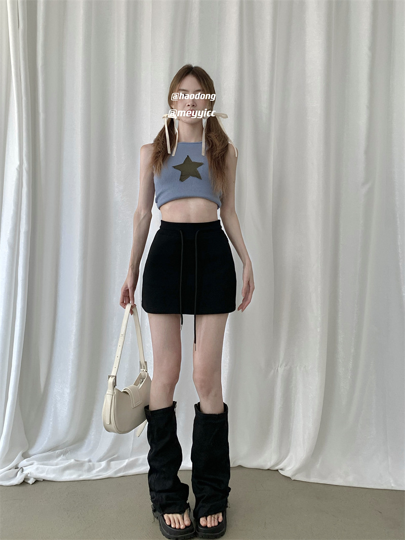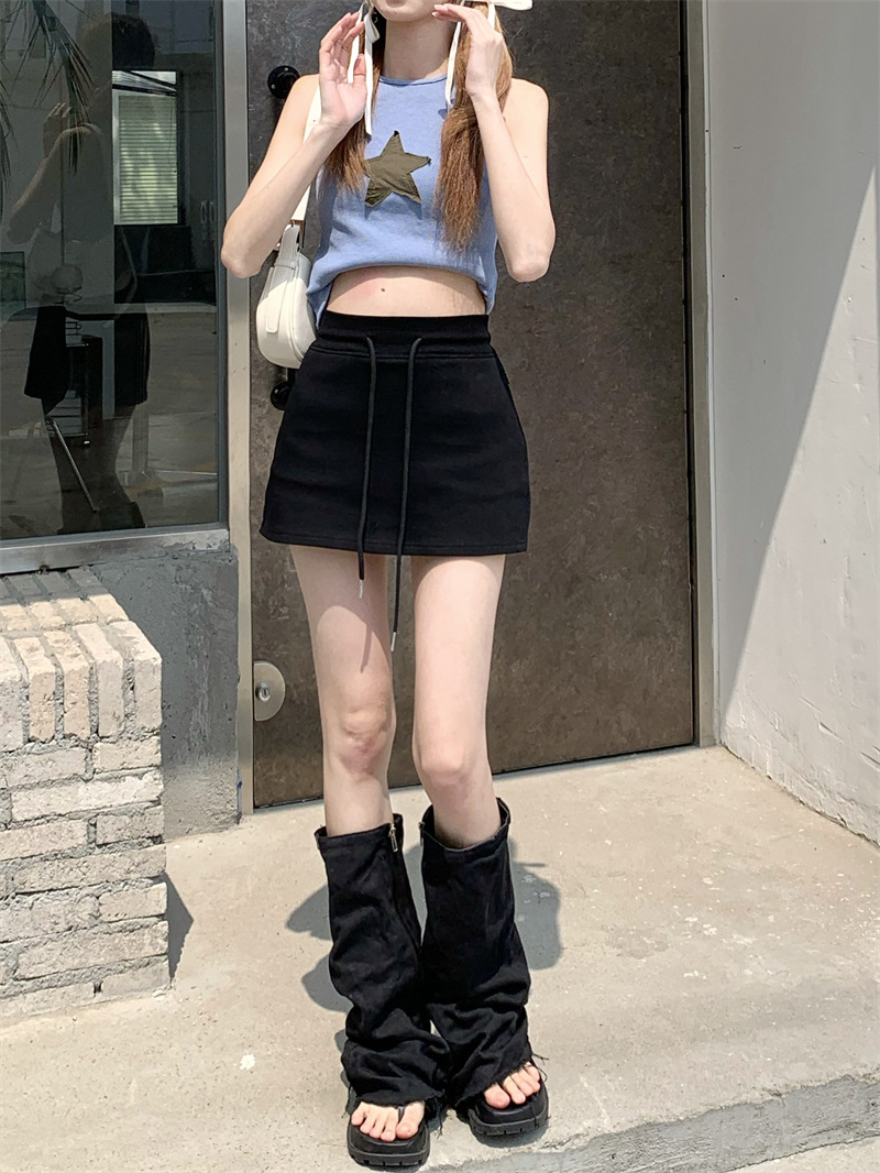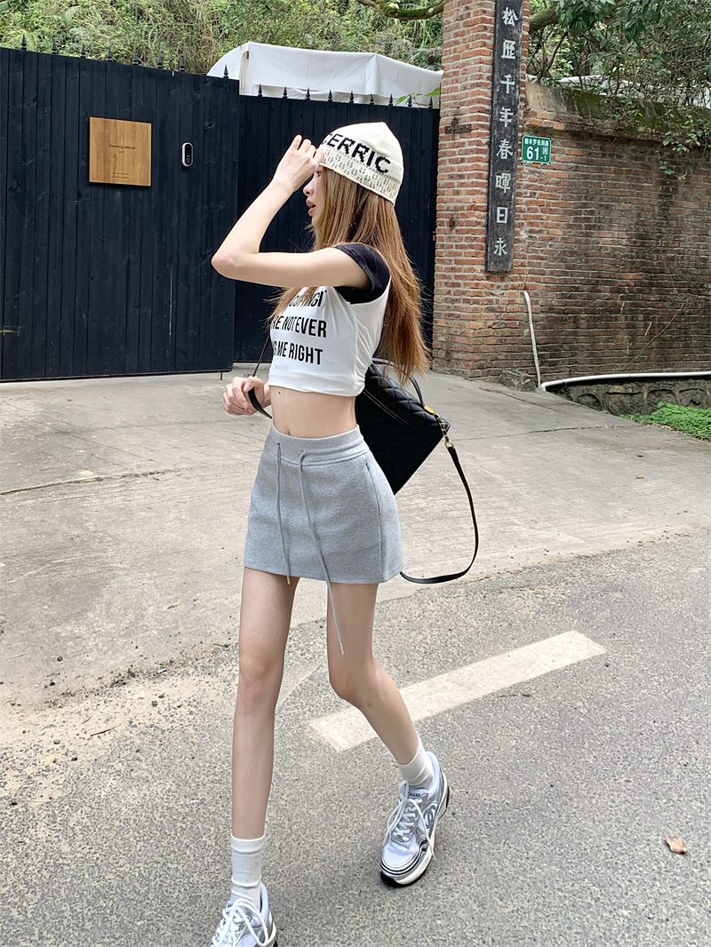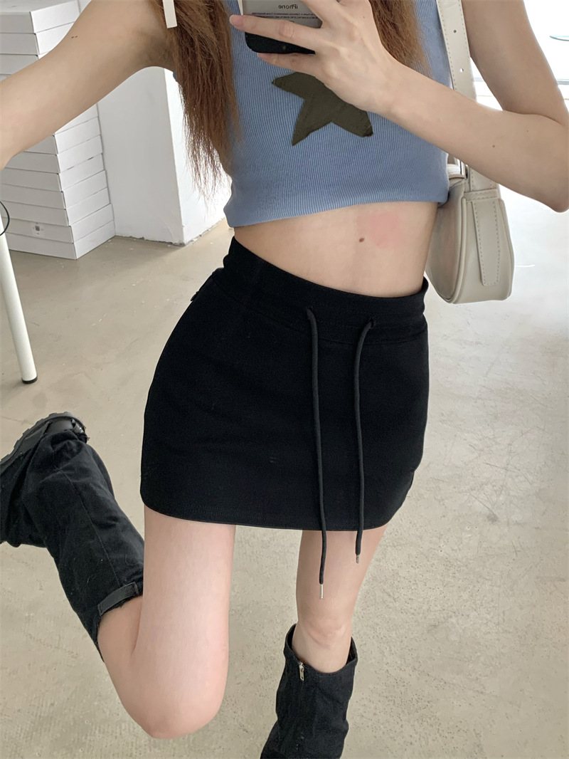 안전 바지를 입은 여성 여름 2024 스커트 새로운 슬림 핏 슬리밍 레이스 업 A 라인 스커트 육류로 덮인 힙합 스커트