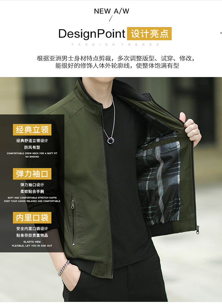 공장 직접면 남성 봄과 가을 얇은 칼라 대비 컬러 재킷 남성 재킷 코트 지퍼 포켓스토어 가기