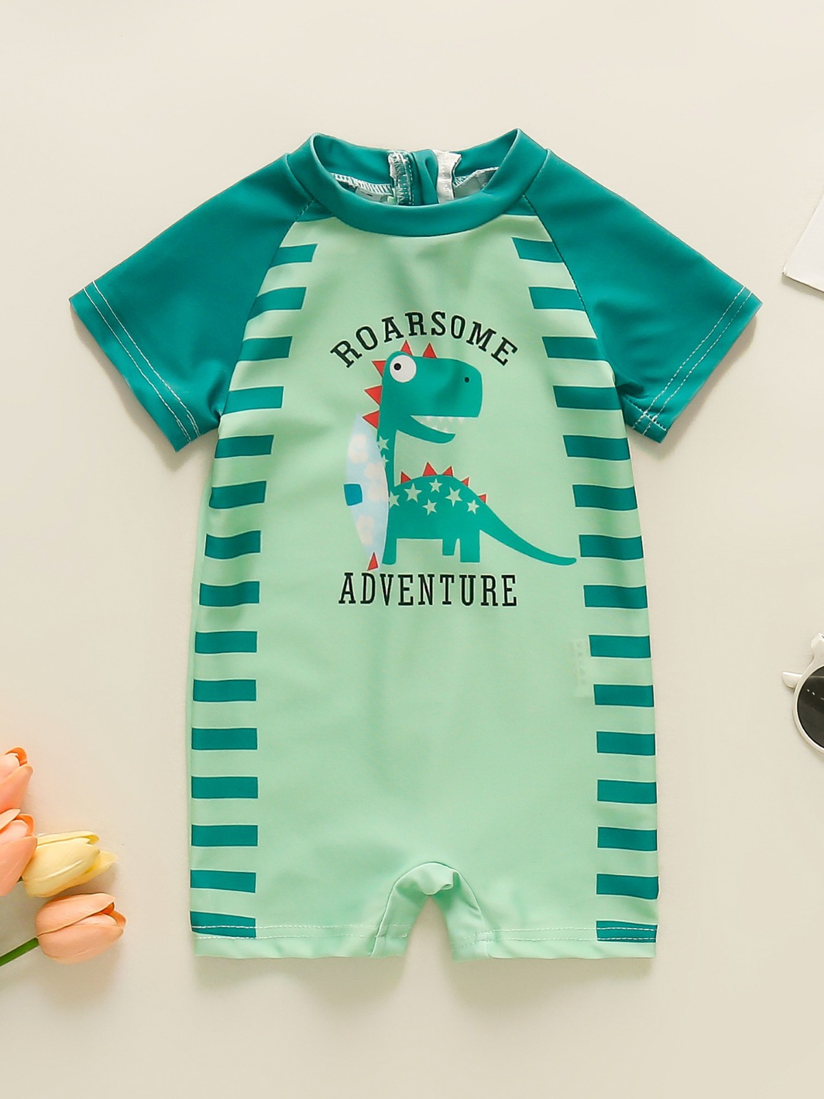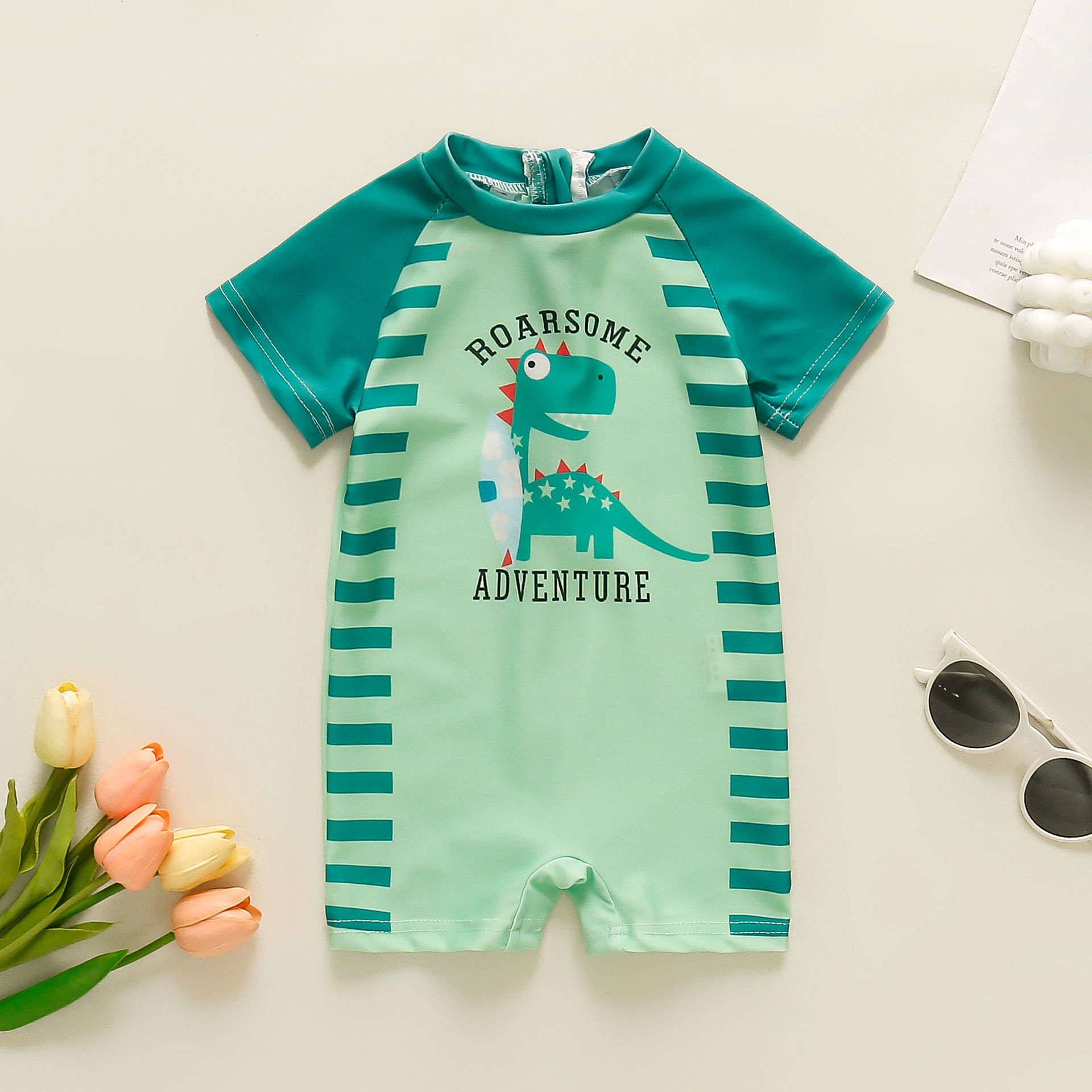 국경 간 어린이 의류 소년 공룡 컬러 블록 원피스 수영복 소년 아기의 하프 오픈 원피스 수영복 어린이 수영복스토어 가기