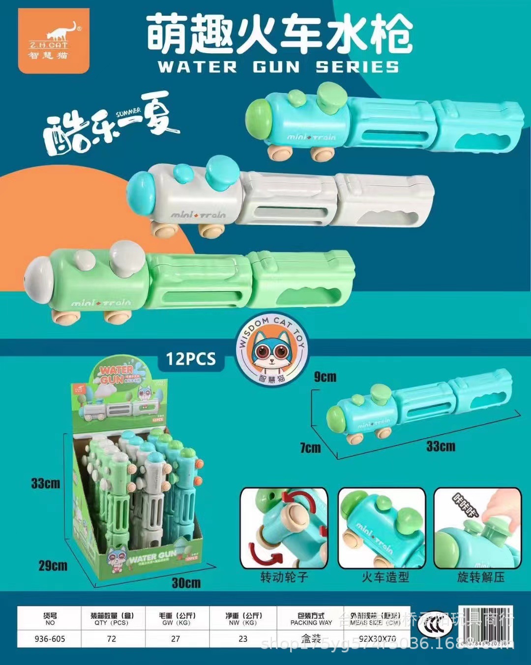 • 만화 작은 기차 물 대포 총 (2 무작위 머리