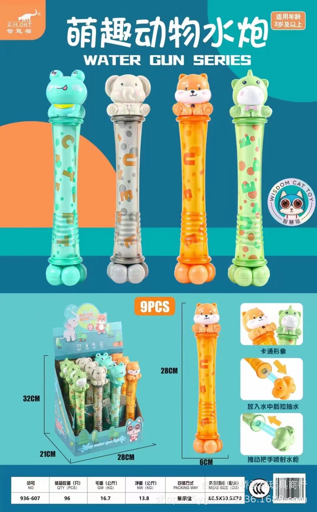 스마트 고양이 만화 강아지 코끼리 물 대포 풀 아웃 흡입 물 스프레이 총 스틱 물 놀이 물 싸움 어린이 장난감스토어 가기