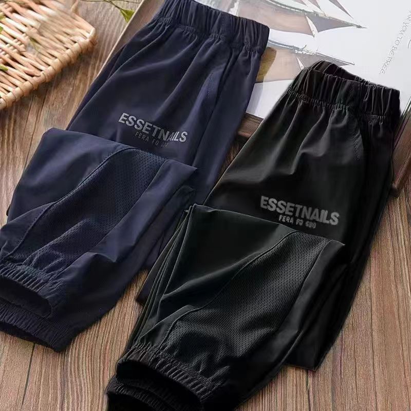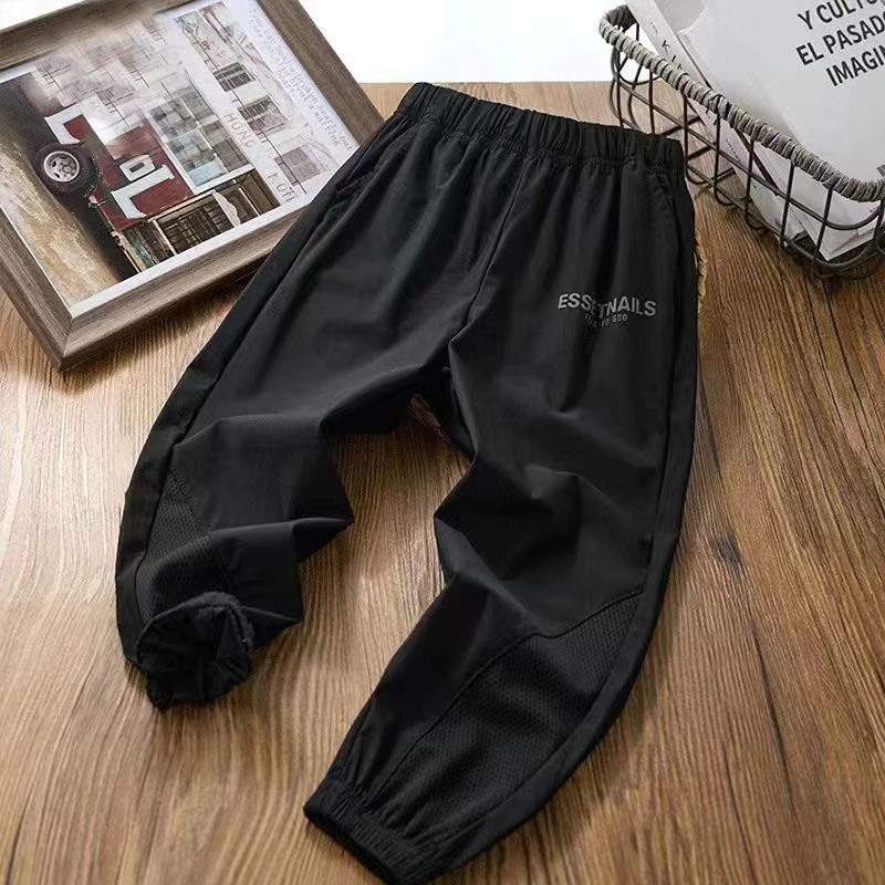 소년 여름 바지 빠른 건조 바지 얇은 아이스 실크 바지 중간 및 대형 어린이 바지 모기 방지 바지 여름 통기성 메쉬 바지 바지
