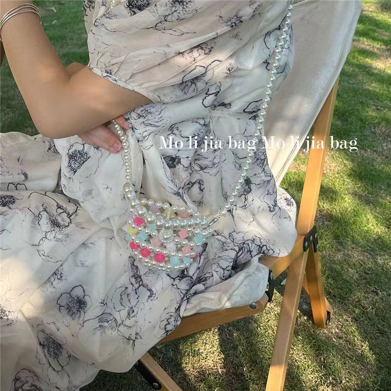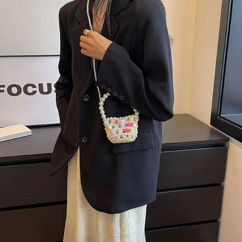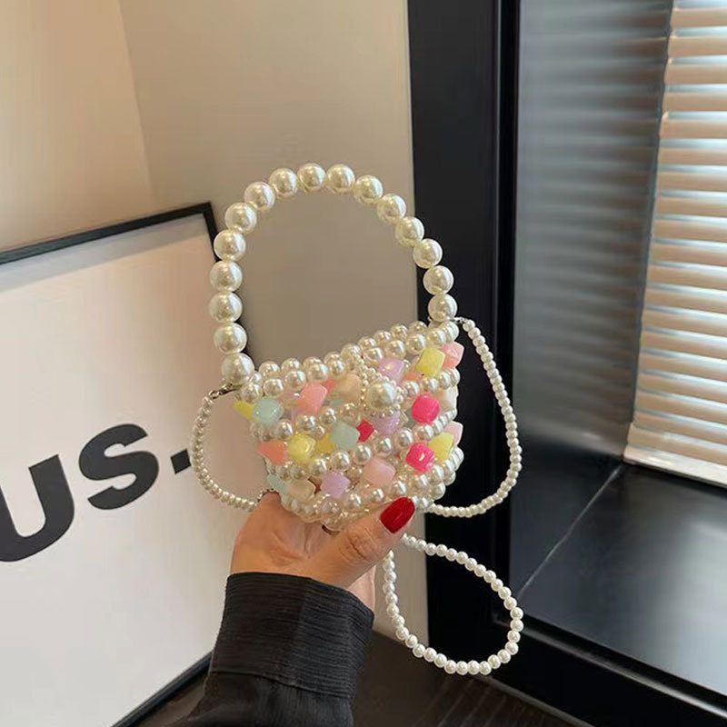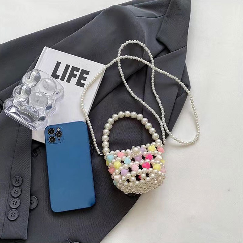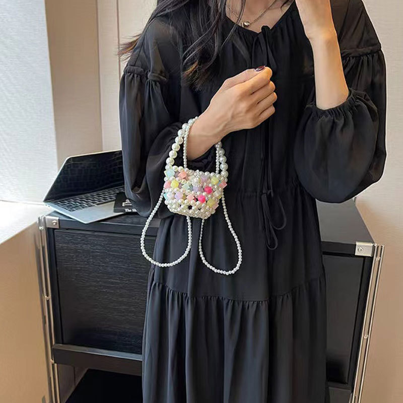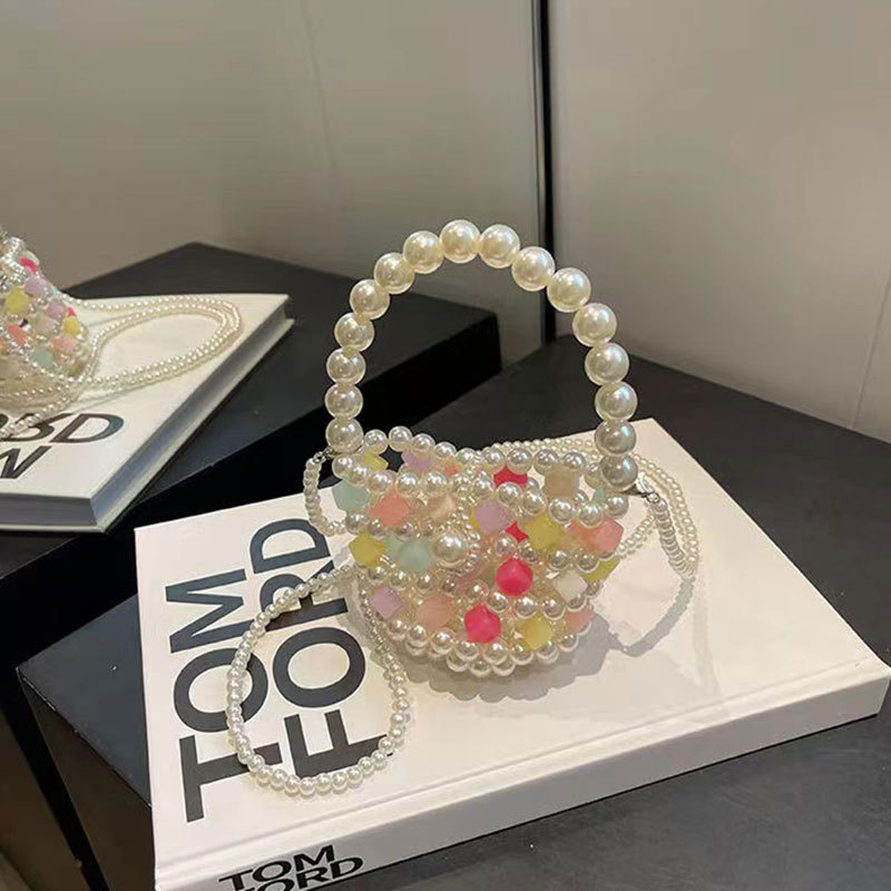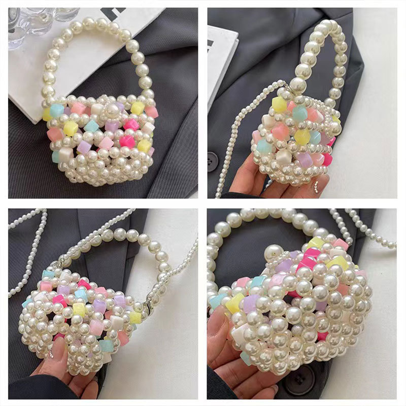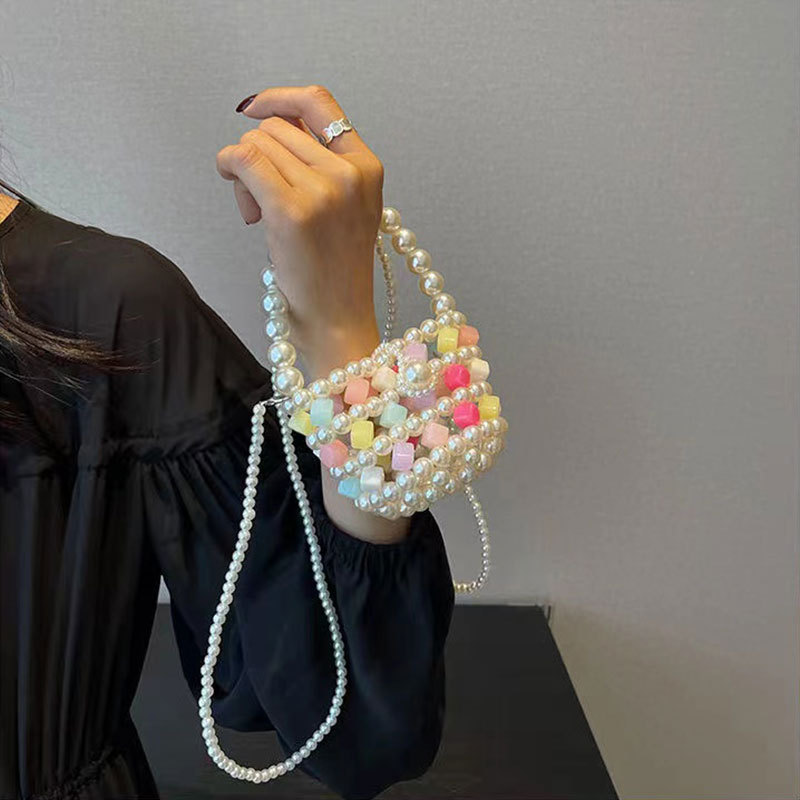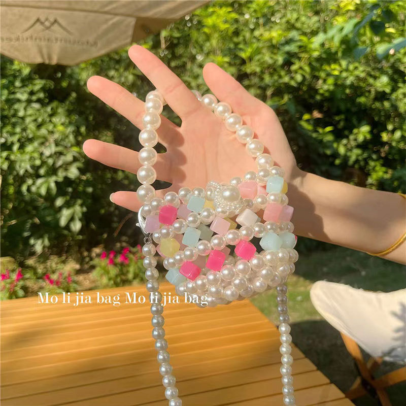 Xia Xin 미니 펄 백 캔디 컬러 수제 DIY 소재 가방 짠 야채 바구니 휴대용 크로스 바디 여성