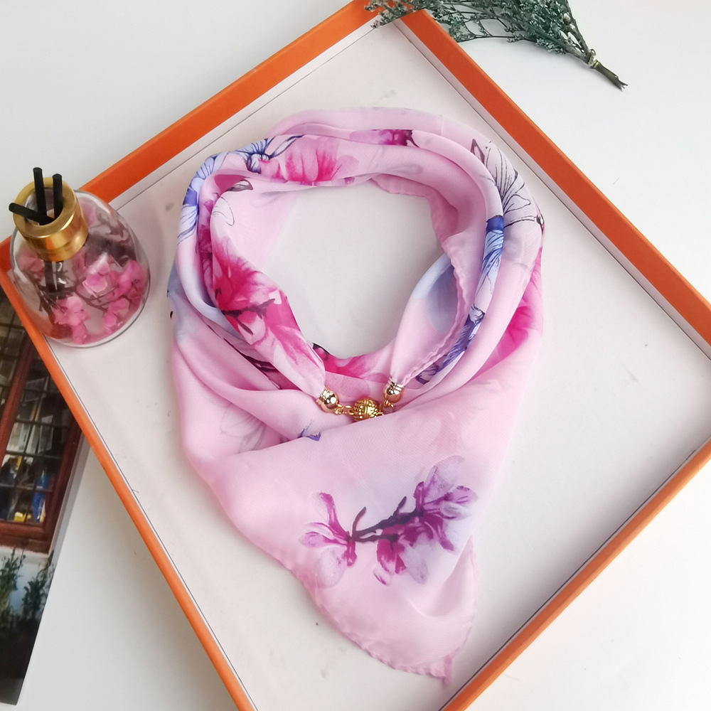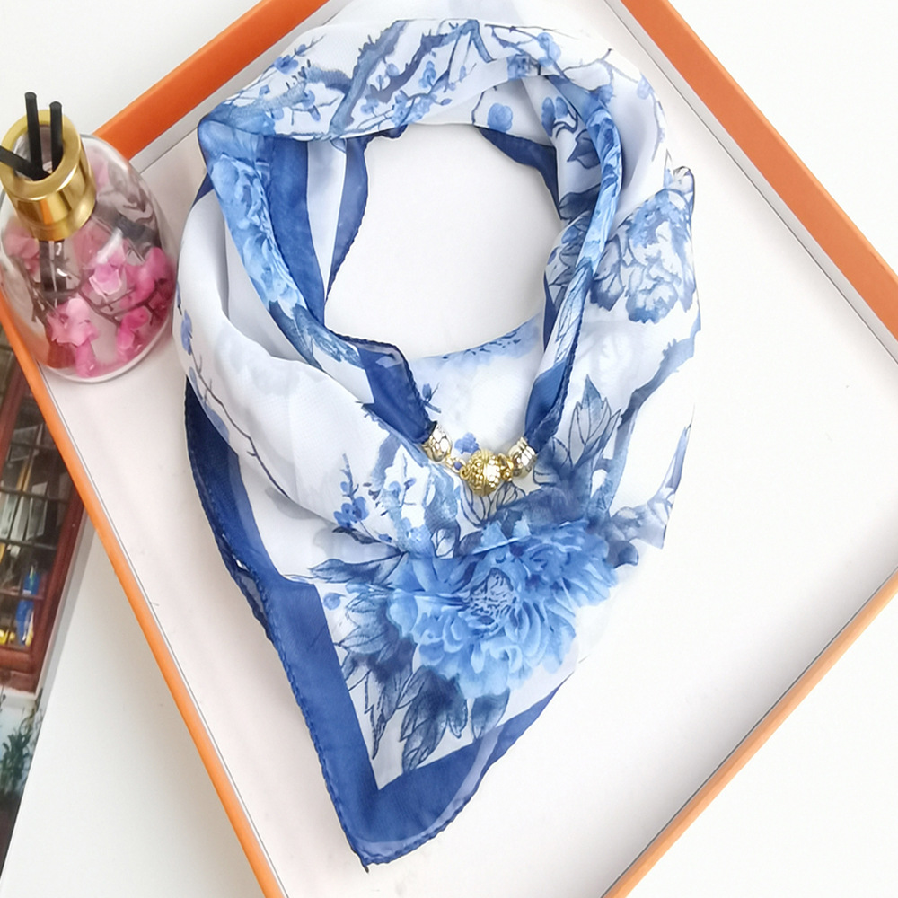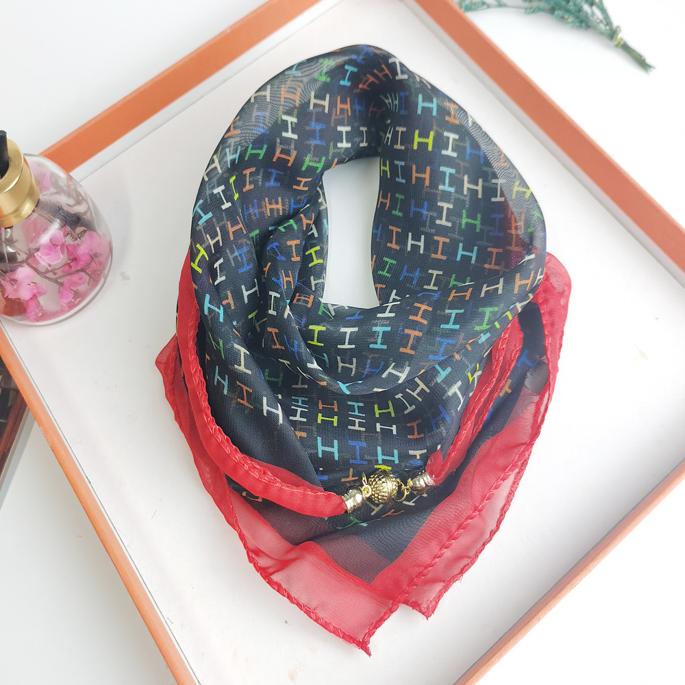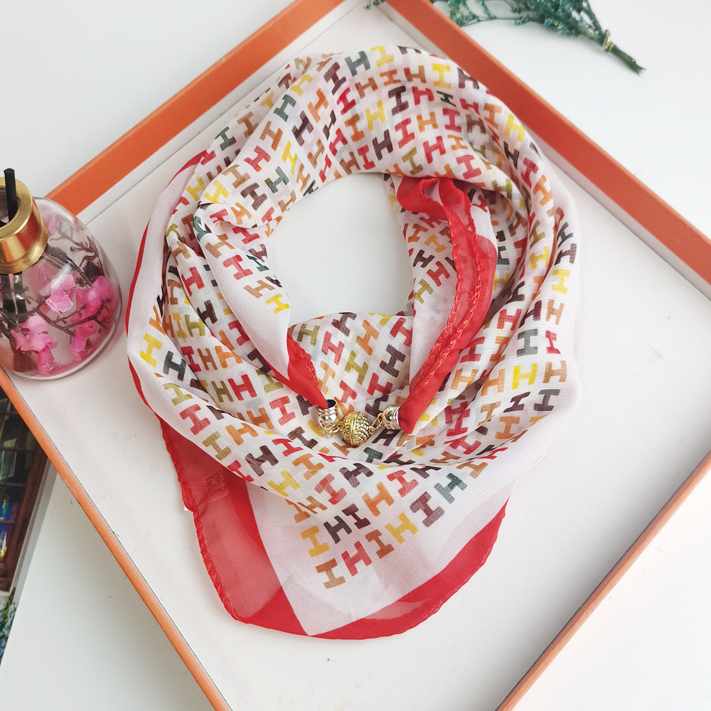 자석 버클 삼각 스카프, 목 보호대, 작은 골드 볼, 쉬폰 실크 스카프, 여성용 여름 자외선 차단 얇은 거즈 스카프, 넥 스카프, 사각 스카프, 타이다이스토어 가기