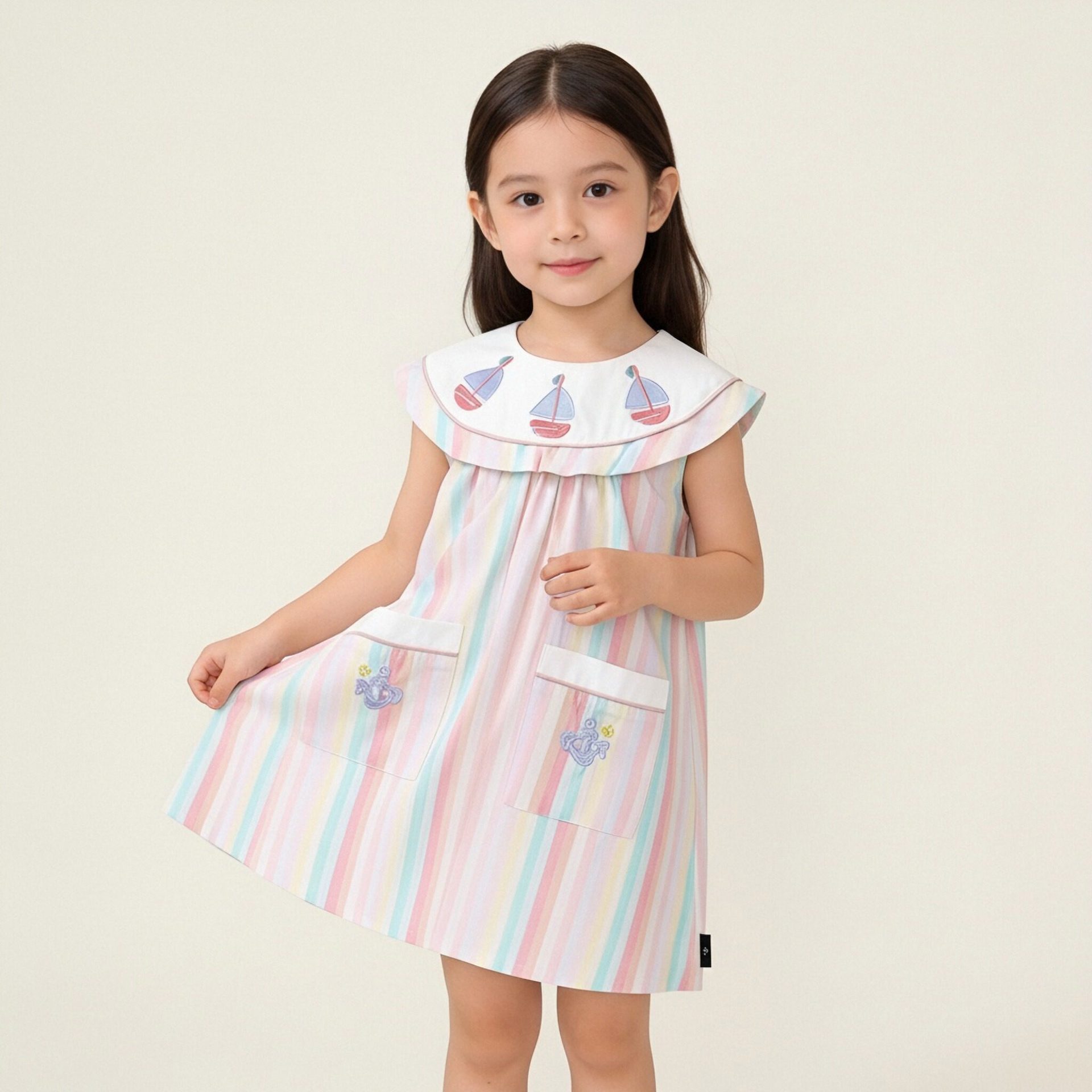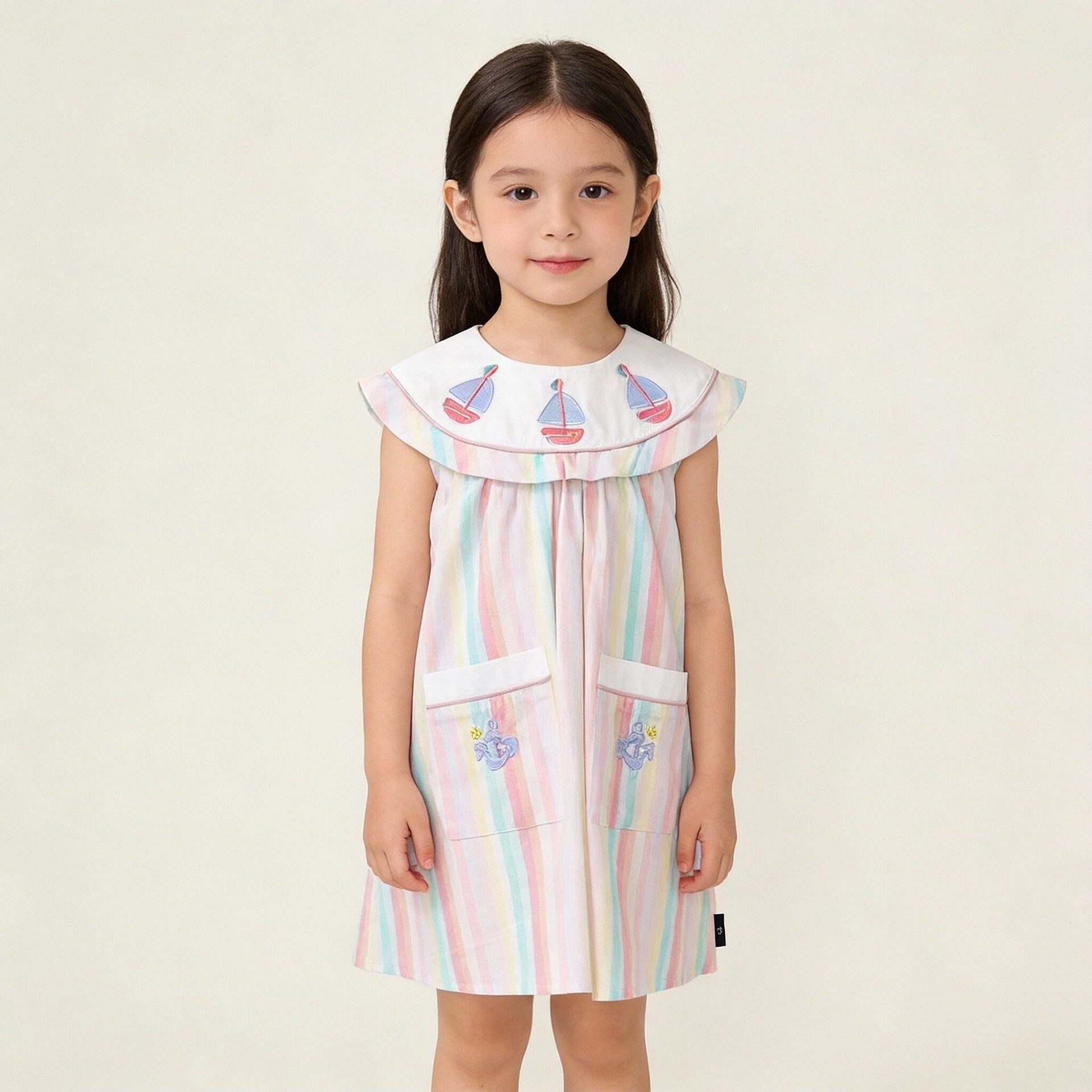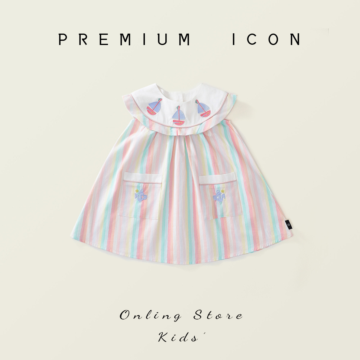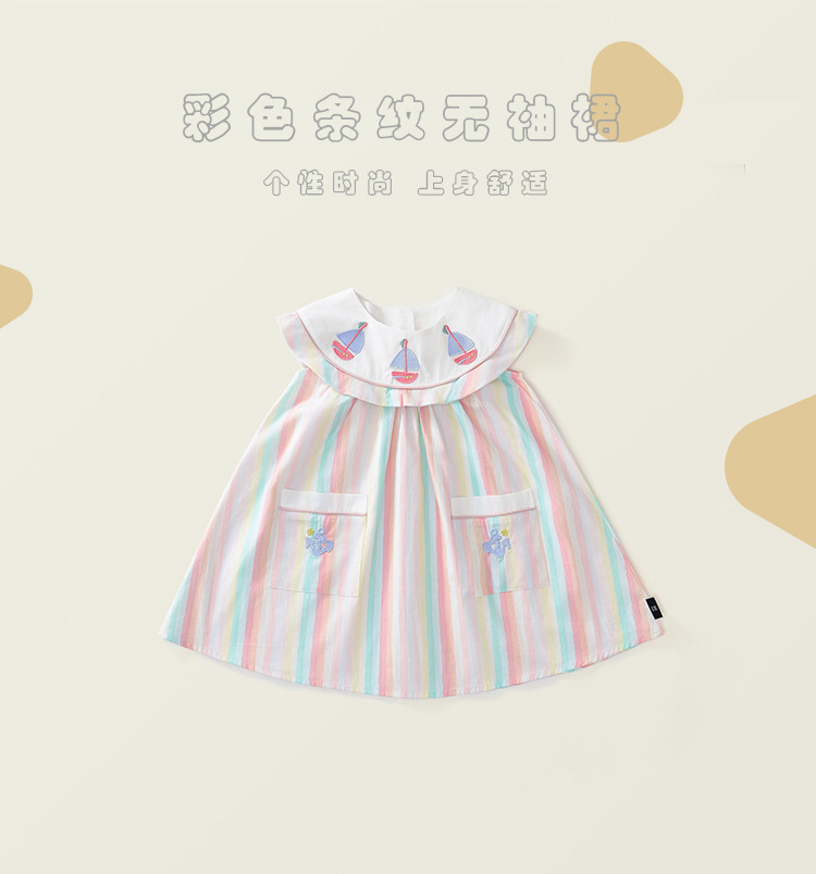 Jella 아동 의류 소녀 수 놓은 드레스 2025 여름 새로운 어린이 한국어 버전 컬러 스트라이프 민소매 조끼 드레스스토어 가기