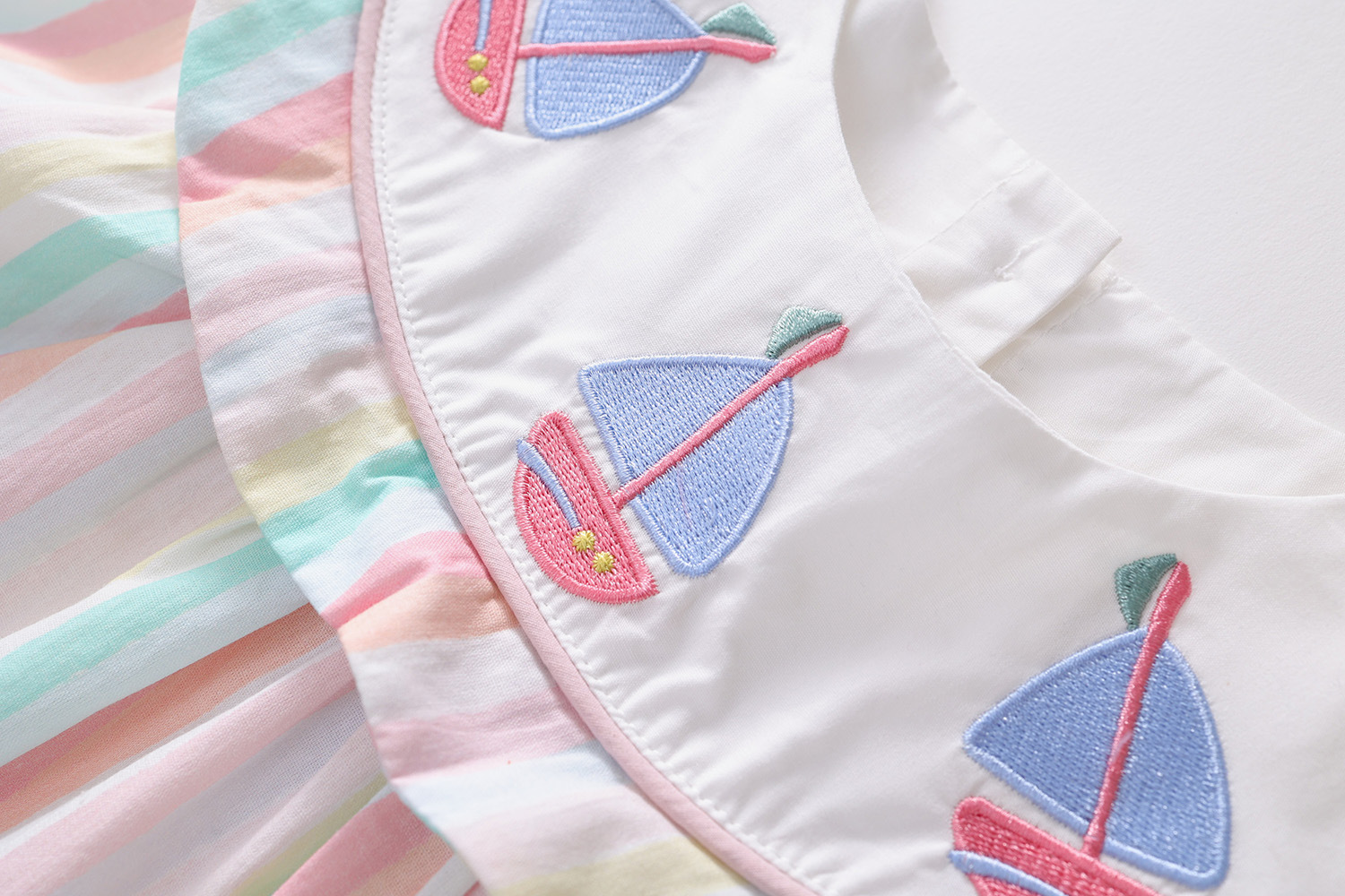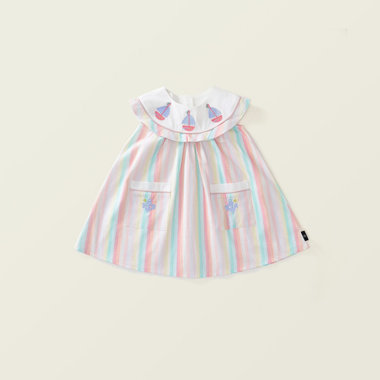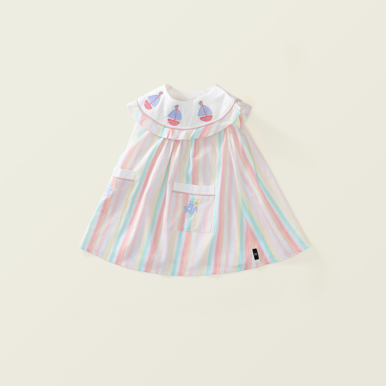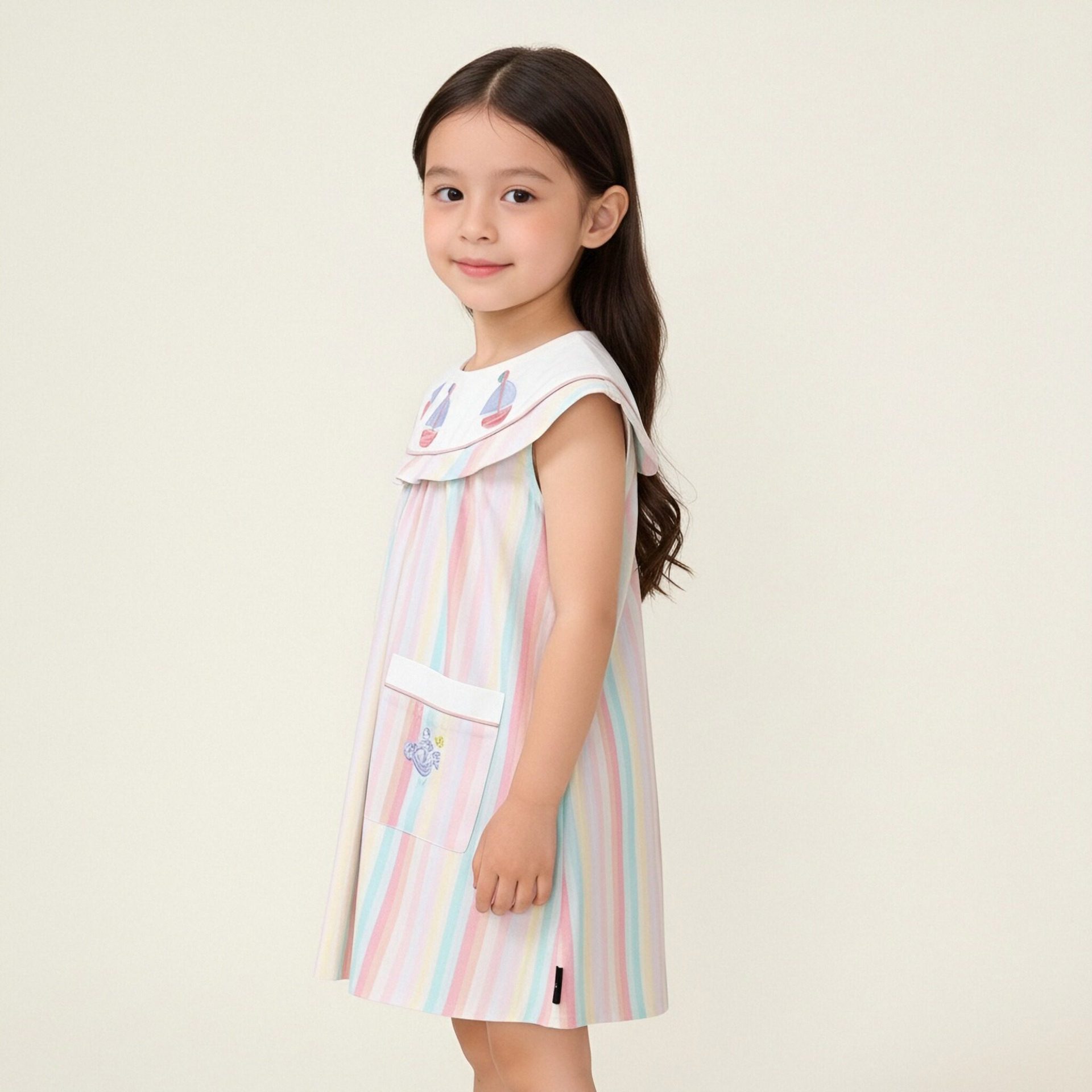 Jella 아동 의류 소녀 수 놓은 드레스 2025 여름 새로운 어린이 한국어 버전 컬러 스트라이프 민소매 조끼 드레스스토어 가기