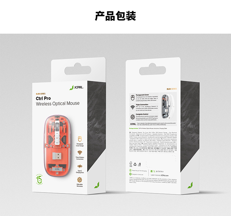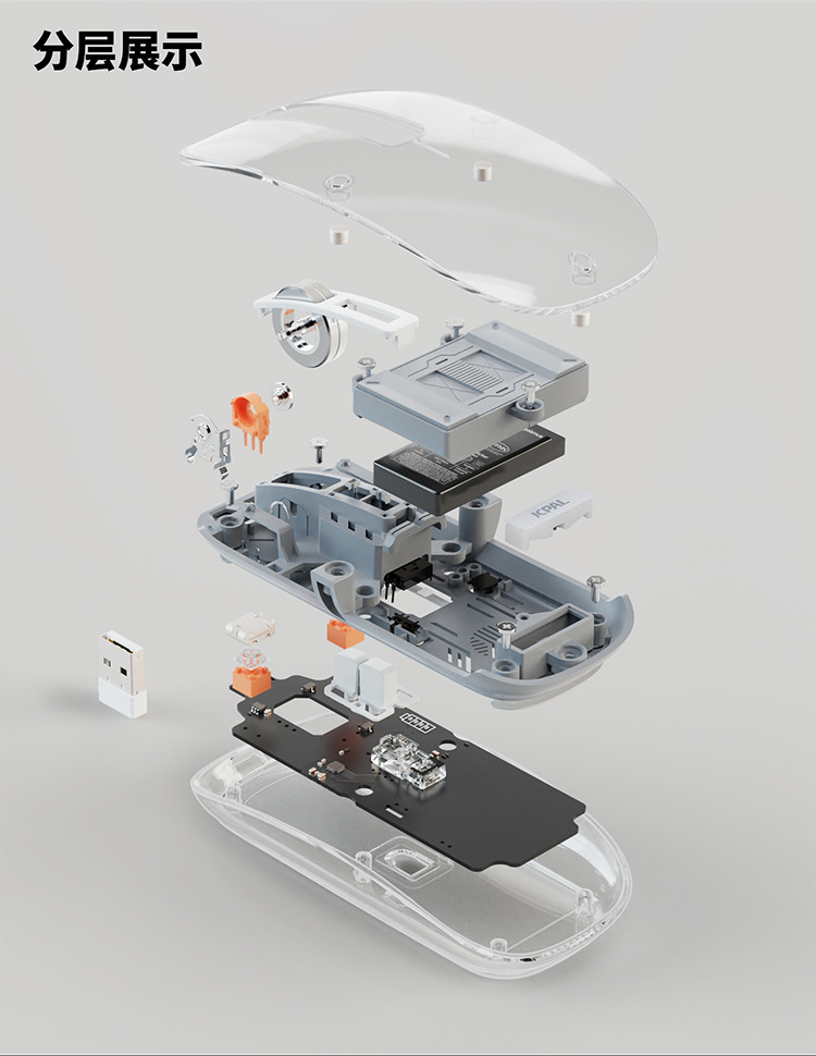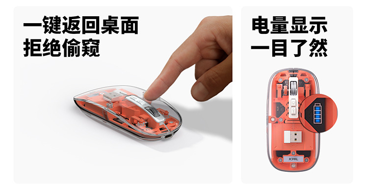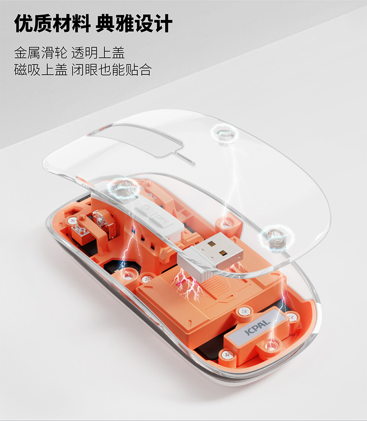 Jcpal 아크릴 투명 마우스 IOS/안드로이드/승리 시스템 연결 사무실 학습 컴퓨터 필요스토어 가기
