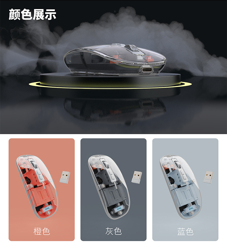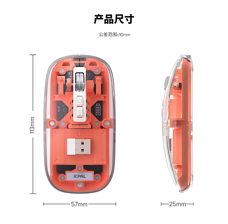 Jcpal 아크릴 투명 마우스 IOS/안드로이드/승리 시스템 연결 사무실 학습 컴퓨터 필요