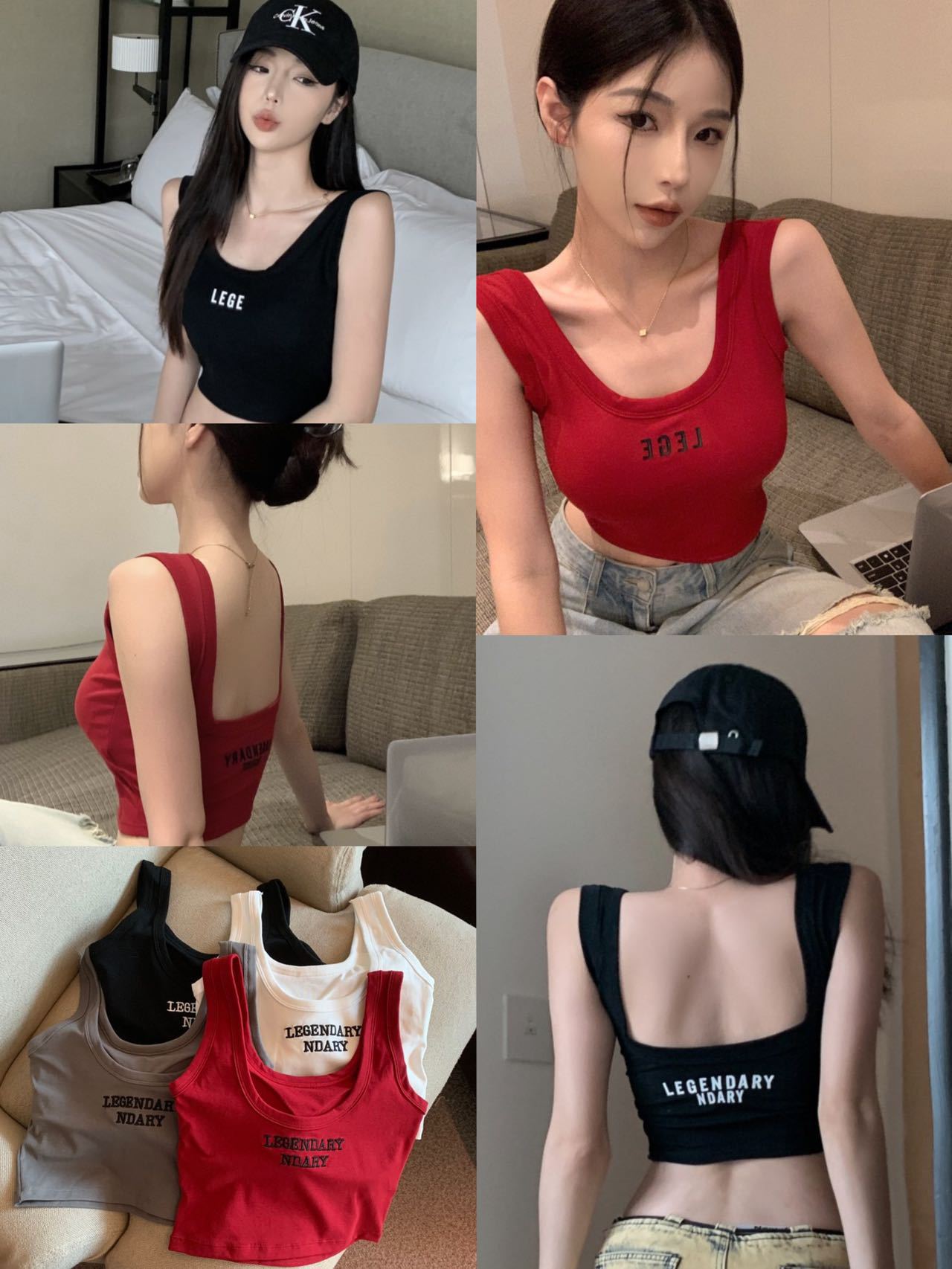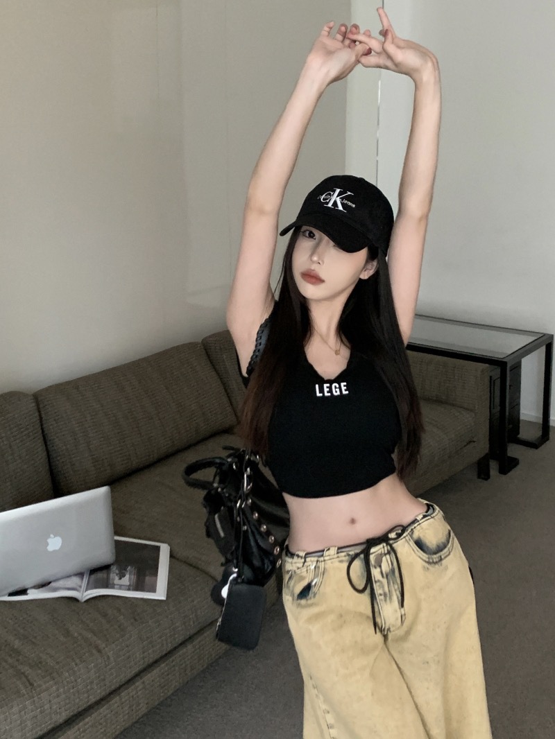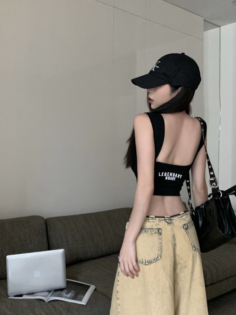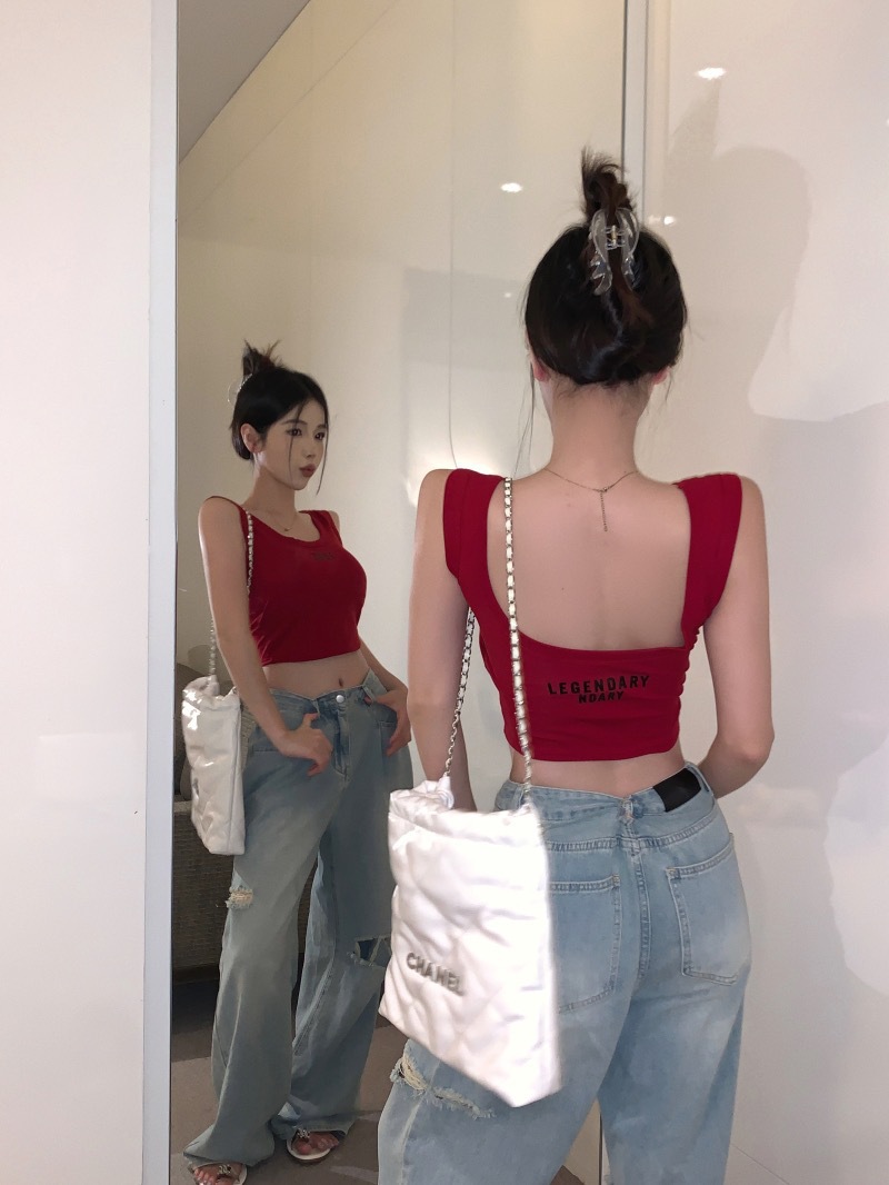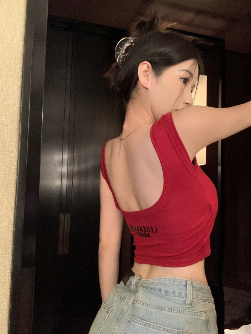 뜨거운 소녀 U 넥타이 가슴 패드 아름다운 뒷편지 자수 조끼 여성 내부 입고 슬림 핏 슬리밍 탑베이스 백리스