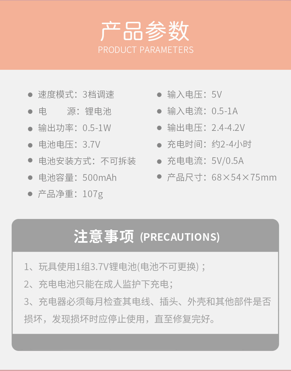 电池容量:500毫安/锂电池