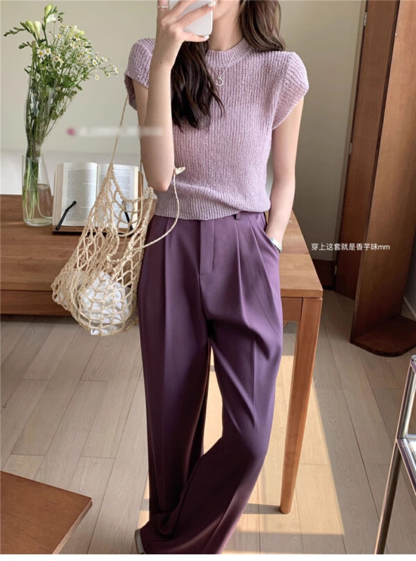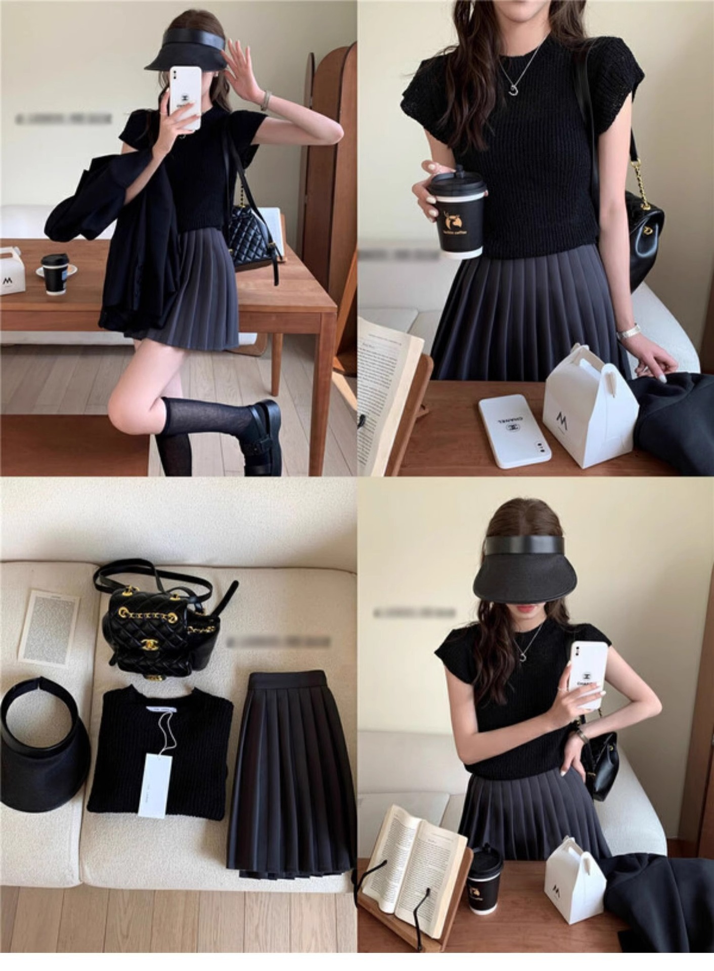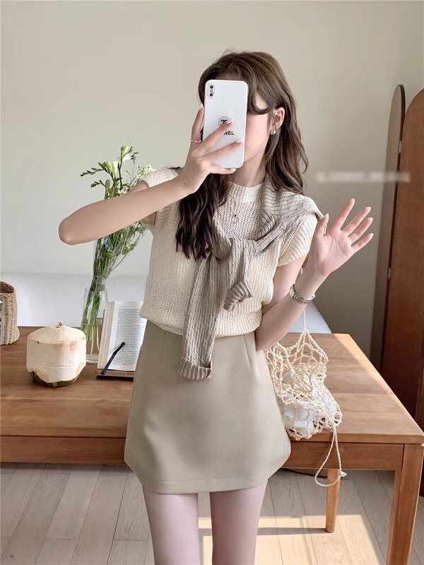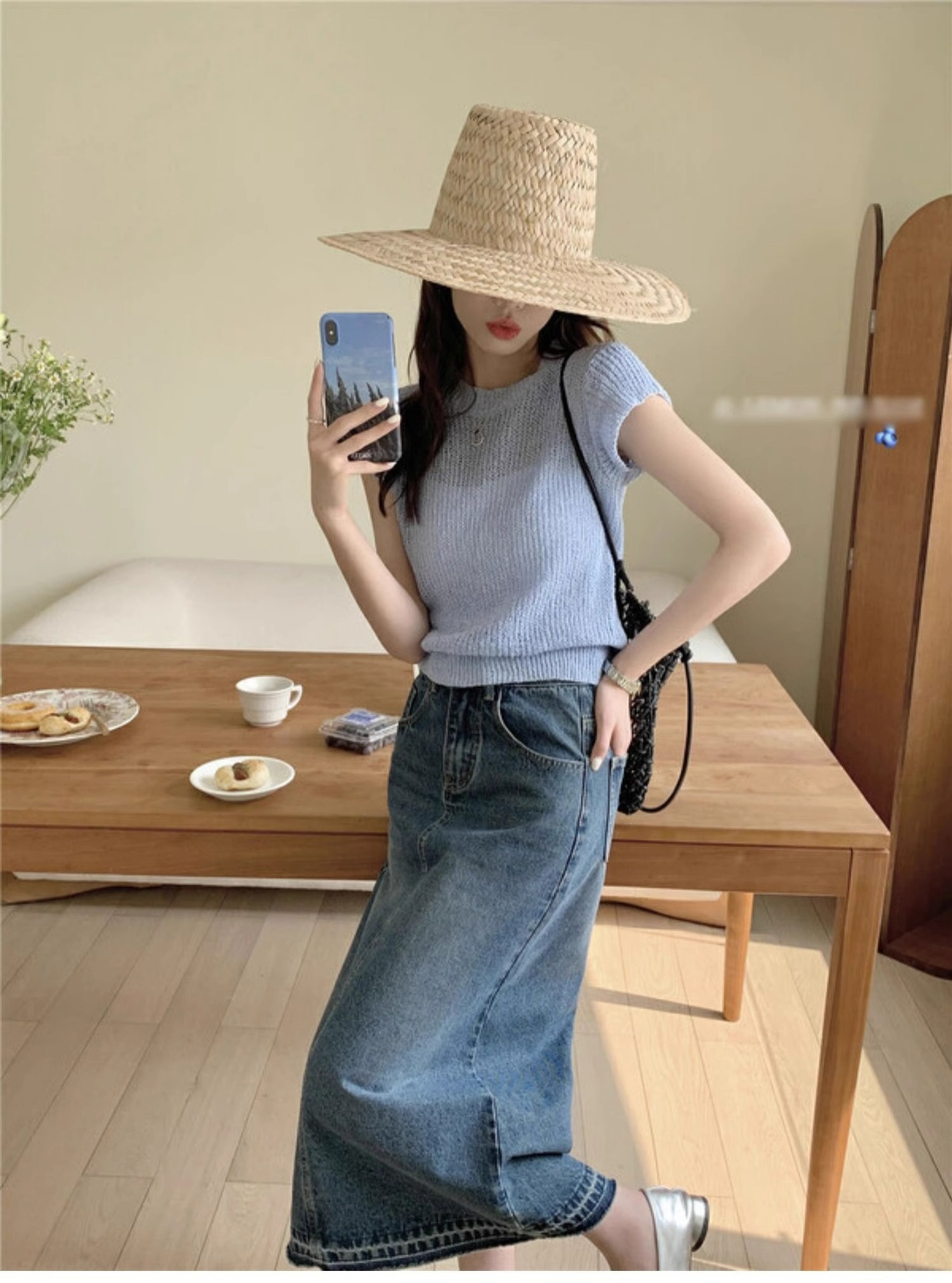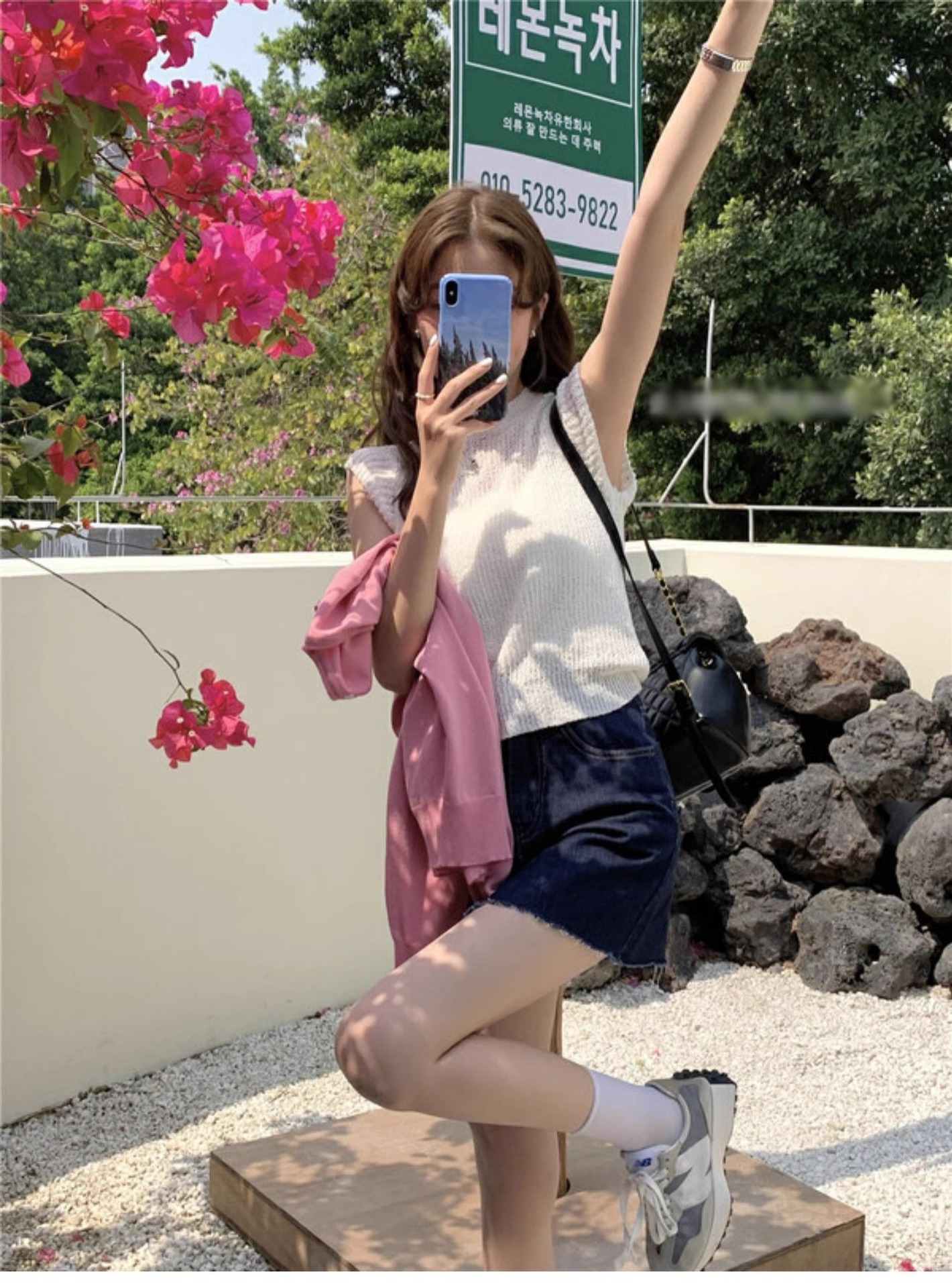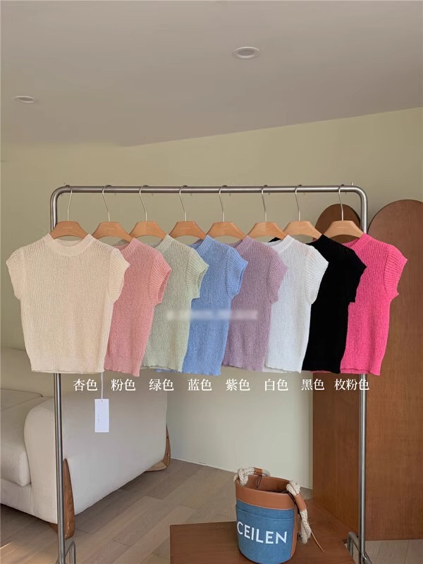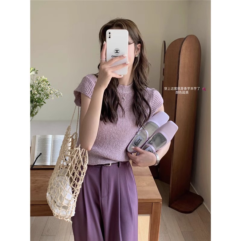 그린 아이스 실크 니트 반팔 어깨 티셔츠 여성용 봄과 여름 부드러운 간단한 캐주얼 슬림 핏 프렌치 쇼트 탑스토어 가기