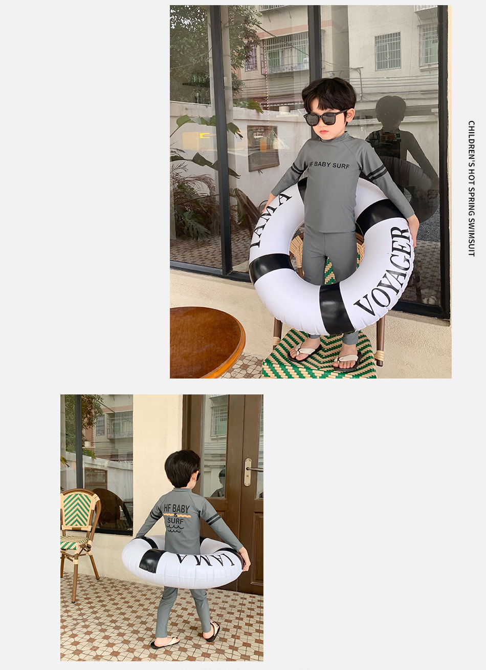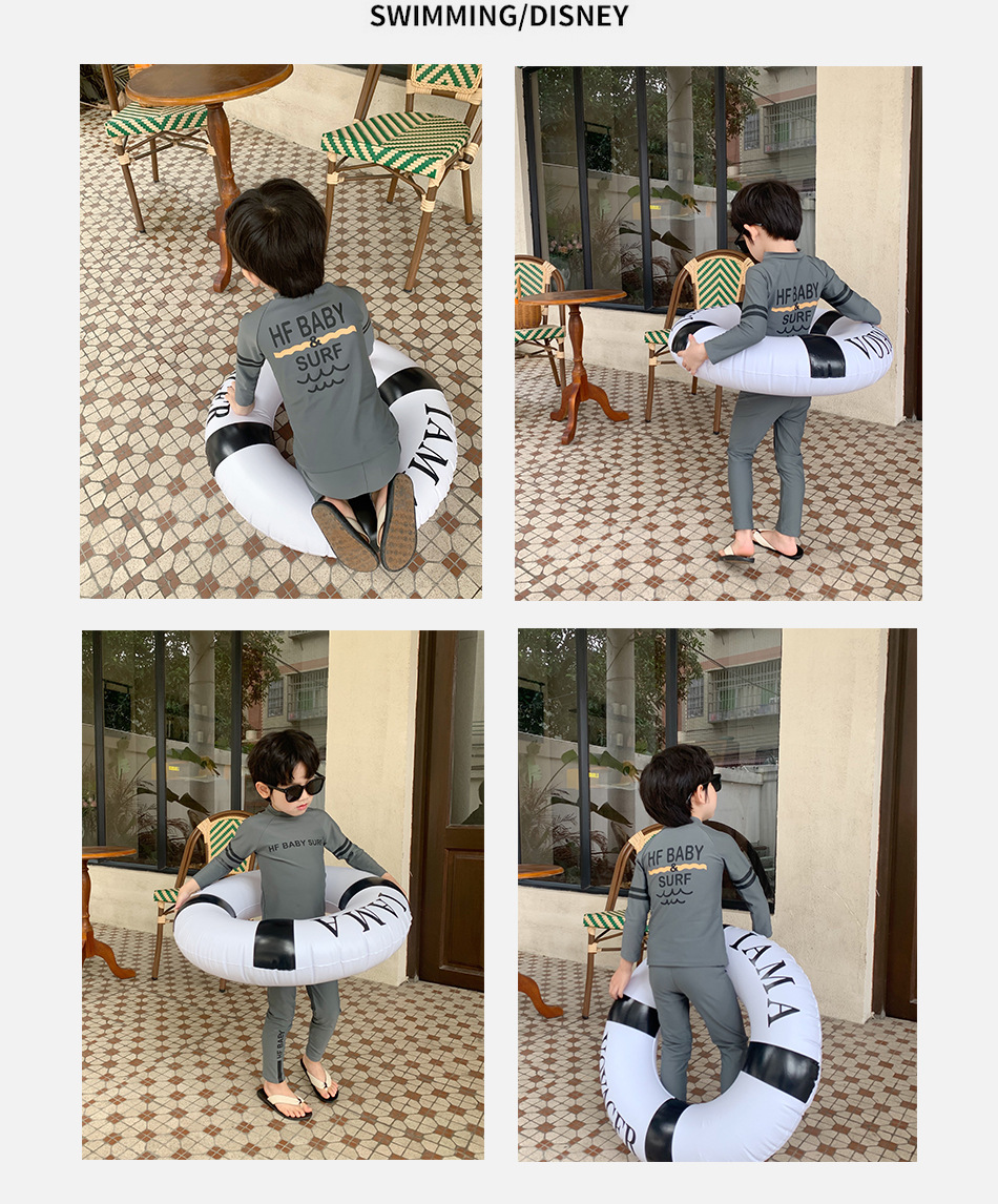중소형 어린이 · 소년용 신형 어린이 수영복 한국식 패셔너블 그레이 레터 다이빙 세트 긴팔 선스크린 급건조 모래스토어 가기