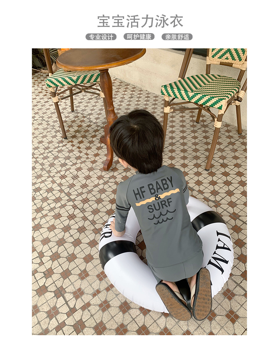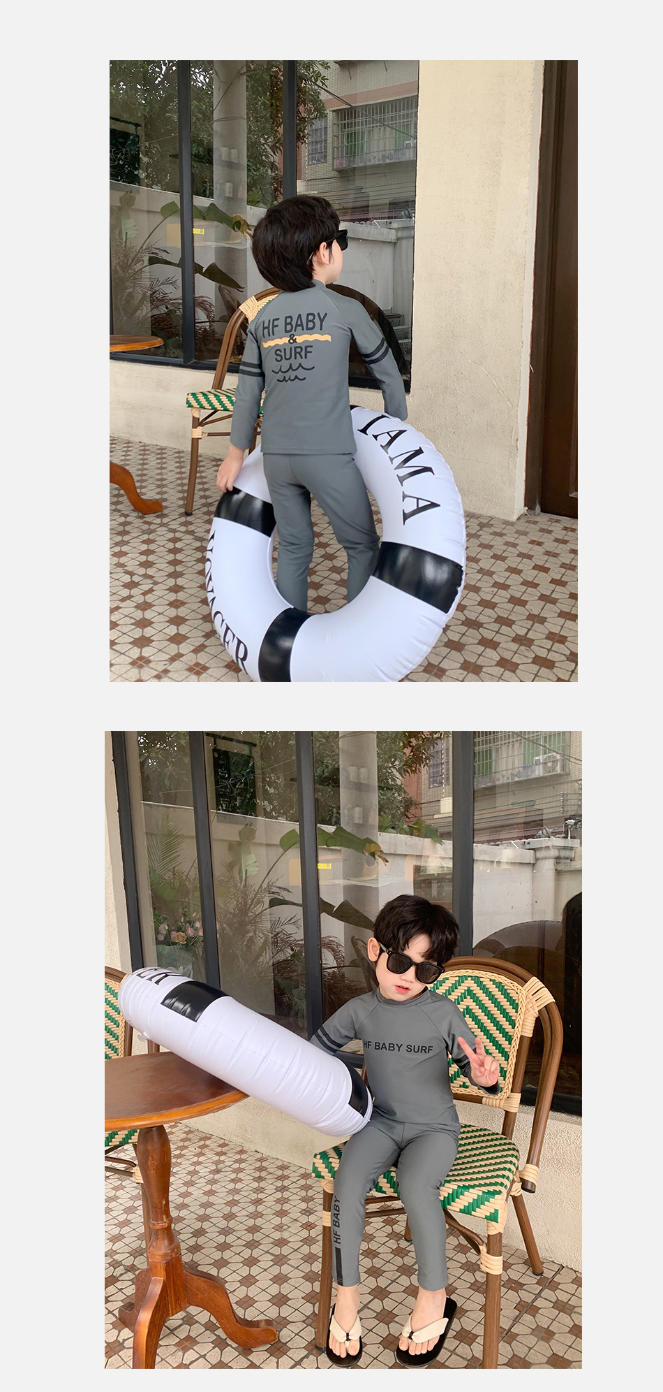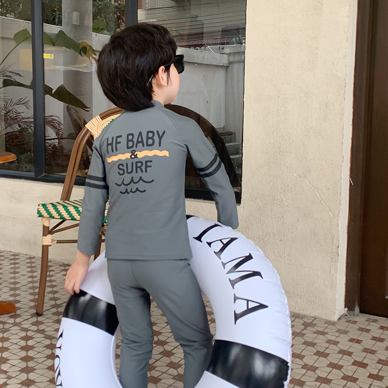 중소형 어린이 · 소년용 신형 어린이 수영복 한국식 패셔너블 그레이 레터 다이빙 세트 긴팔 선스크린 급건조 모래