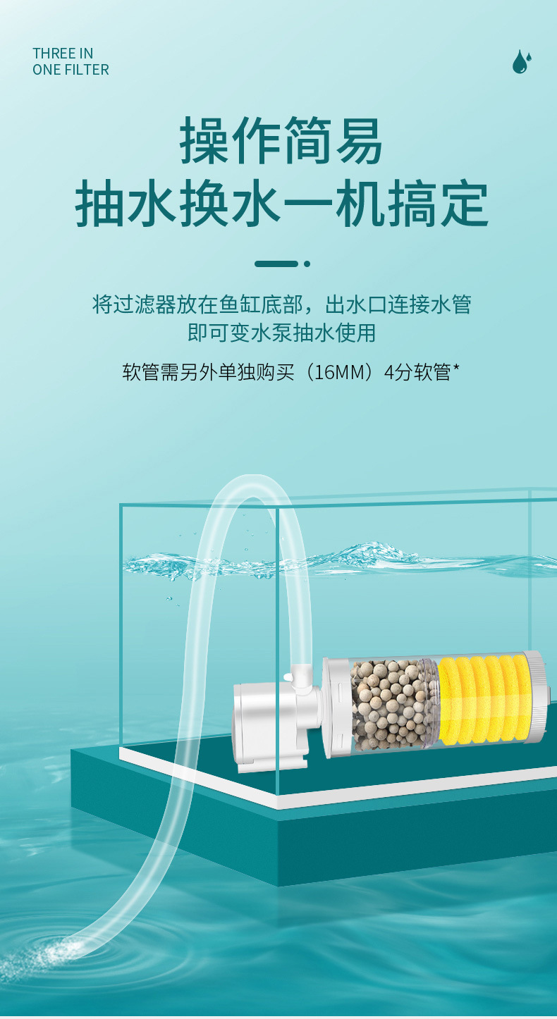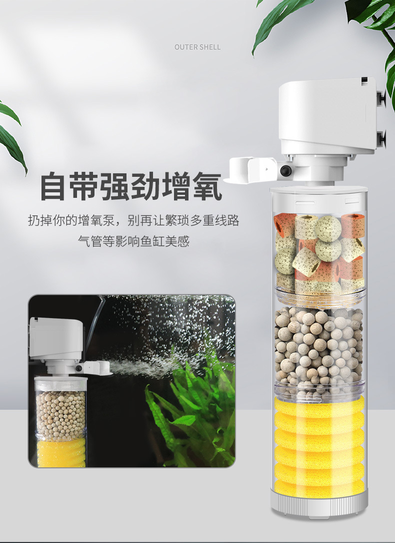 송바오 어항 필터 3-in-1 내장형 수중 펌프 필터 장비 수족관 필터 산소 펌프