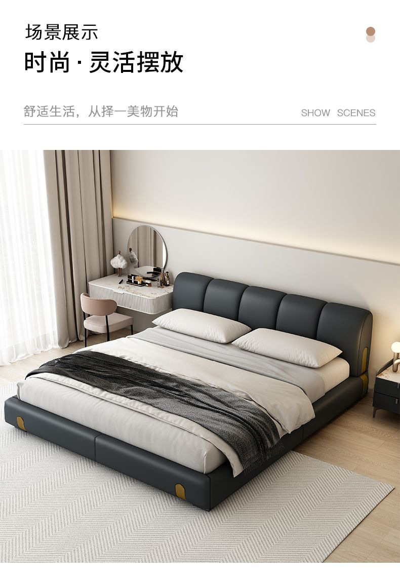 이탈리아 미니멀리스트 가죽 침대 모래 언덕 침대 마스터 침실 퀸 침대 1.5m 1.8 m 고급 웨딩 침대 현대 미니멀리스트 더블 침대스토어 가기