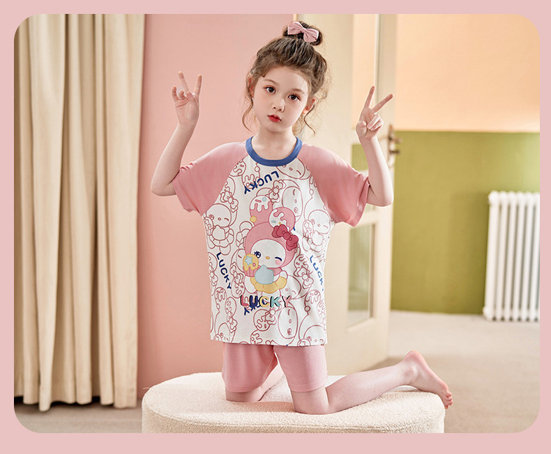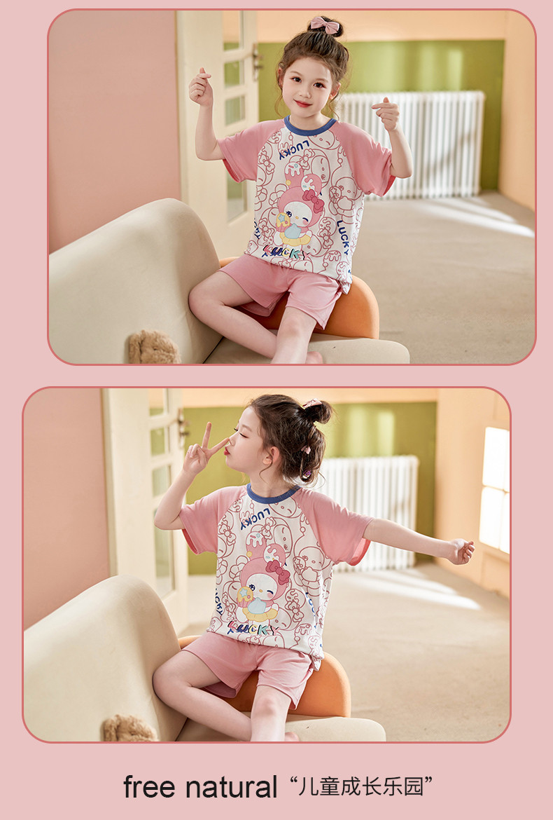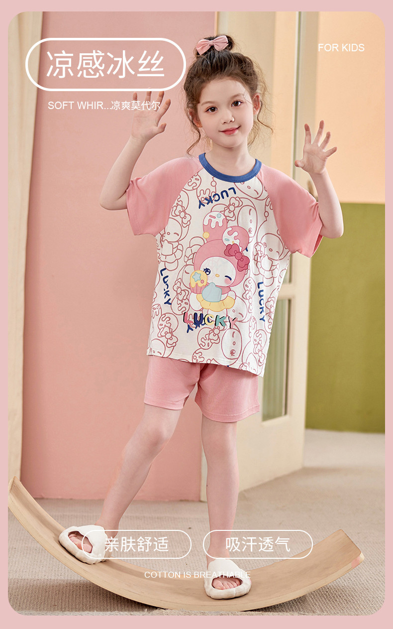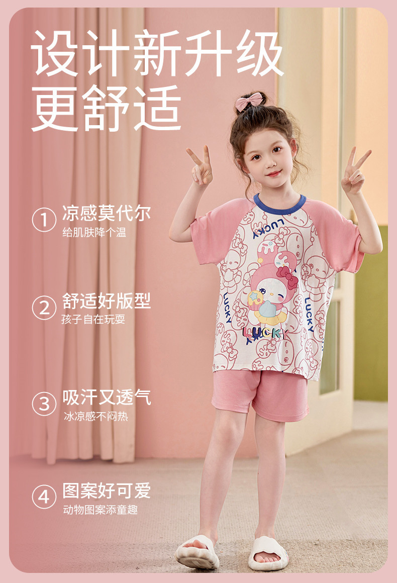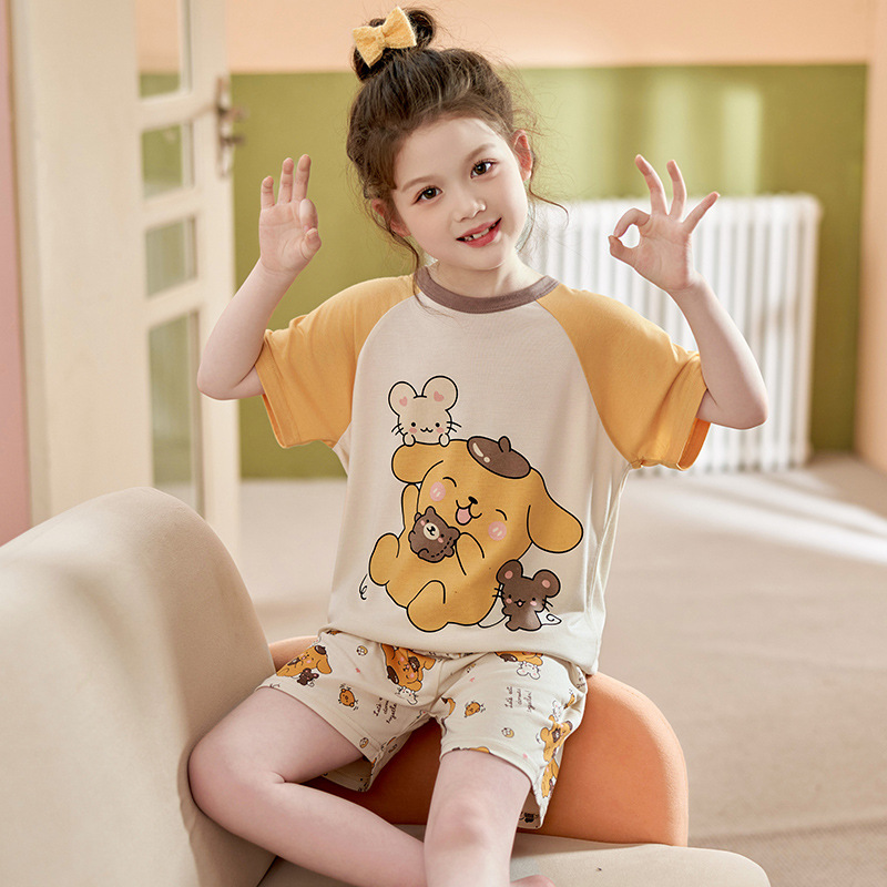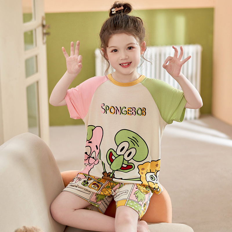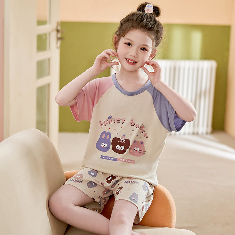 모달 소녀 잠옷 여름 어린이 반팔 반바지 세트 귀여운 소녀 중 큰 어린이 멋진 홈 옷 여름스토어 가기