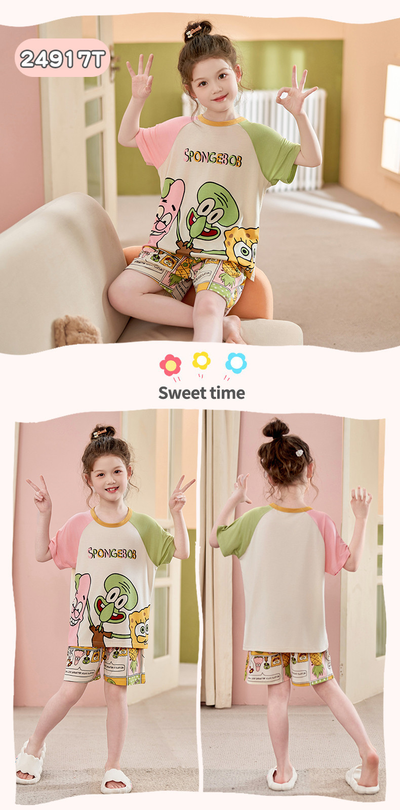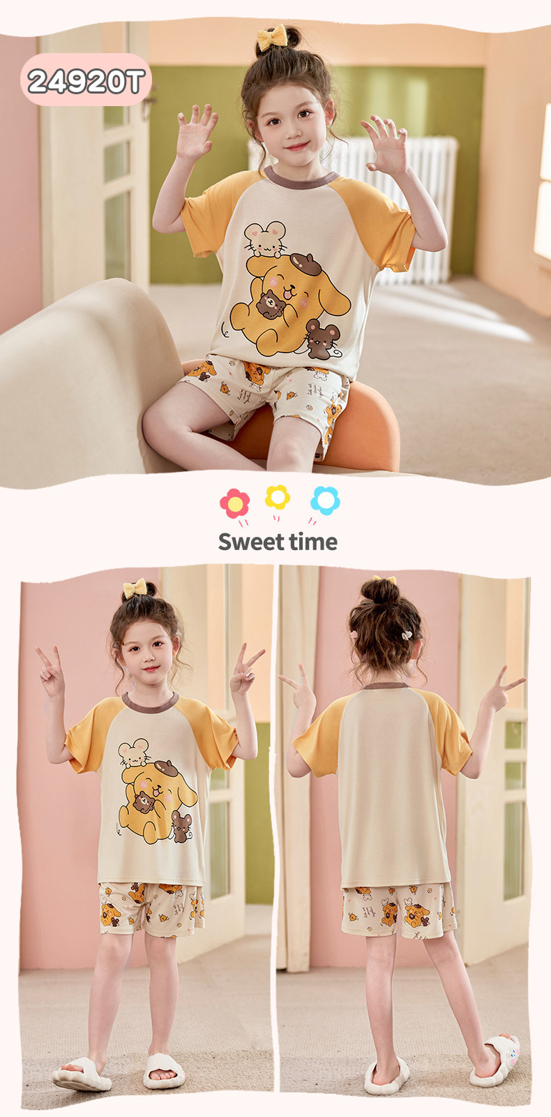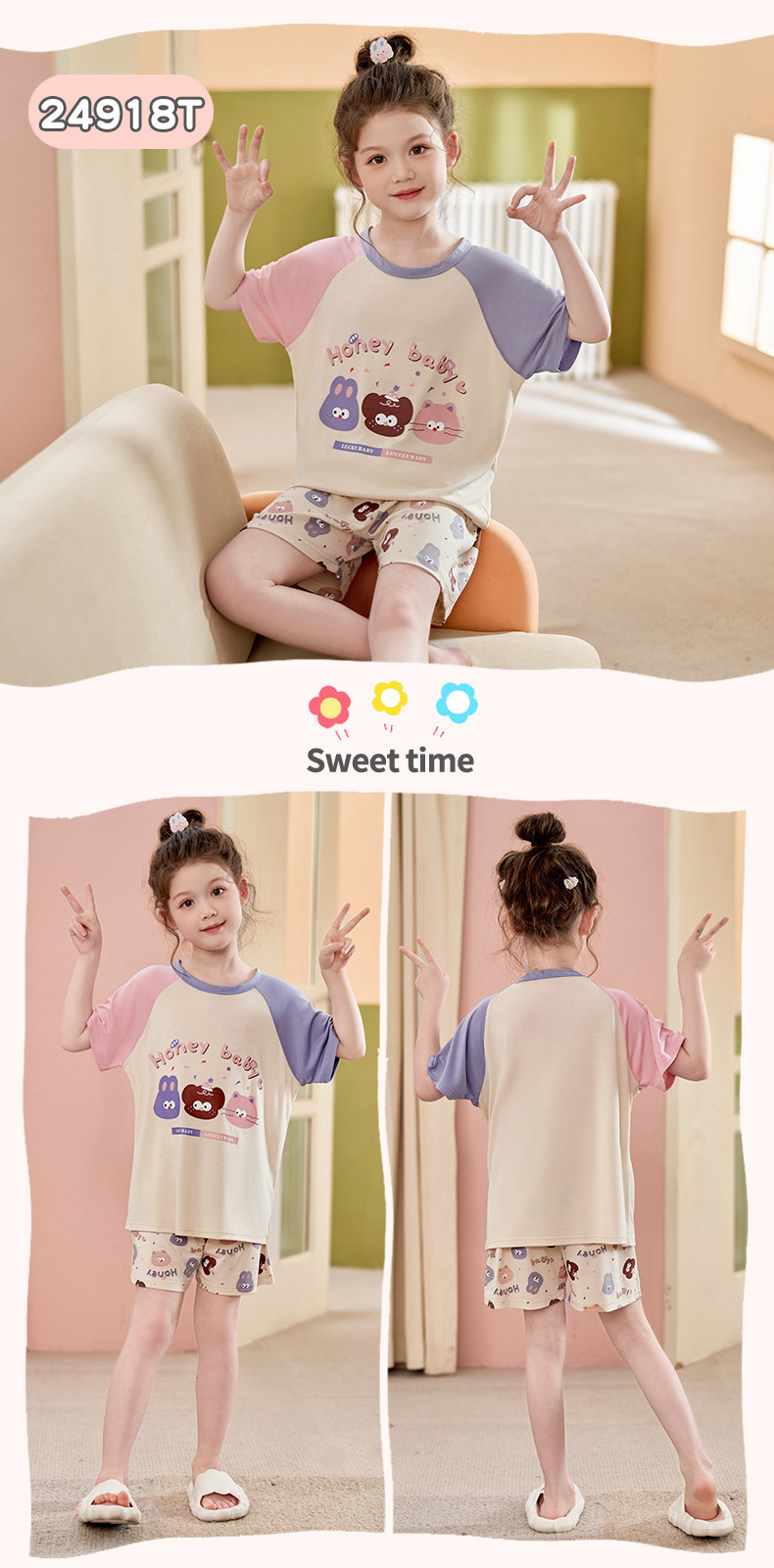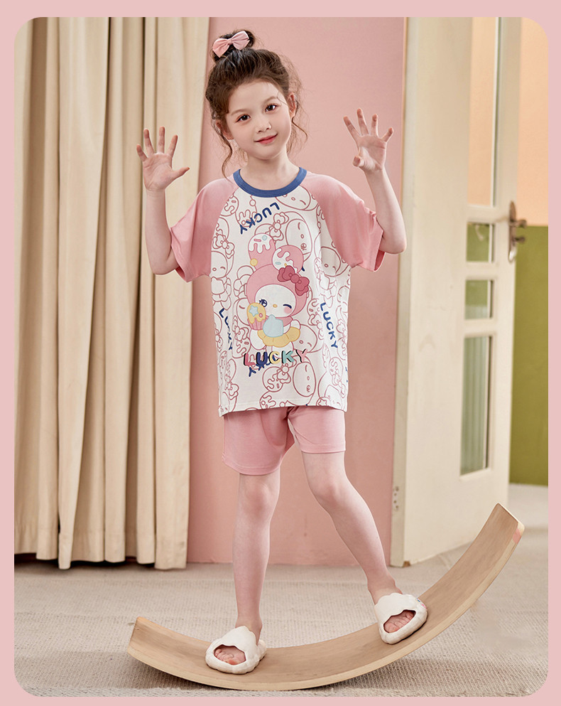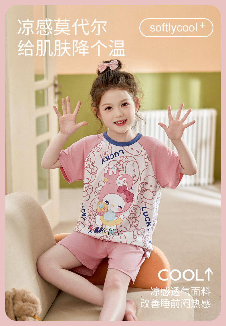 모달 소녀 잠옷 여름 어린이 반팔 반바지 세트 귀여운 소녀 중 큰 어린이 멋진 홈 옷 여름스토어 가기