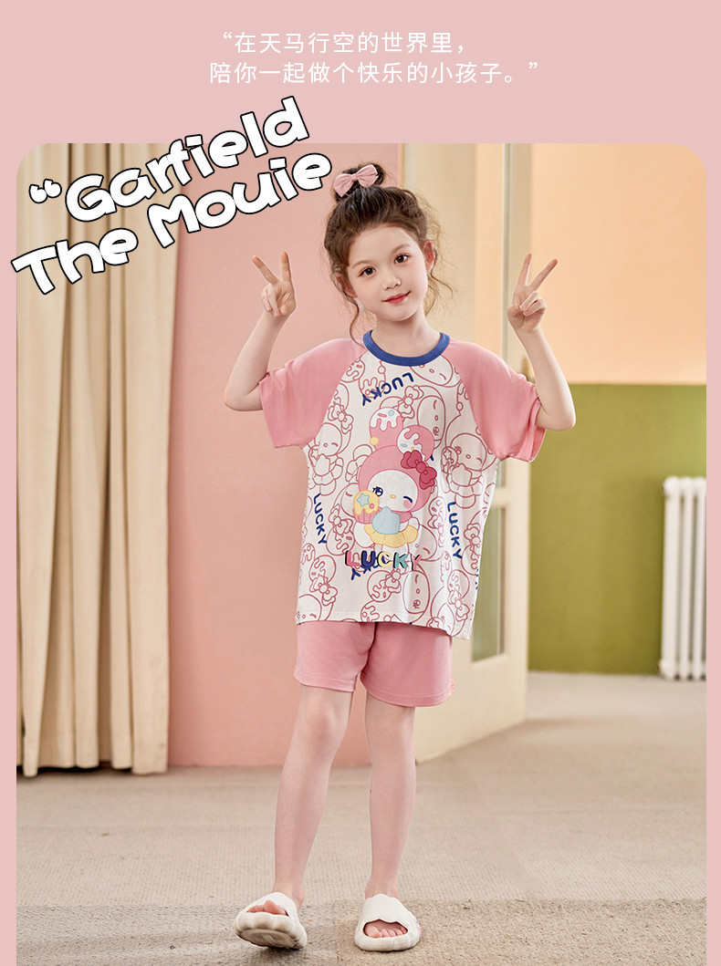 모달 소녀 잠옷 여름 어린이 반팔 반바지 세트 귀여운 소녀 중 큰 어린이 멋진 홈 옷 여름
