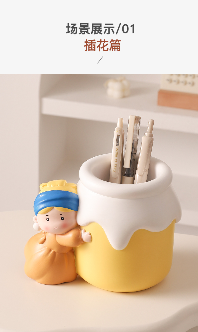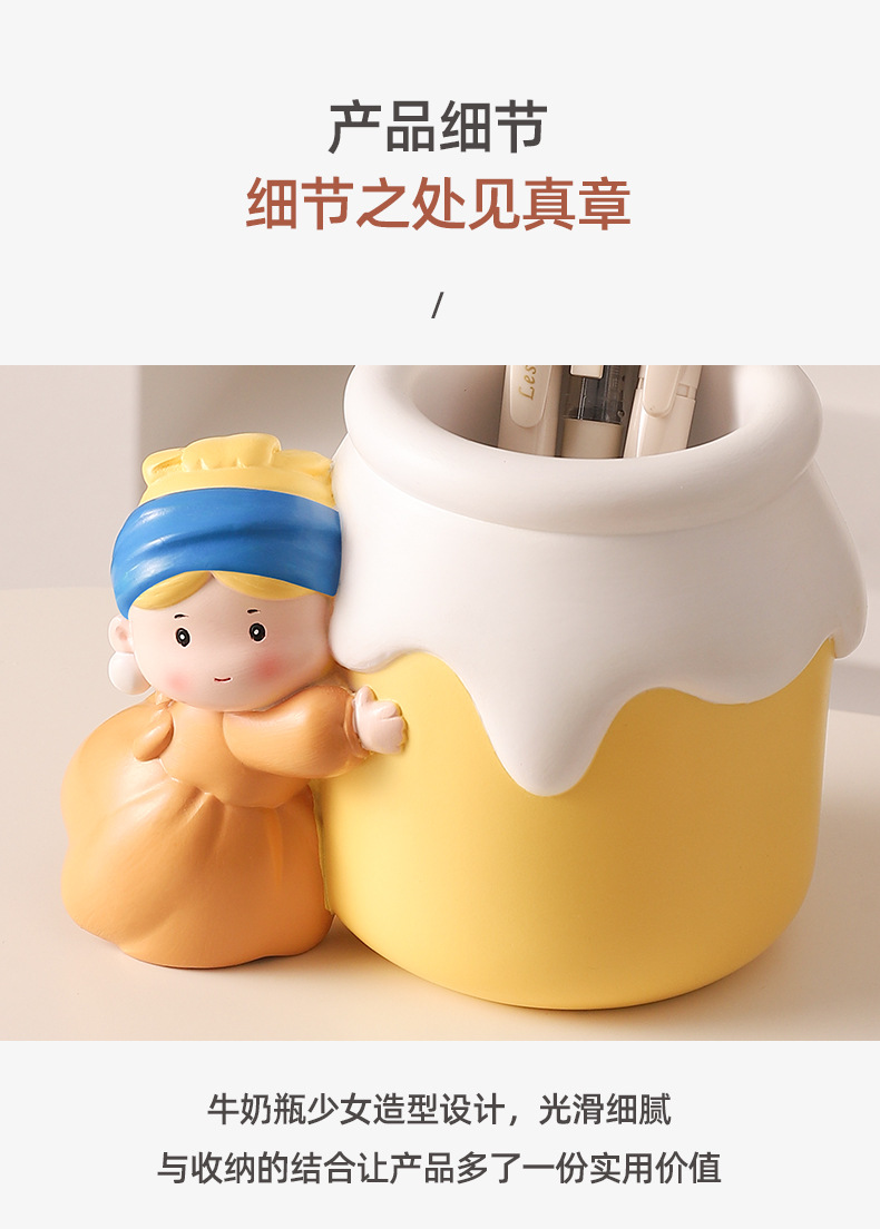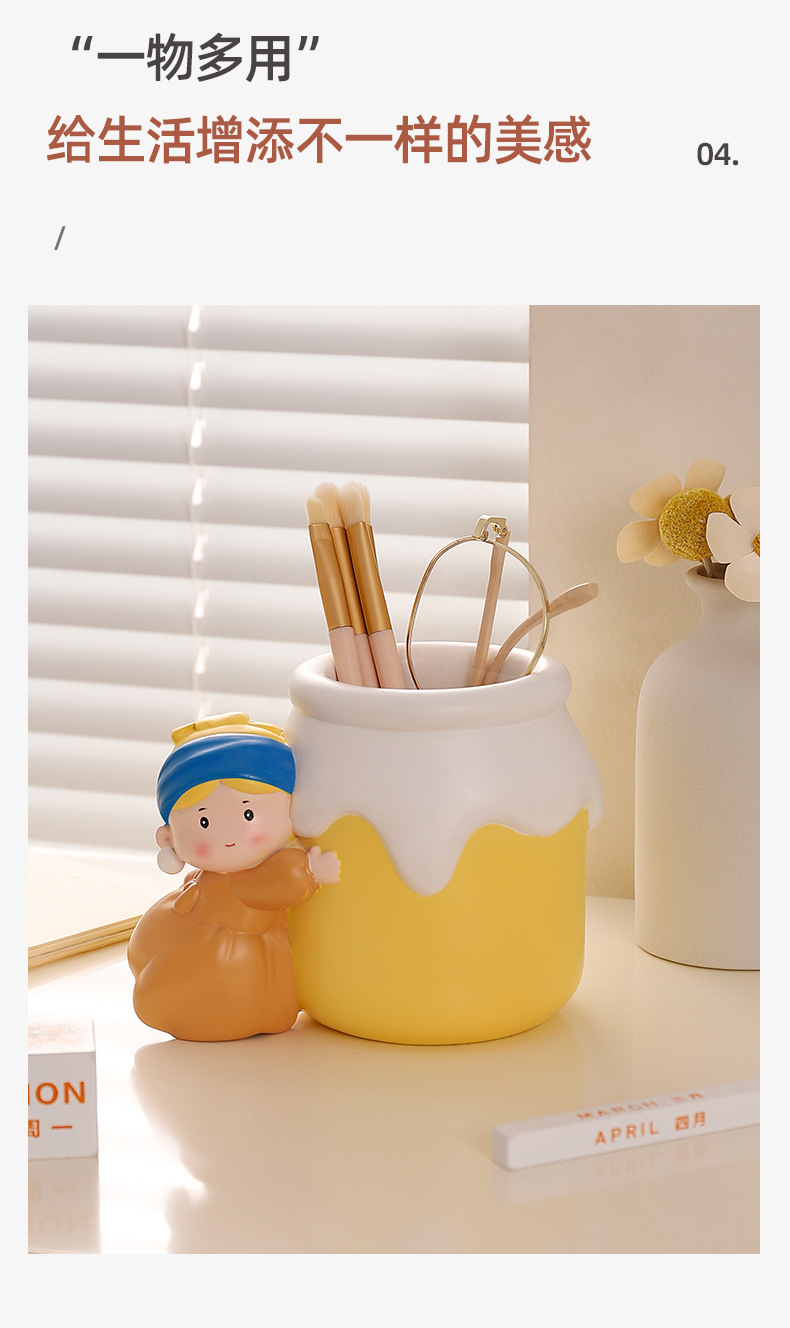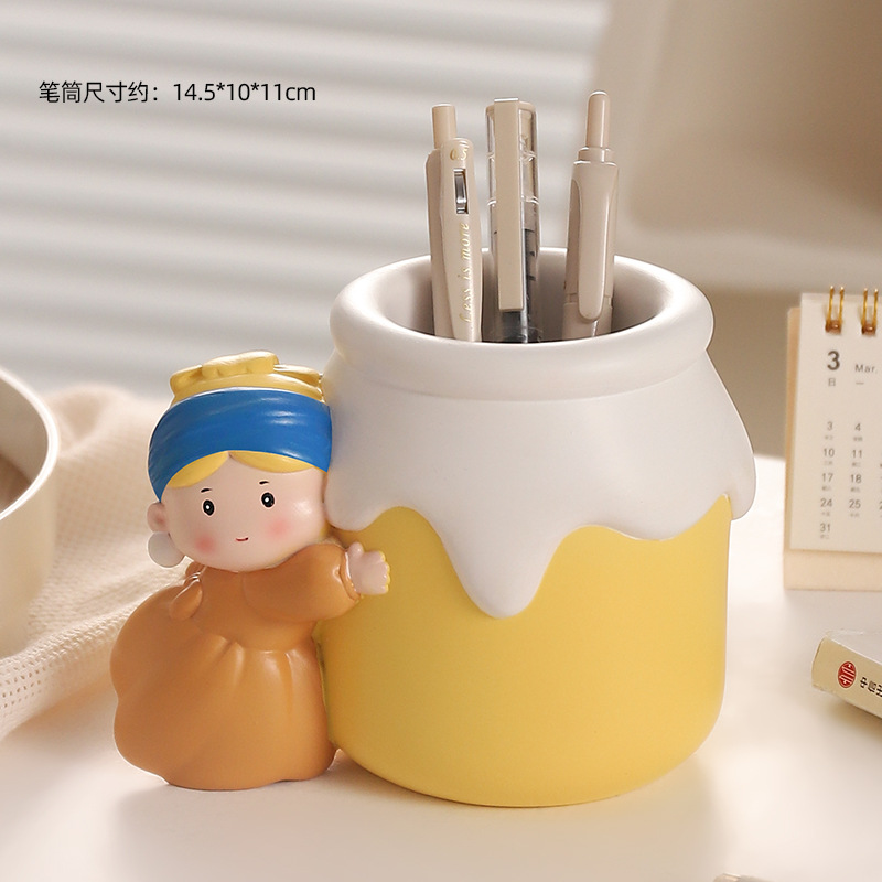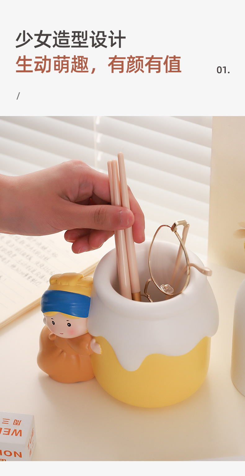 新款可爱珍珠女孩笔筒收纳桌面摆件 网红热销艺术家笔筒学生礼物