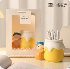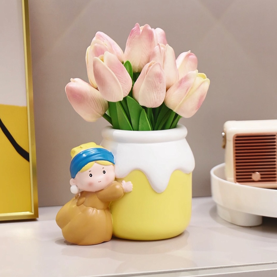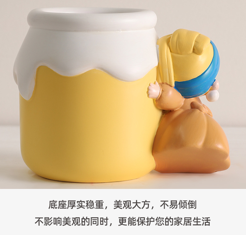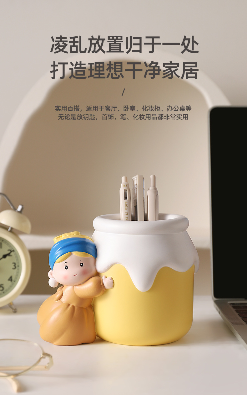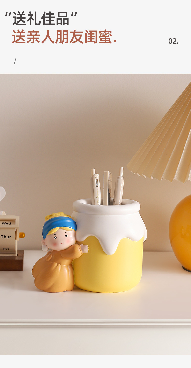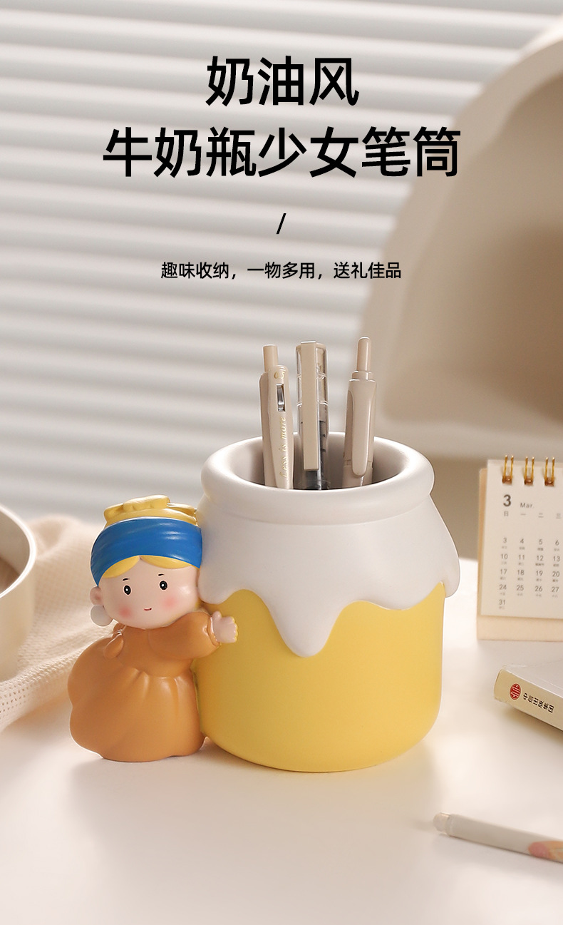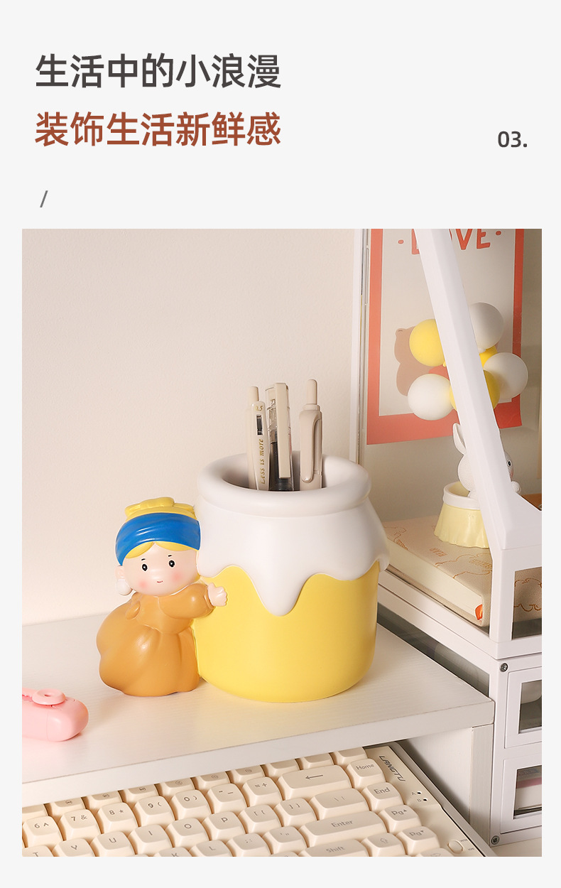 新款可爱珍珠女孩笔筒收纳桌面摆件 网红热销艺术家笔筒学生礼物