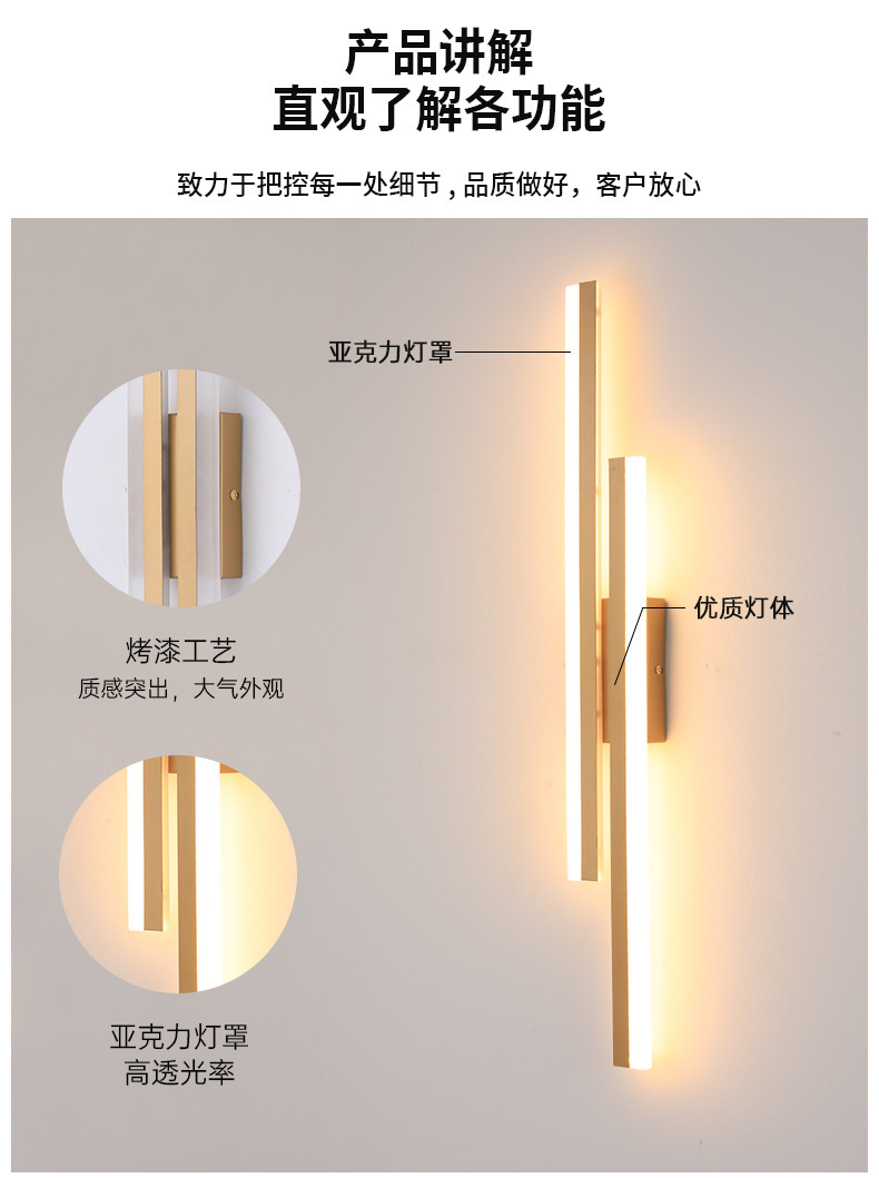 LED 실내 창의적인 인기 북유럽 미니멀리스트 긴 벽등 복도 계단 거실 배경 벽 라인 조명스토어 가기