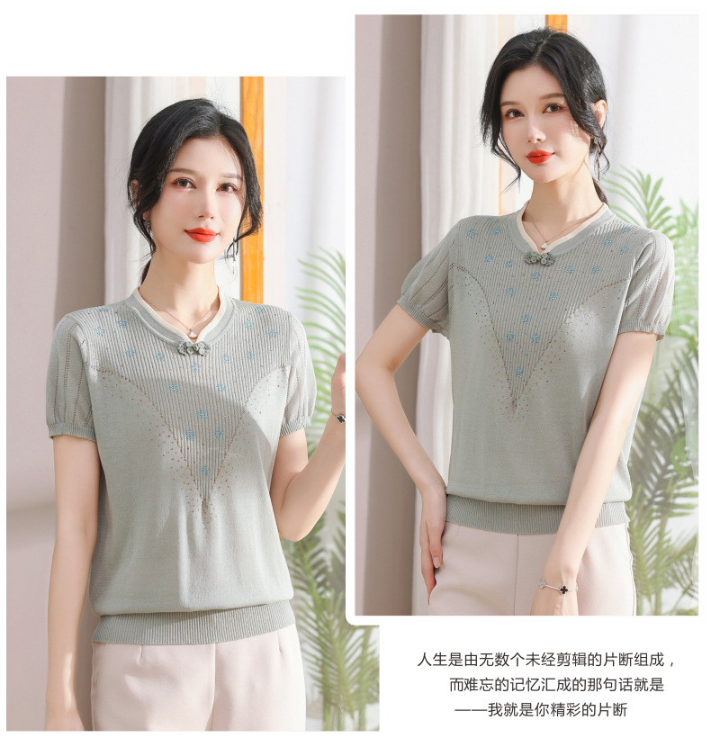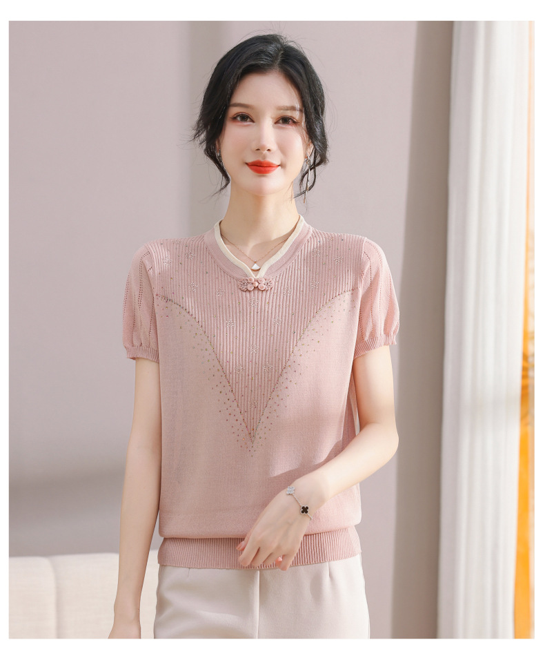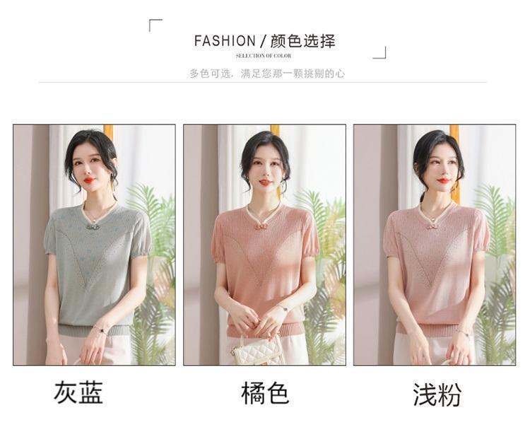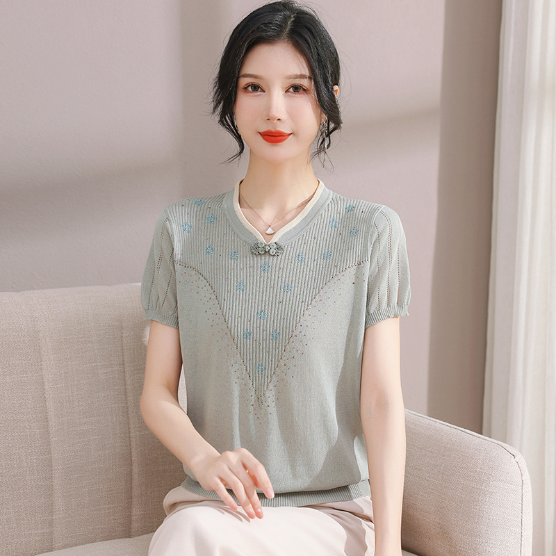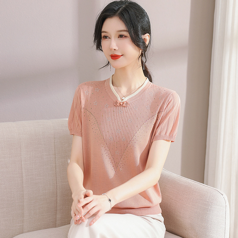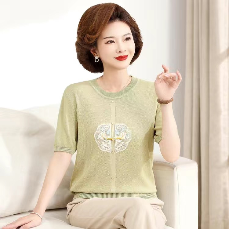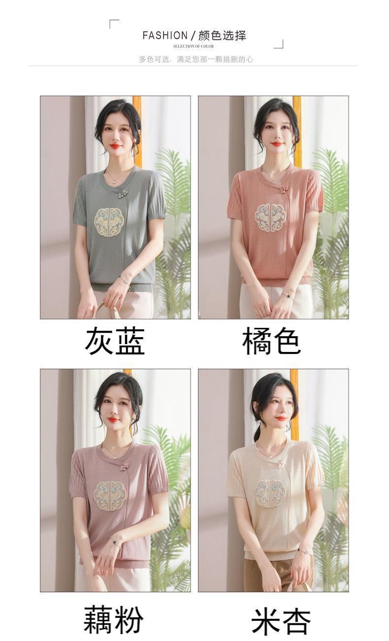 서양식 어머니의 티셔츠 Guofeng 여성베이스 셔츠 레트로 여성용 작은 셔츠 풀오버 니트 반팔 탑 티셔츠