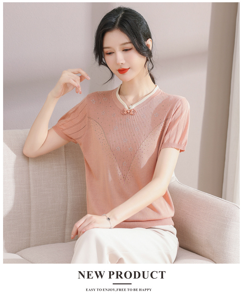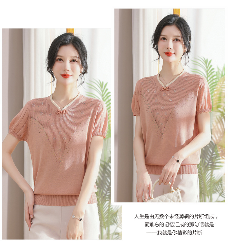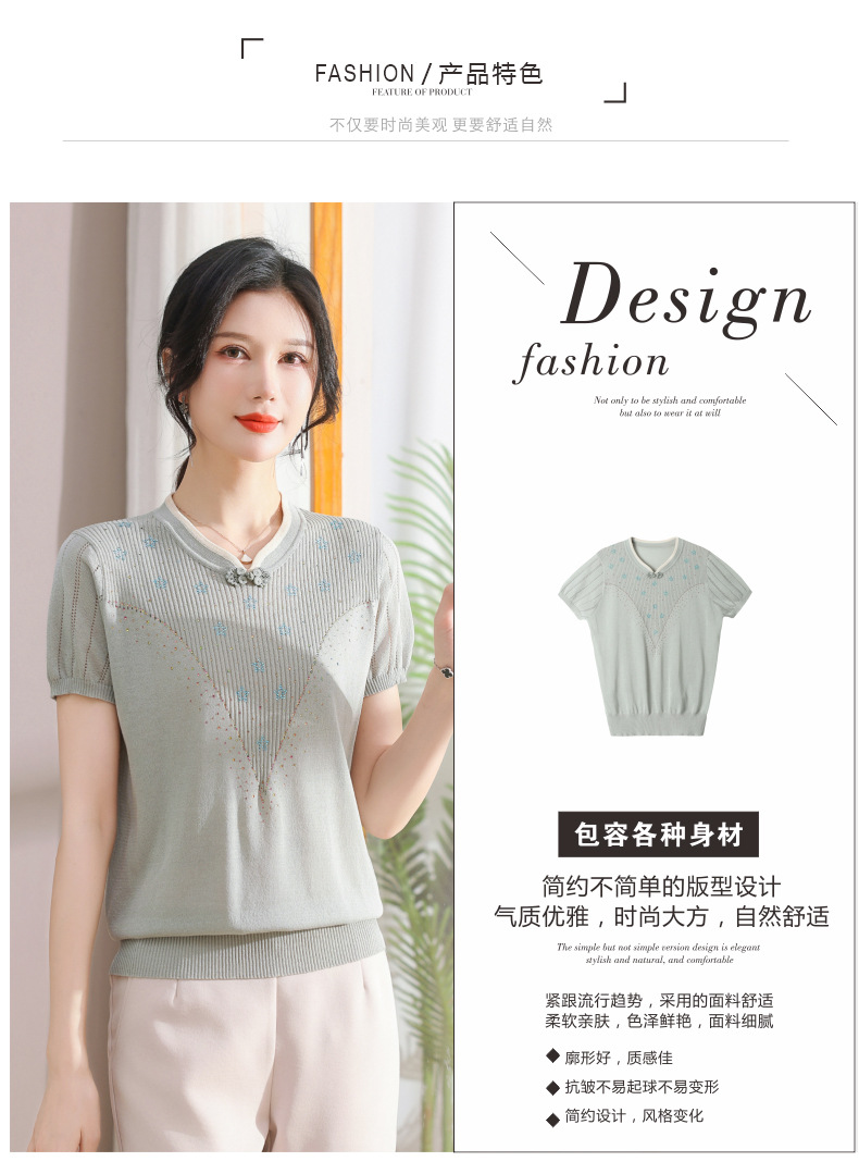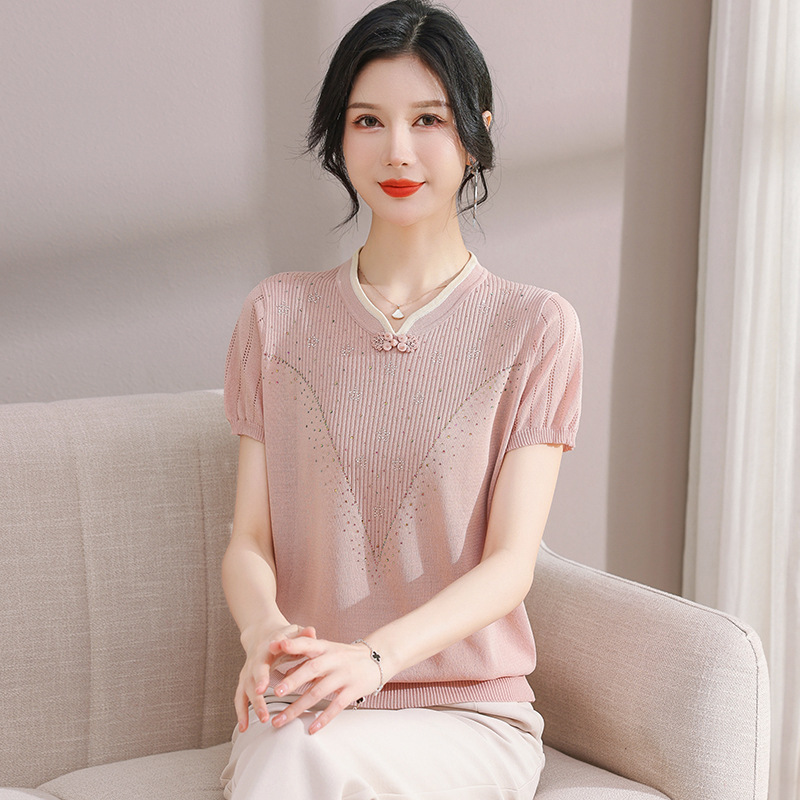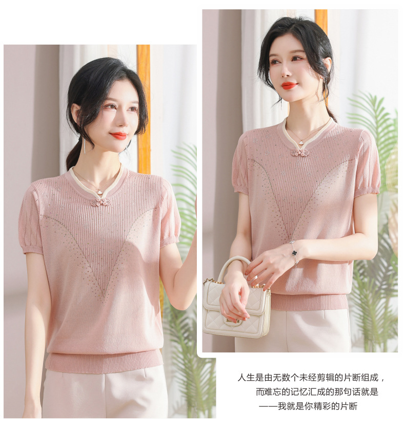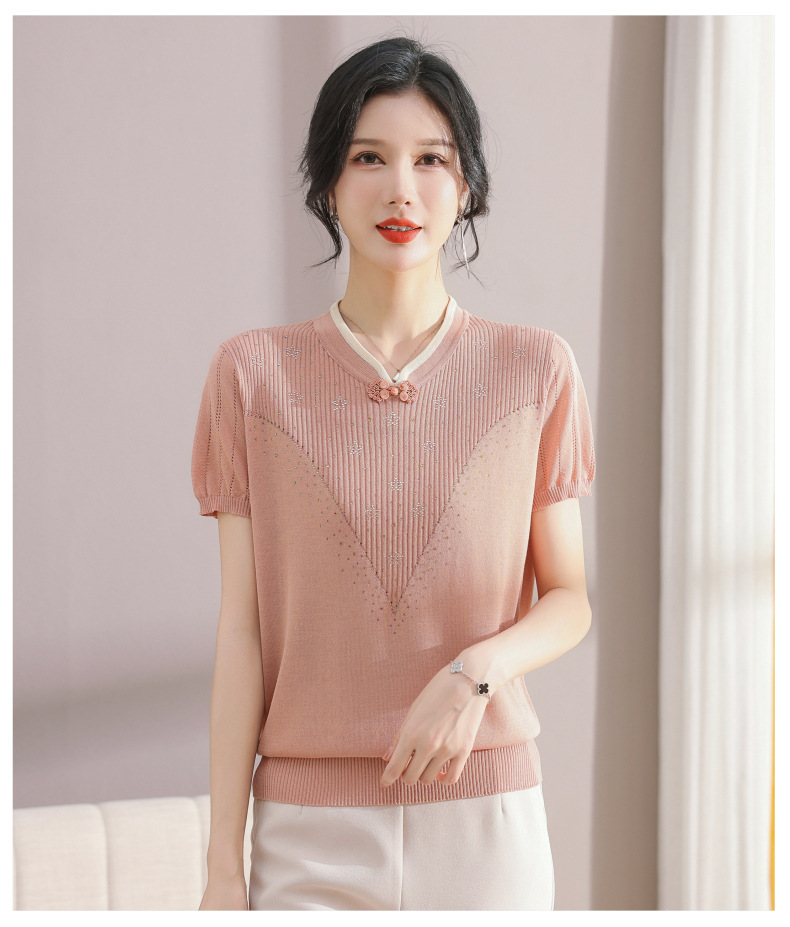 서양식 어머니의 티셔츠 Guofeng 여성베이스 셔츠 레트로 여성용 작은 셔츠 풀오버 니트 반팔 탑 티셔츠