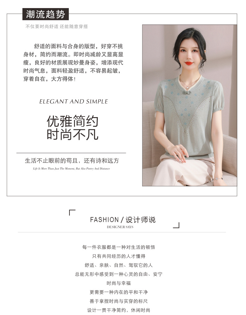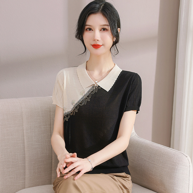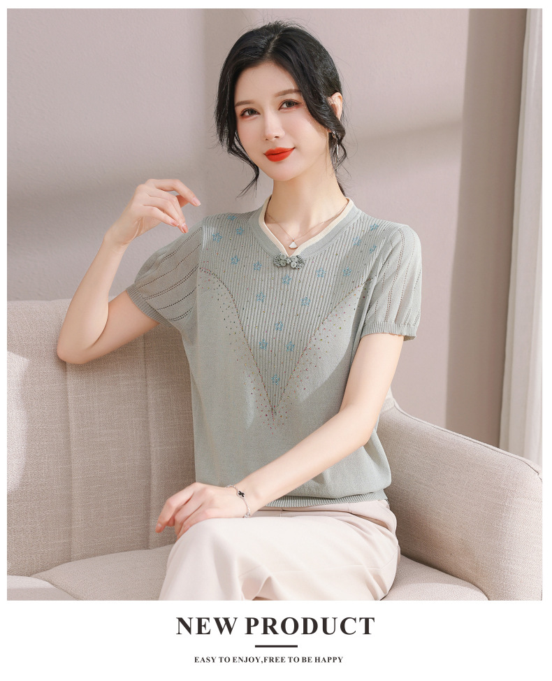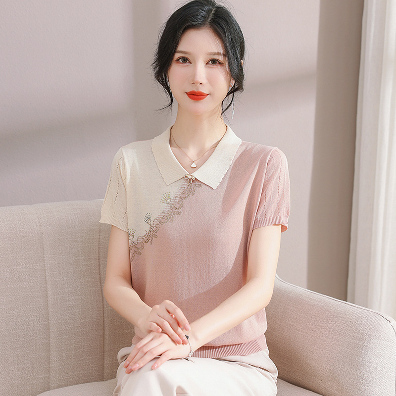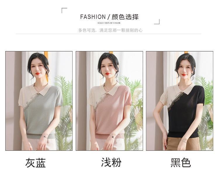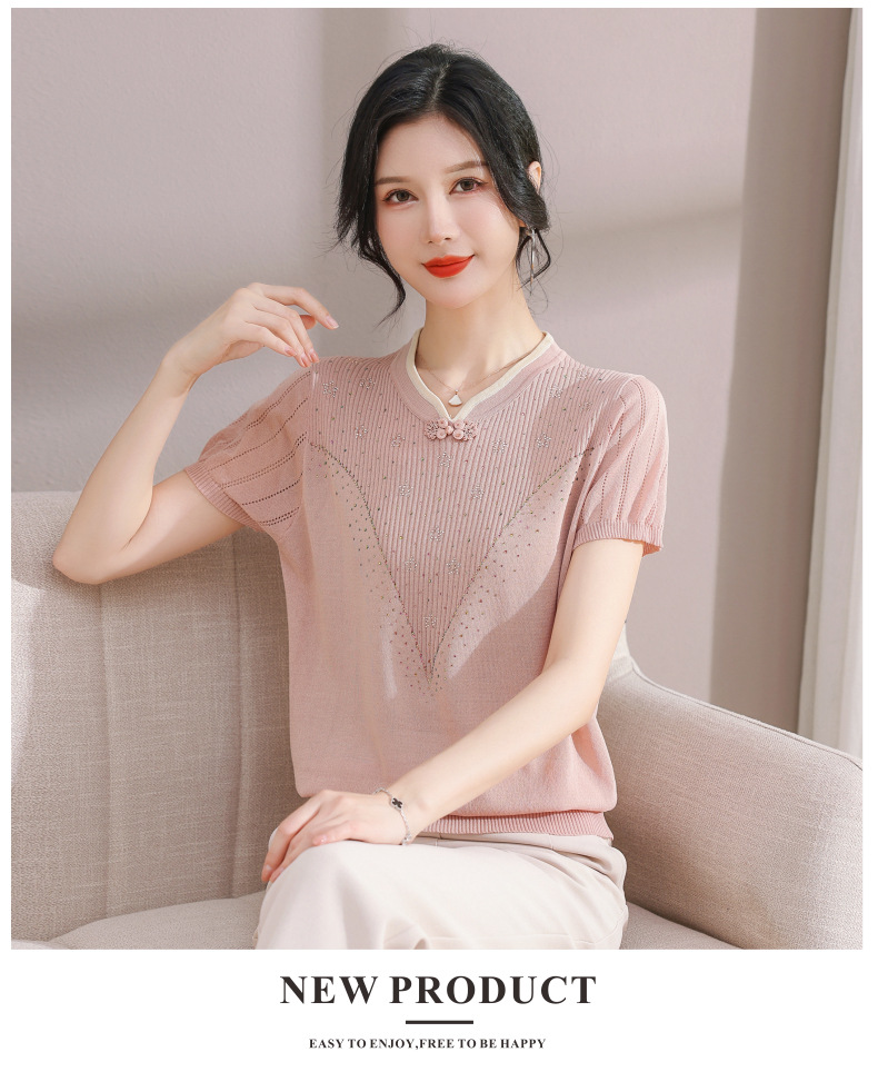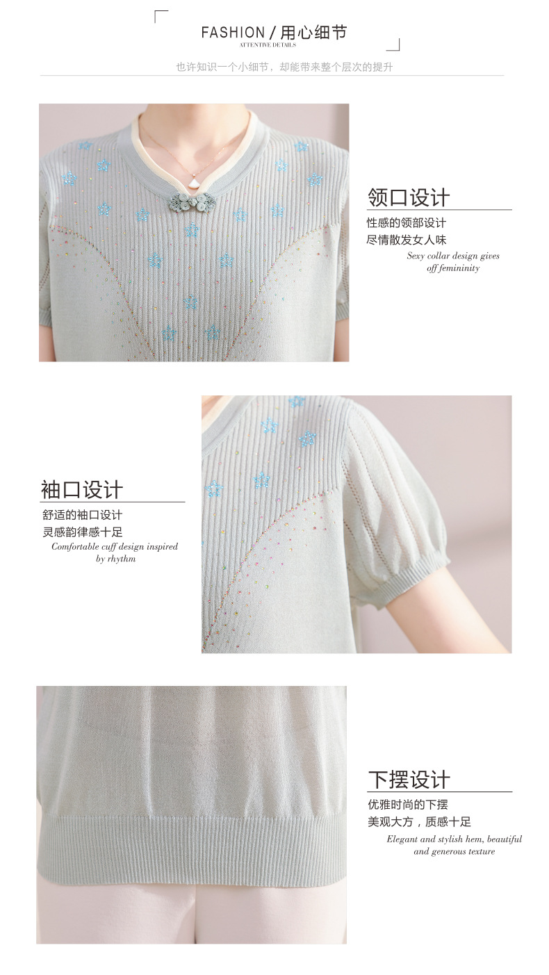 서양식 어머니의 티셔츠 Guofeng 여성베이스 셔츠 레트로 여성용 작은 셔츠 풀오버 니트 반팔 탑 티셔츠