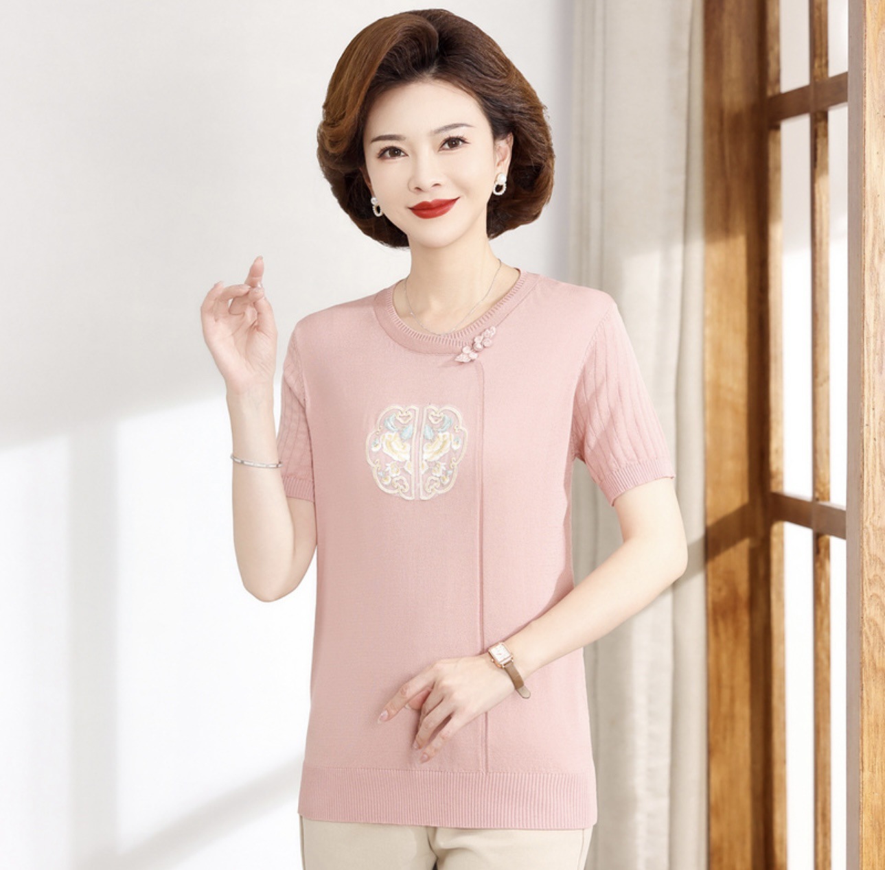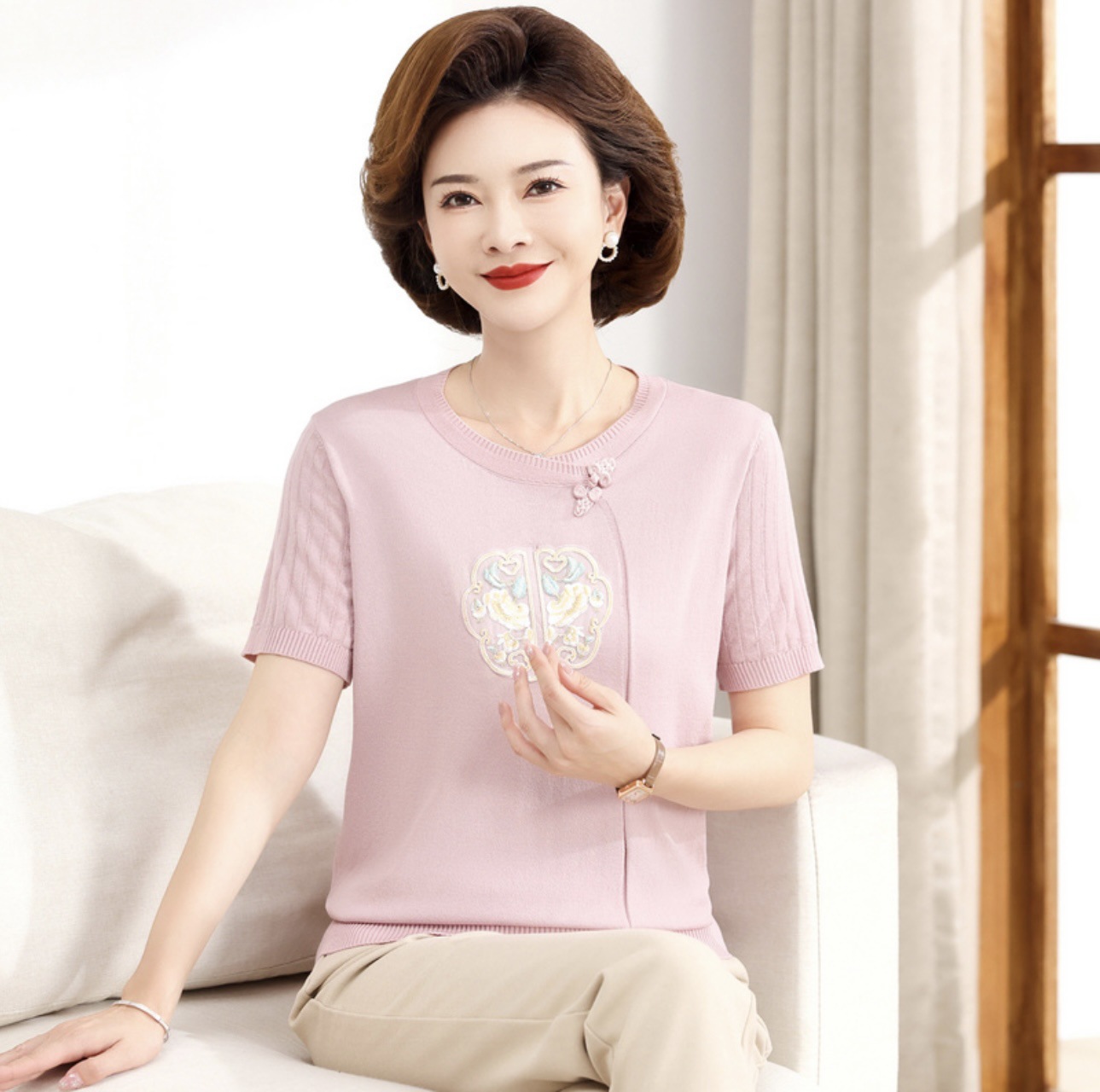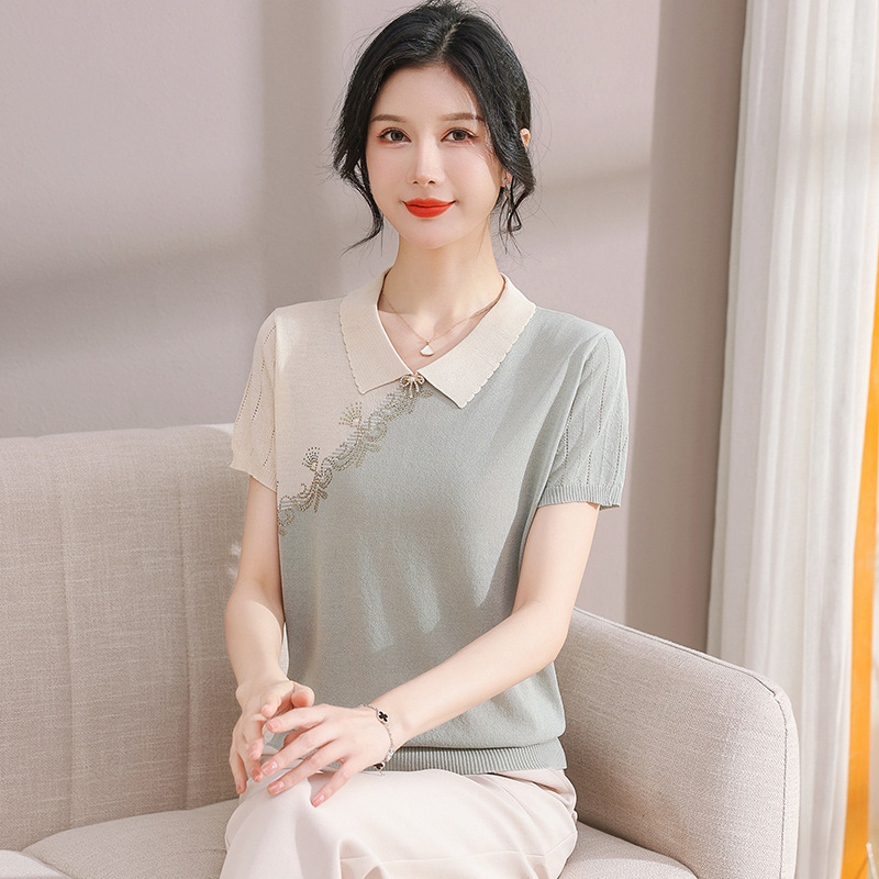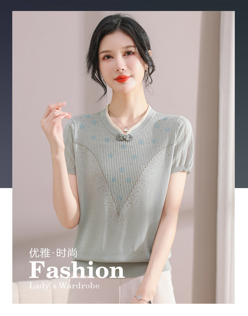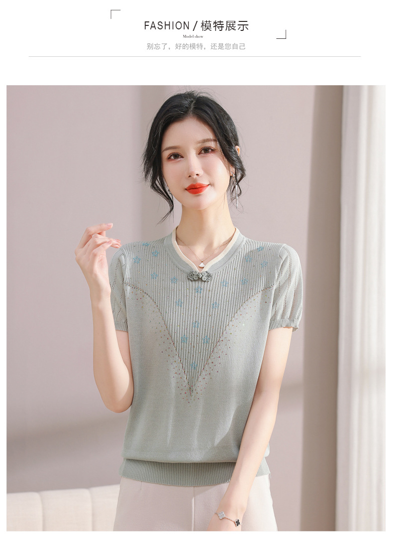 서양식 어머니의 티셔츠 Guofeng 여성베이스 셔츠 레트로 여성용 작은 셔츠 풀오버 니트 반팔 탑 티셔츠스토어 가기