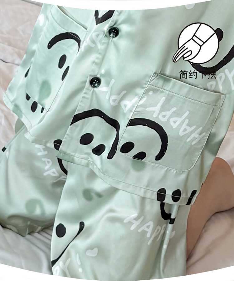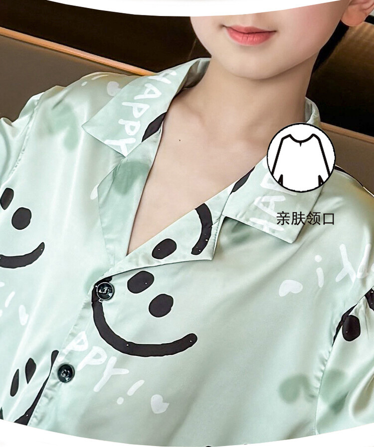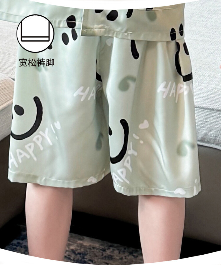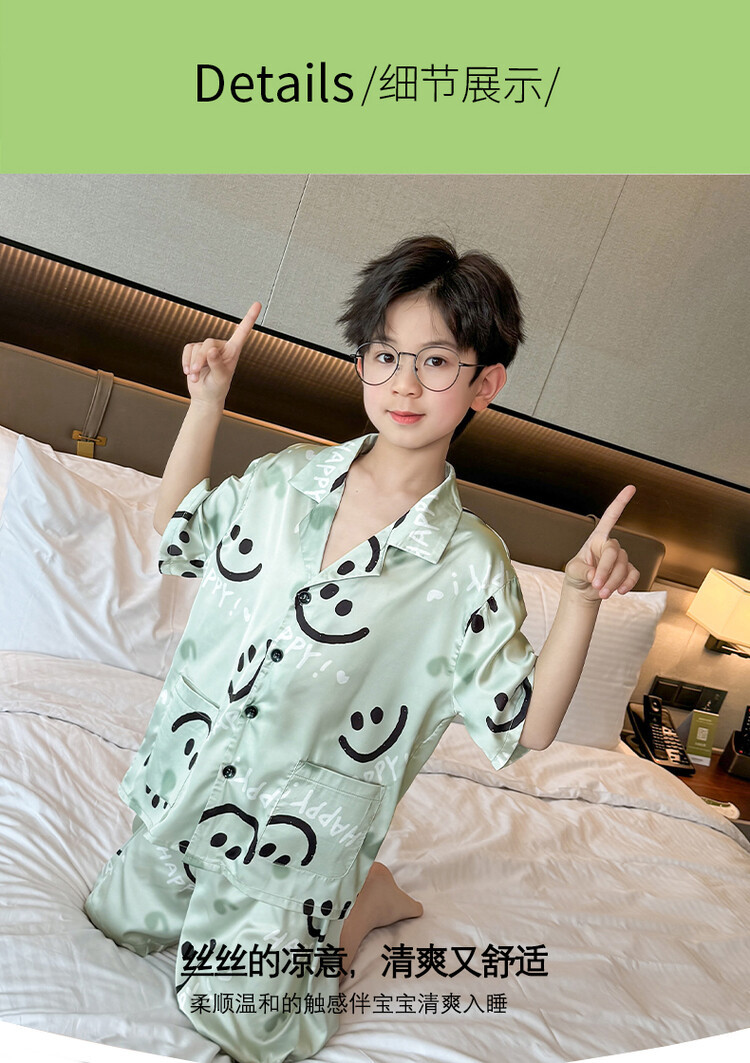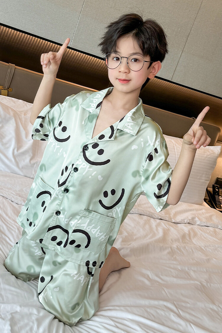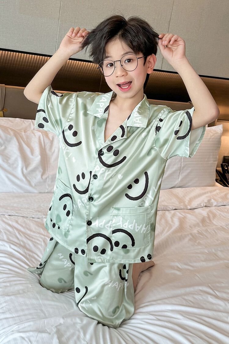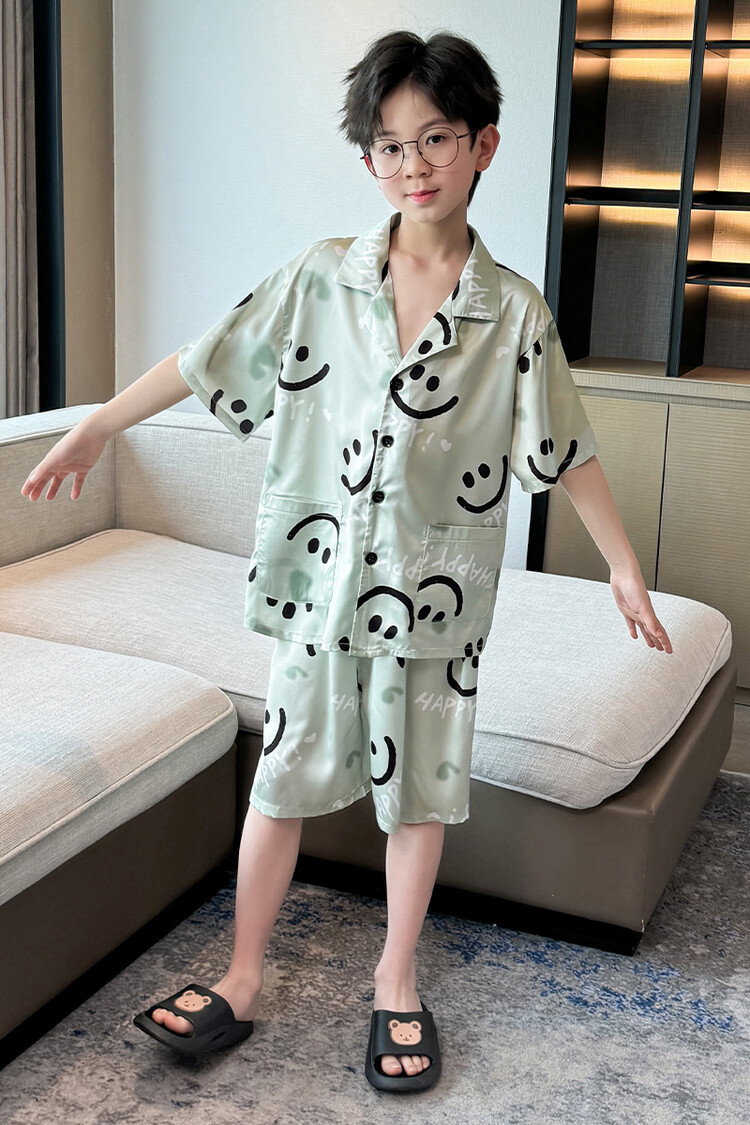 남학생 웃는 얼굴 홈 세트 여름 대형 어린이 얇은 에어컨 세트 반팔 반바지 아이스 실크 파자마 투피스 세트