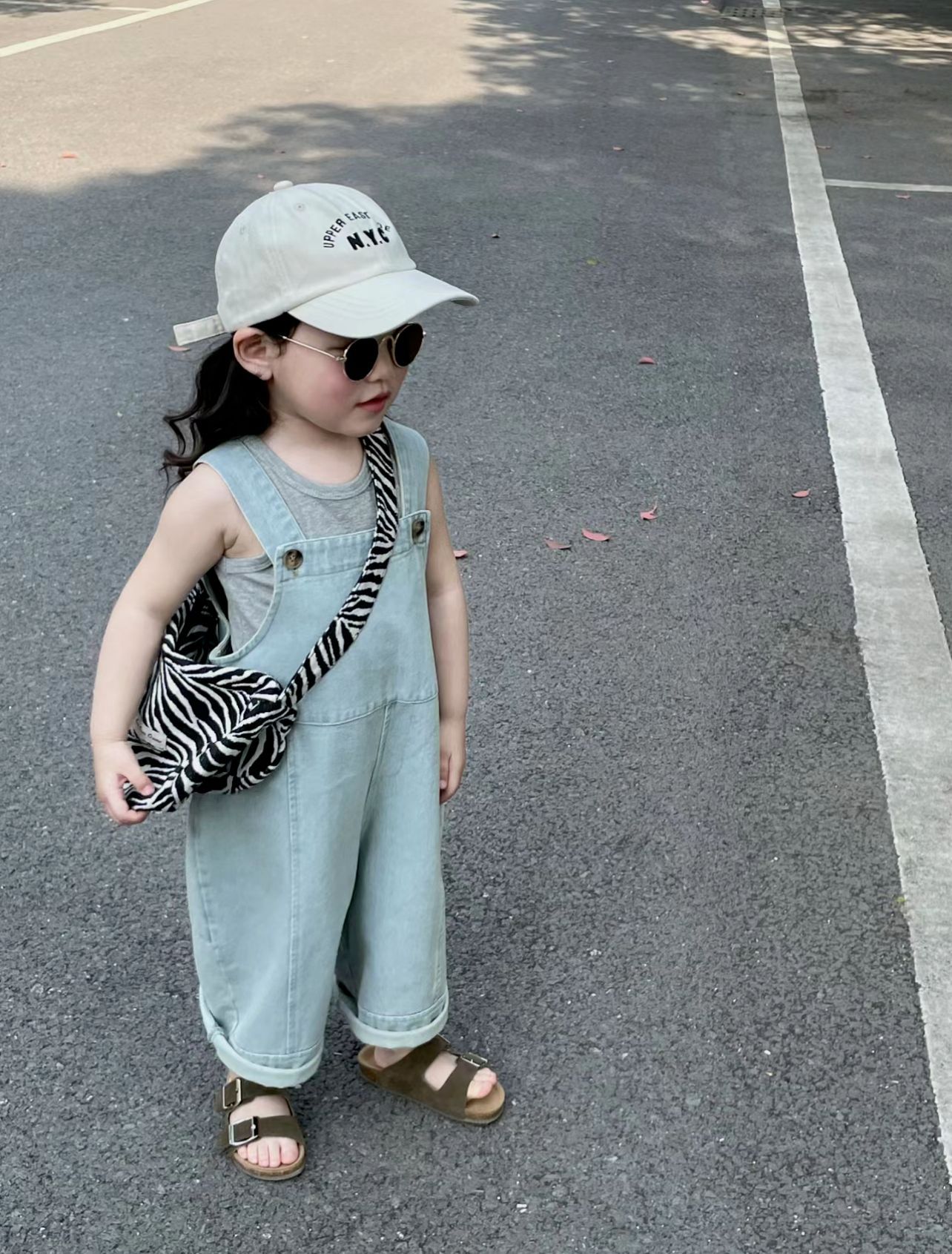 2026년 여름 신상품 한국 스타일 아동복 여아 레트로 민소매 점프수트 스트레이트 팬츠 아기 멜빵바지스토어 가기
