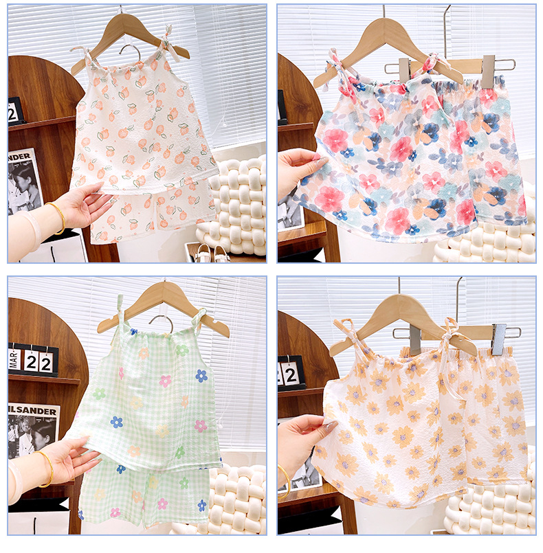 아동용 스커트 새로운 스타일 한국판 여아 스커트 아기옷 어린이 여름옷 세트 여름 아동복 꽃무늬 귀여운스토어 가기