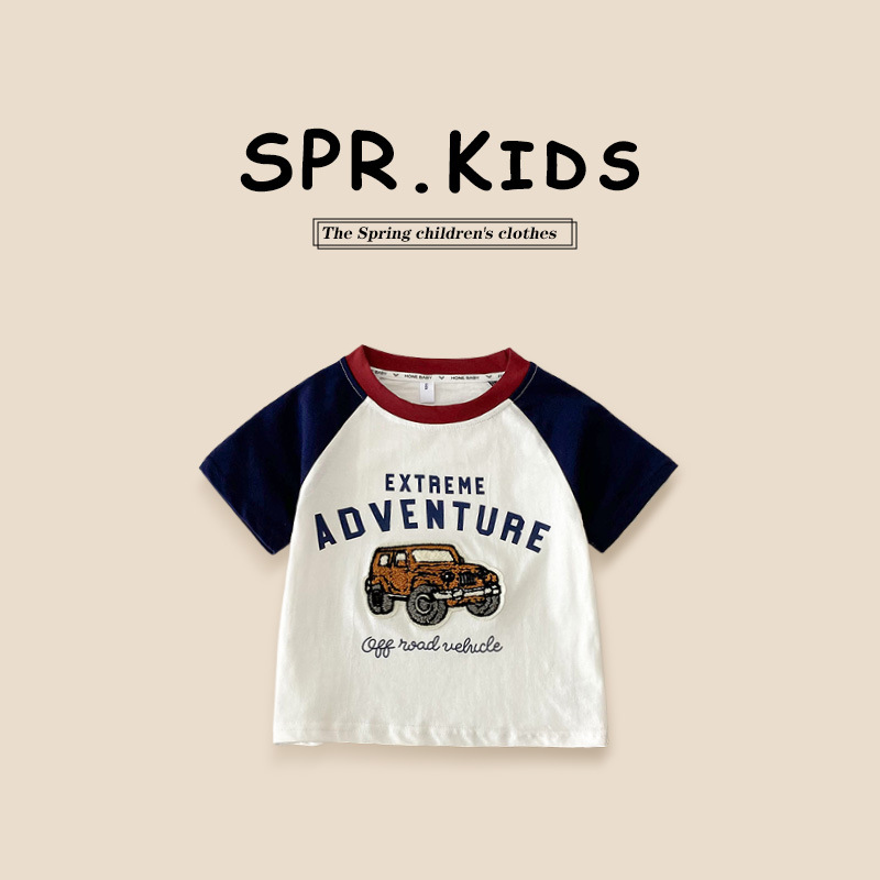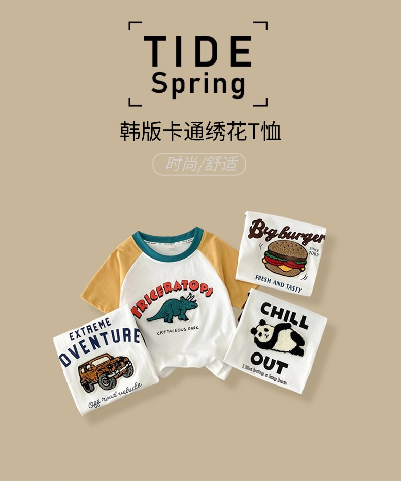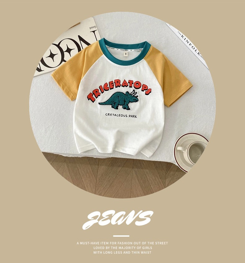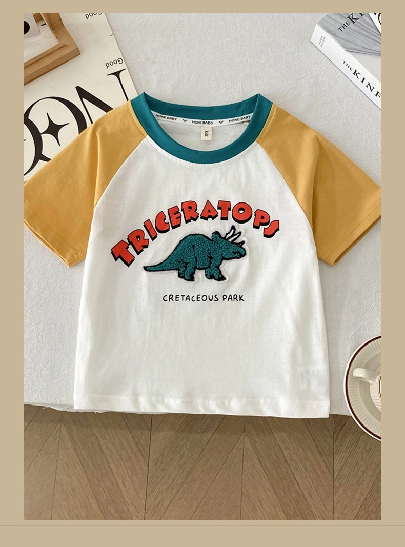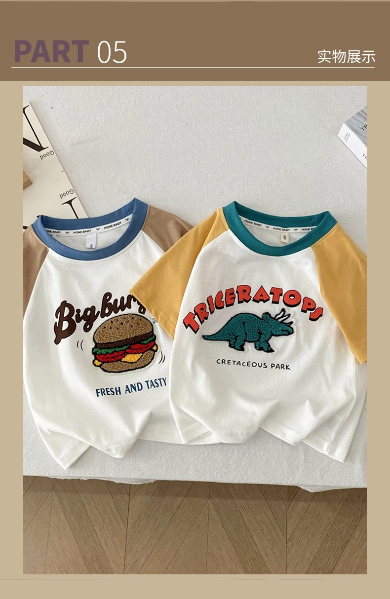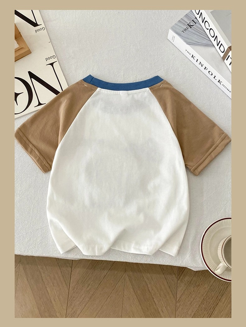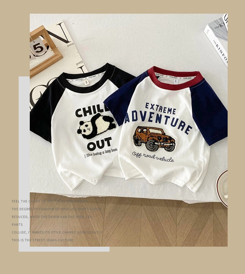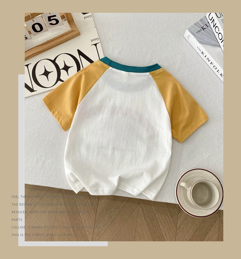 소년 여름 잘 생긴 만화 인쇄 라글란 슬리브 2025 소년 느슨한 반팔 티셔츠 중소 어린이를위한 유행 아동 의류스토어 가기