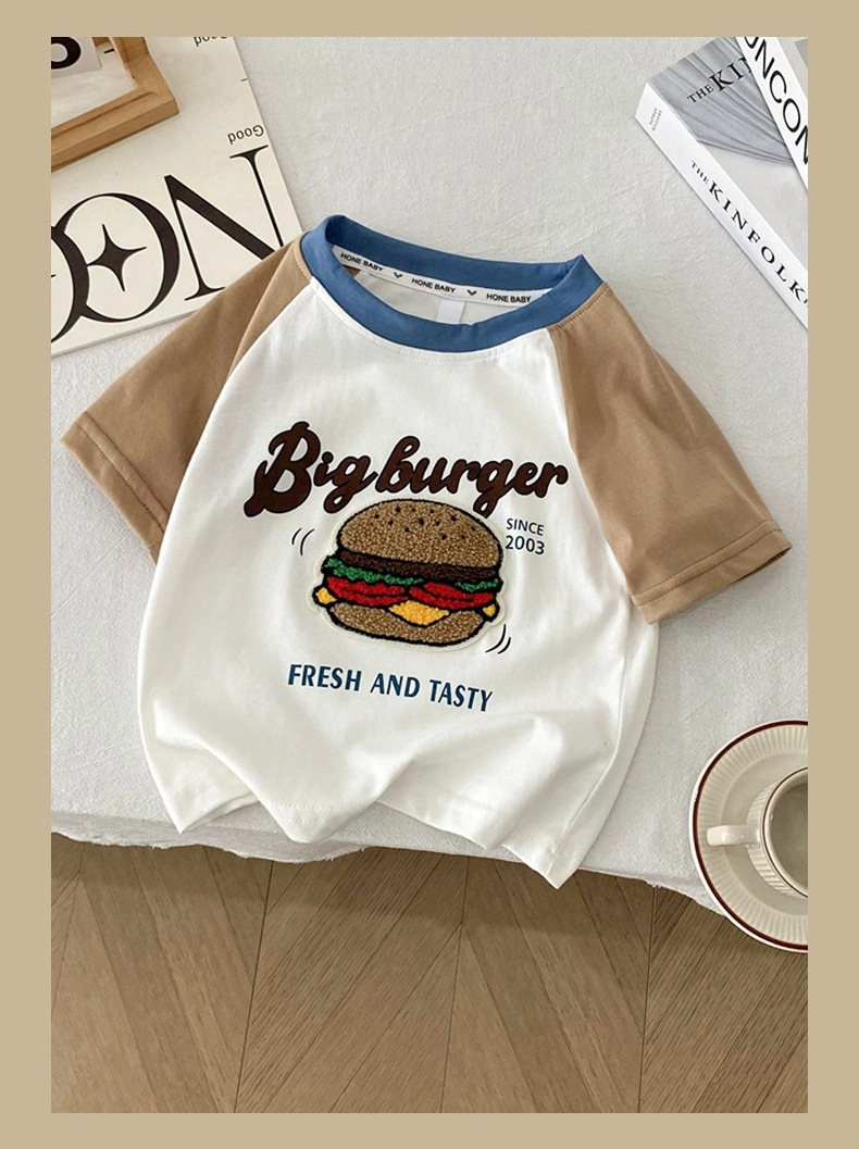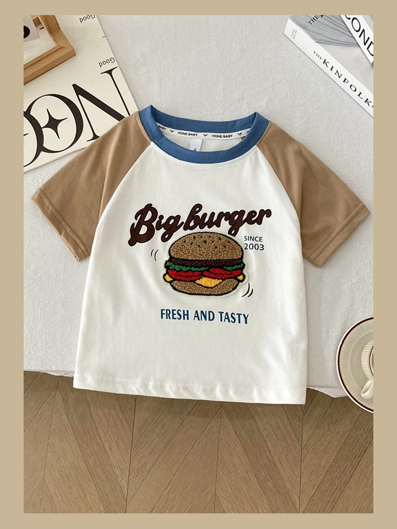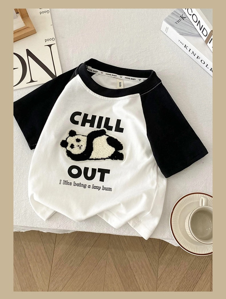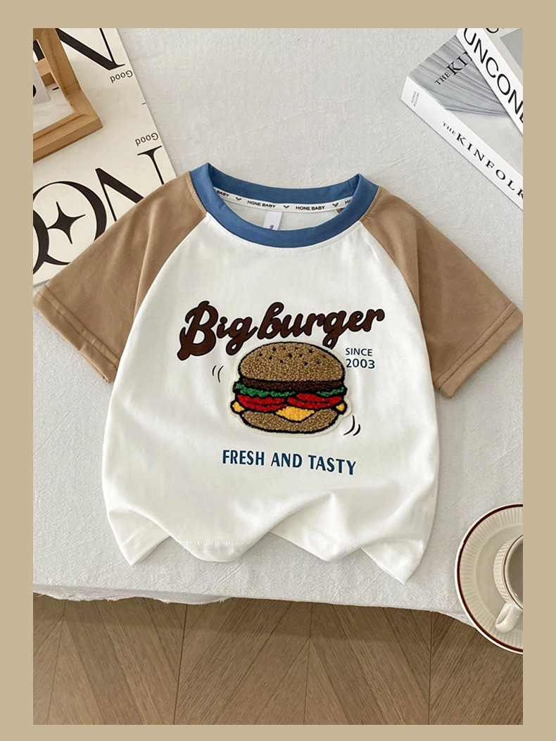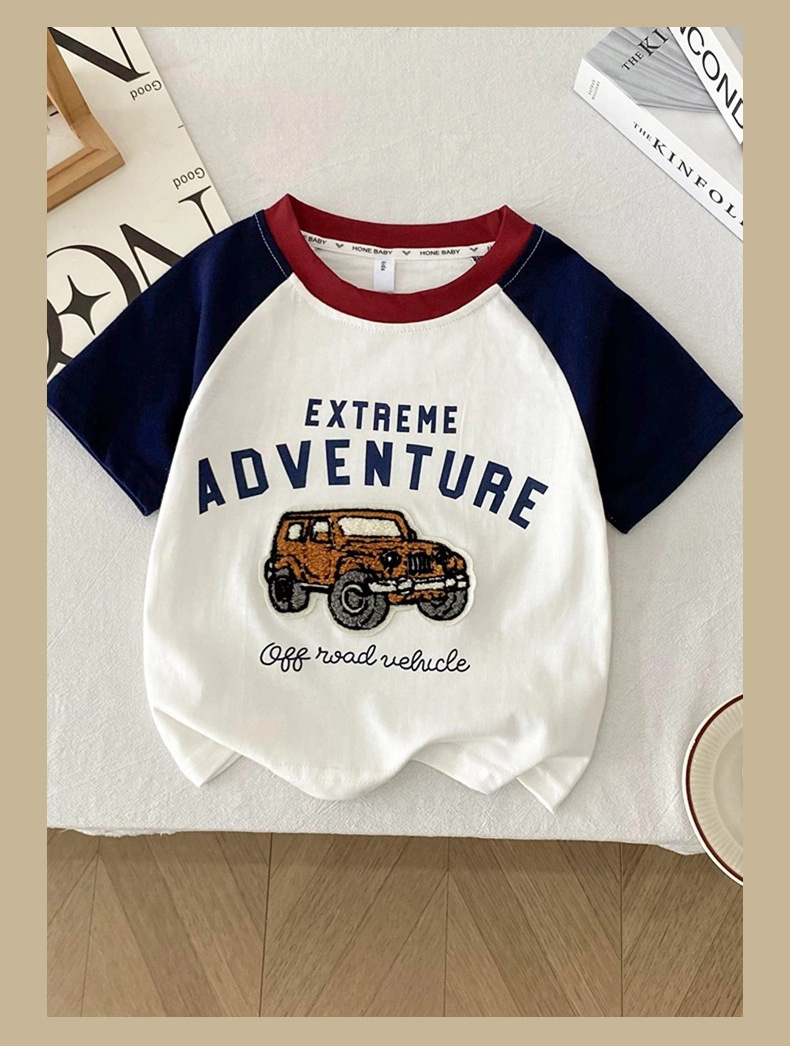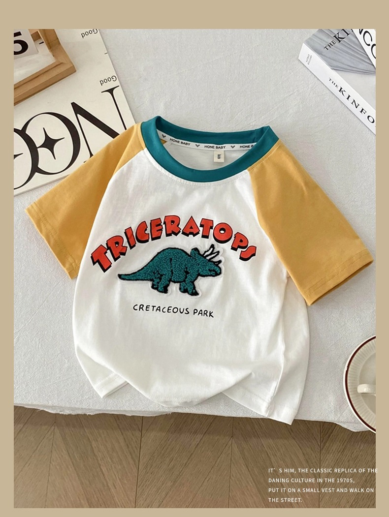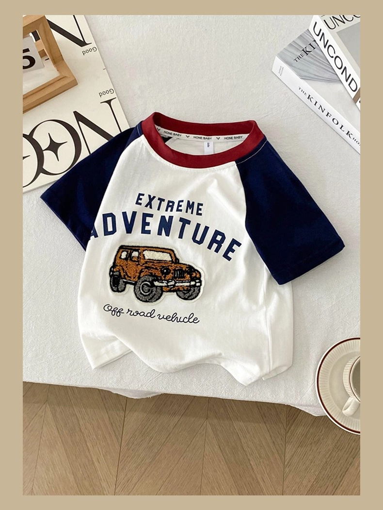 소년 여름 잘 생긴 만화 인쇄 라글란 슬리브 2025 소년 느슨한 반팔 티셔츠 중소 어린이를위한 유행 아동 의류스토어 가기
