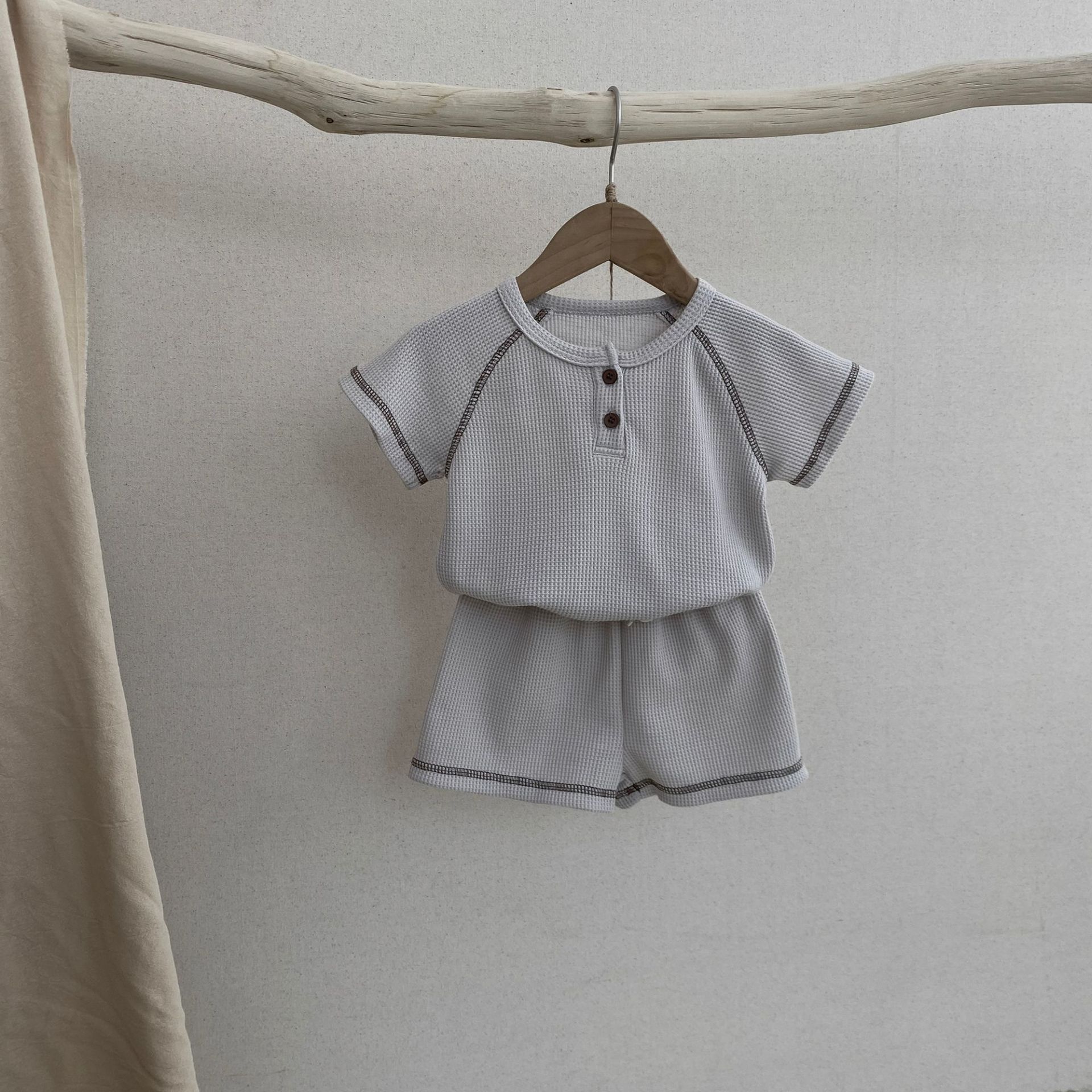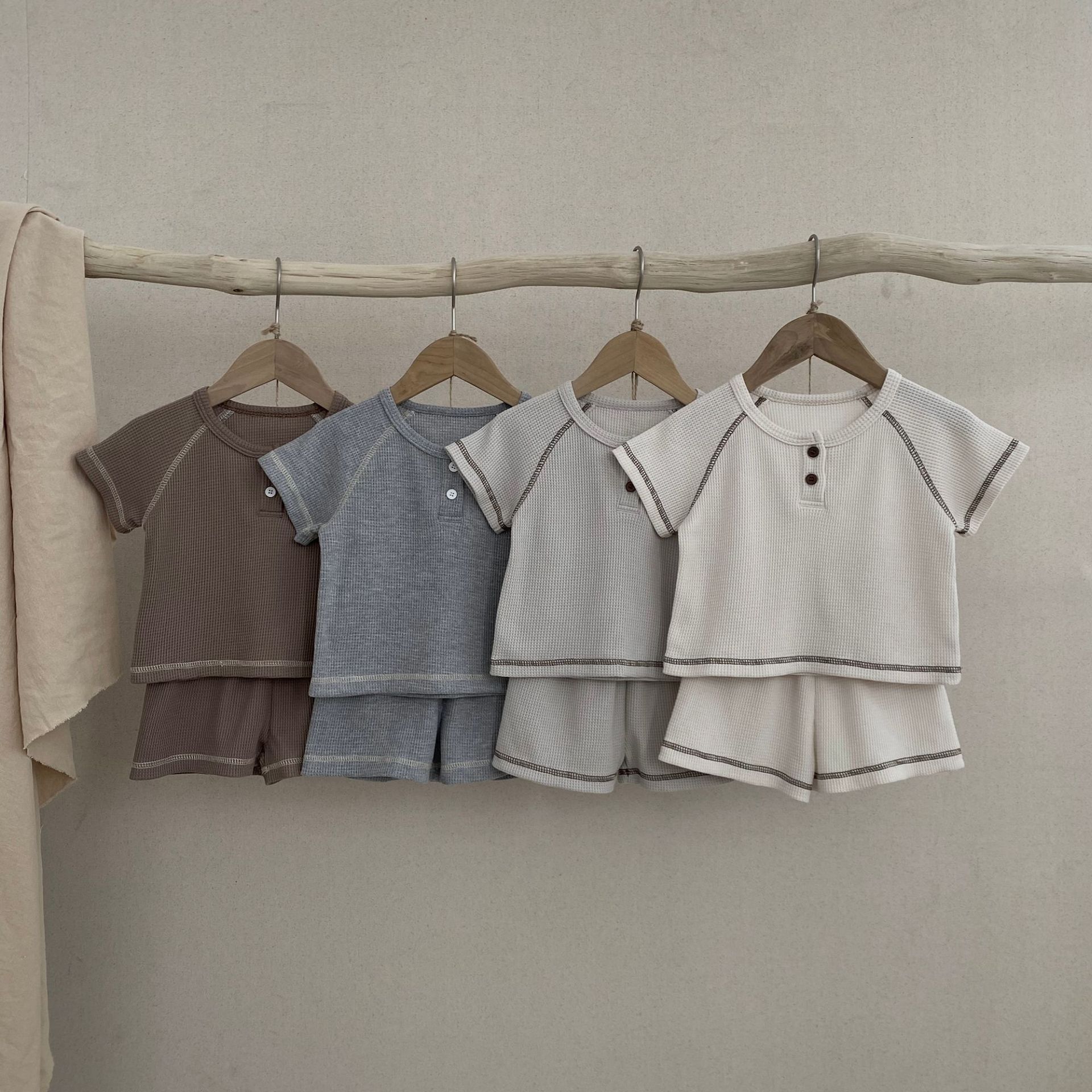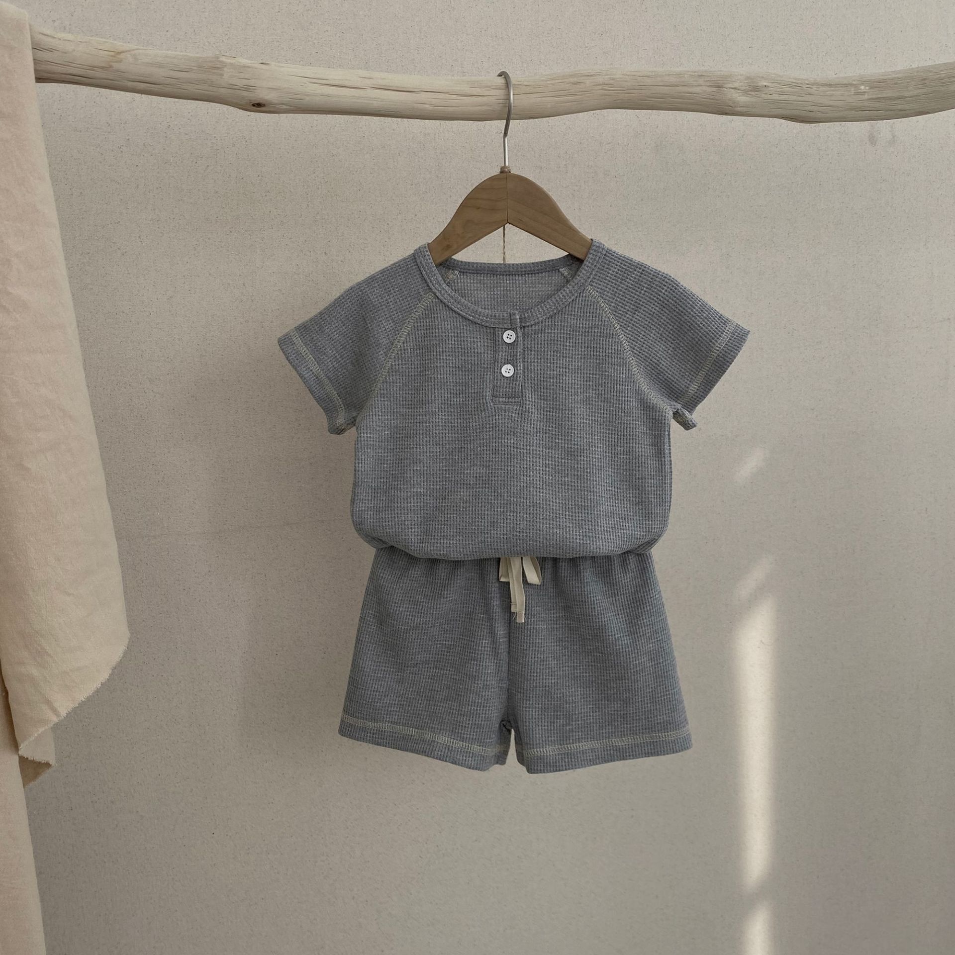 26여름 신상 한국판 아동복 세트 인스타 스타일 유아용 와플 반팔 투피스 세트 아동 여름 스포츠 세트스토어 가기