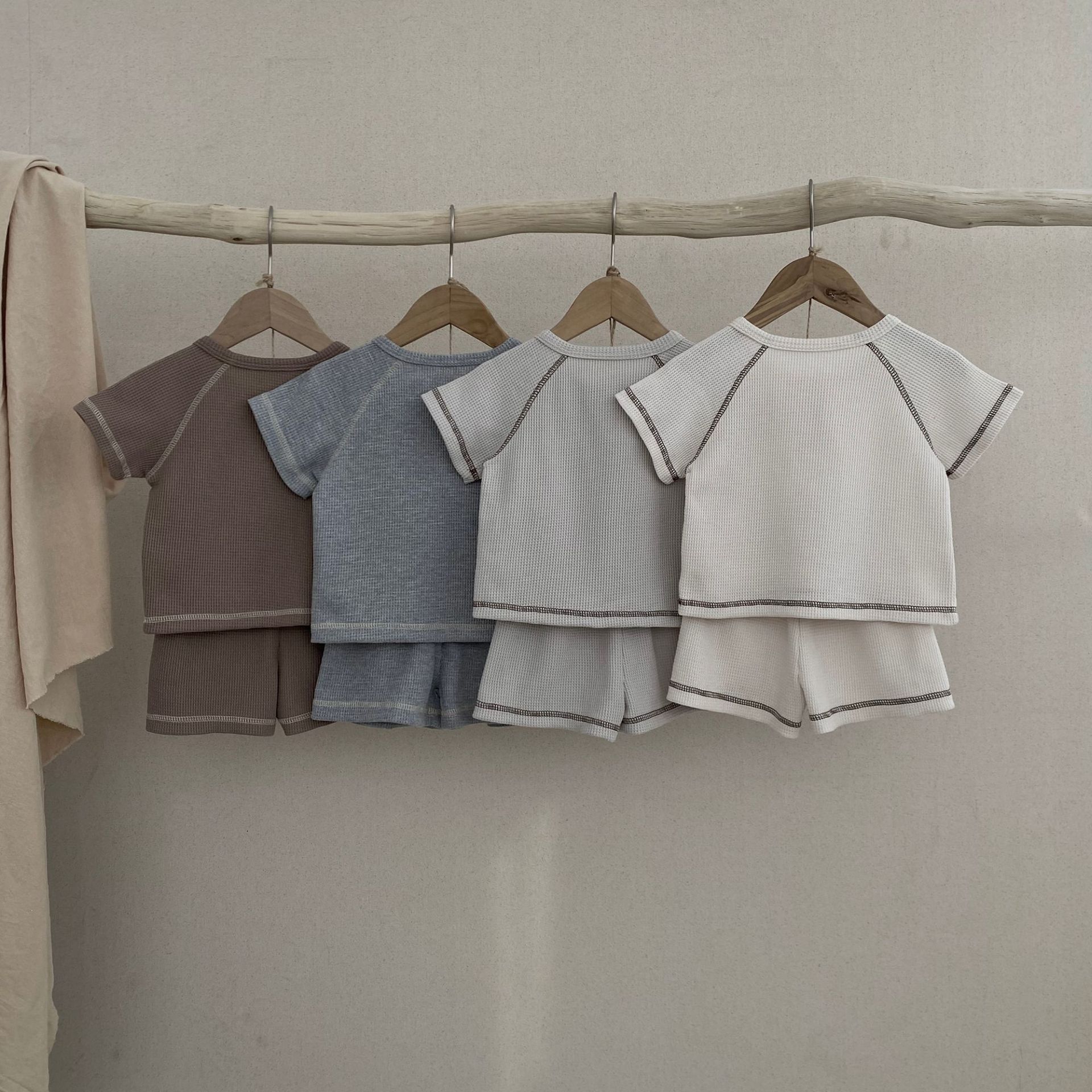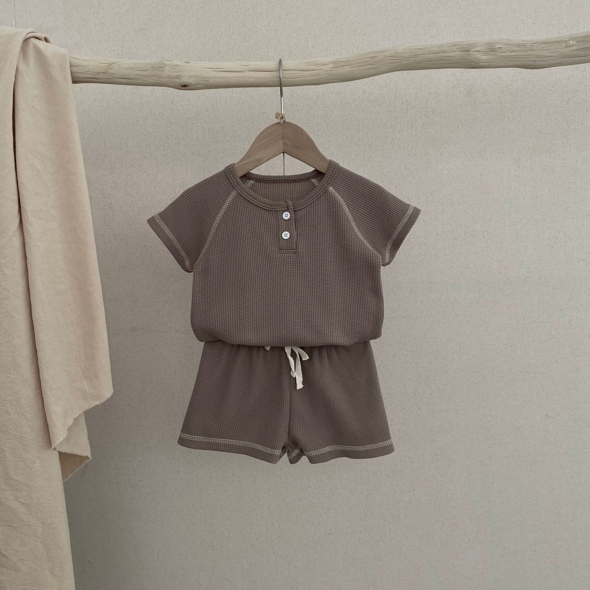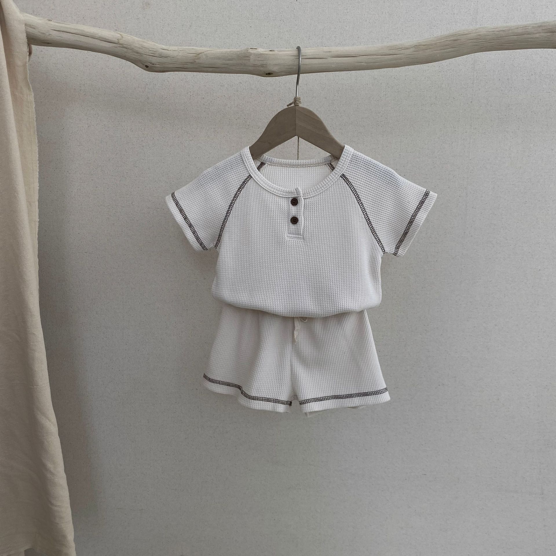 26여름 신상 한국판 아동복 세트 인스타 스타일 유아용 와플 반팔 투피스 세트 아동 여름 스포츠 세트스토어 가기
