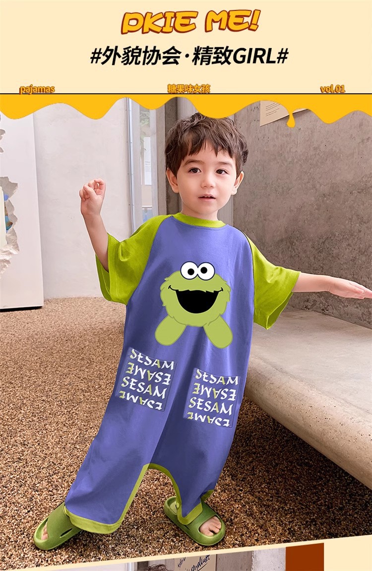 여름 반팔 어린이 가정 옷 소년의 한 몸 잠옷 소녀의 만화 등반 옷 아기의 방한식 침낭스토어 가기