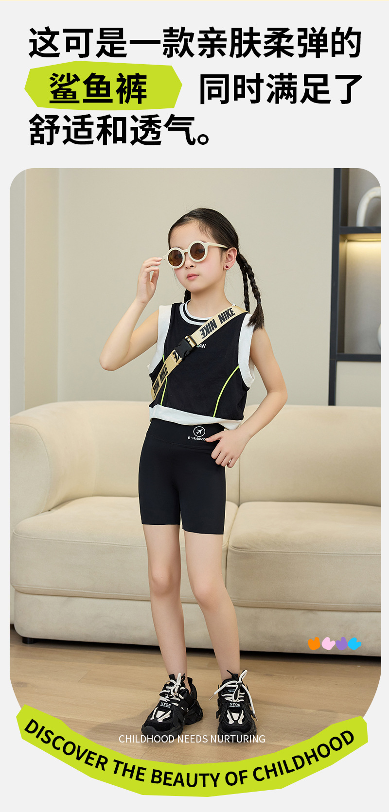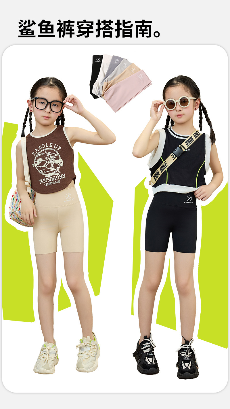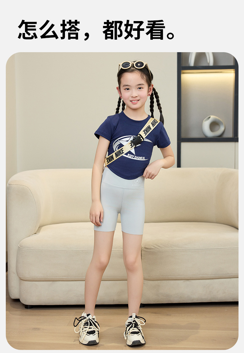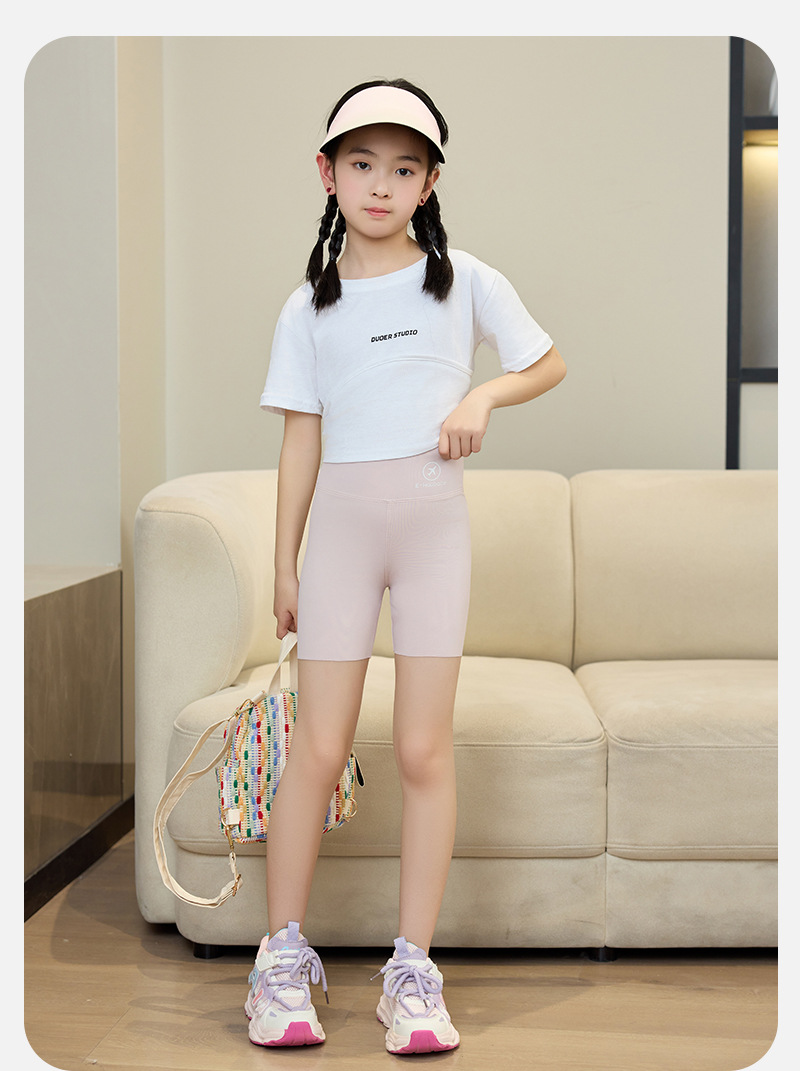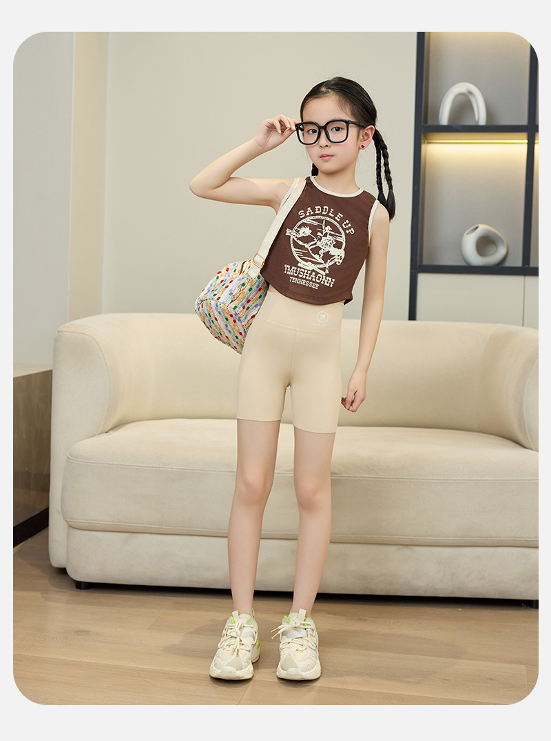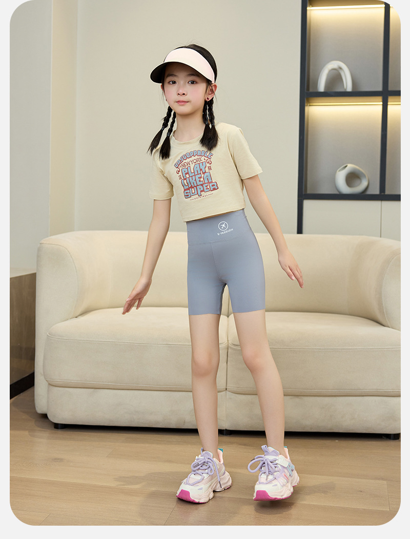 2024 새로운 소녀 안전 바지 여름 얇은 외부 중다 어린이 3 부 바지 높은 허리 스트레치 레깅스 착용스토어 가기