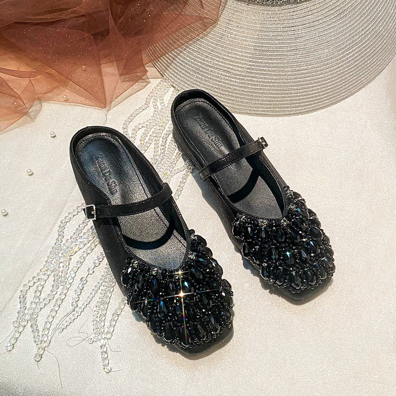 2026년 신상 메리제인 스퀘어토 두꺼운 굽 한국 스타일 워터다이아몬드 장식 만능 포인티드토 미들힐 샌들 여성용 대형 사이즈 41~43스토어 가기