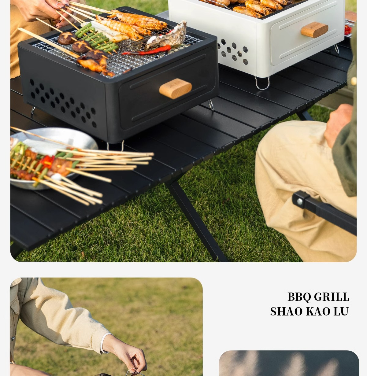 야외 캠핑 바베큐 스토브 홈 안뜰 휴대용 숯불 바베큐 광장 스토브 차 만들기 쉬운 청소 서랍 스토브