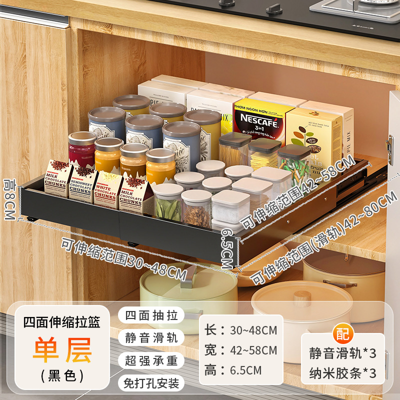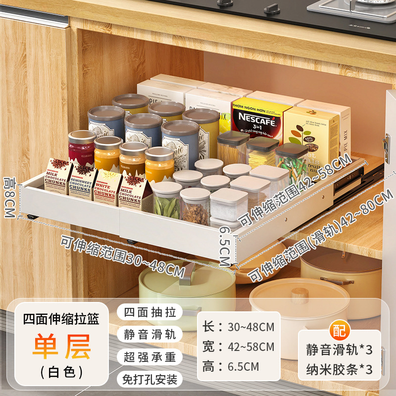 개폐식 캐비닛 내부 서랍 저장 랙 낮은 싱크 조미료 식기 저장 캐비닛 유형 당겨 저장 바구니 팬 랙