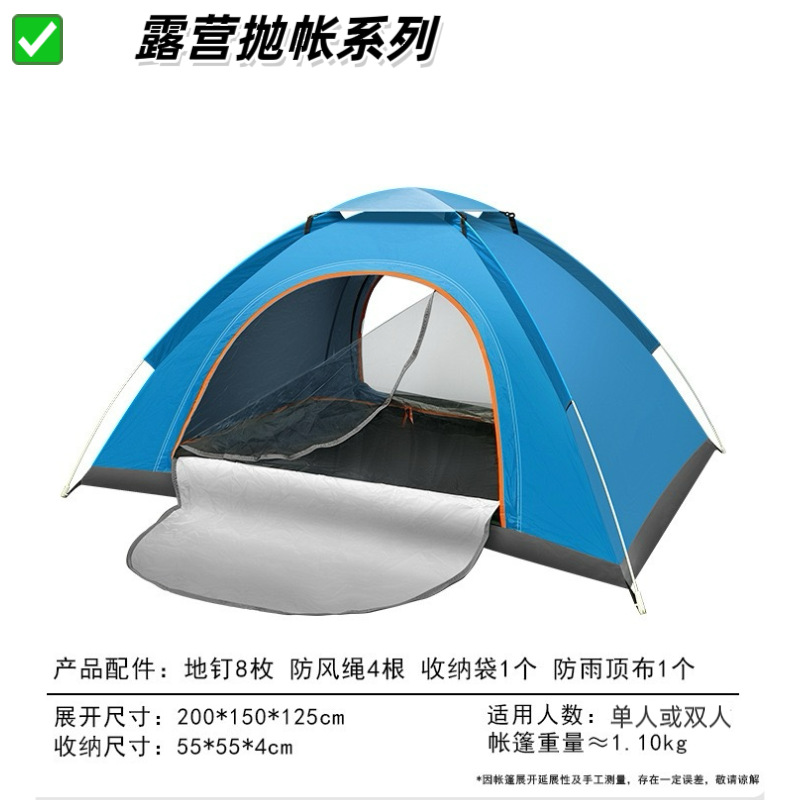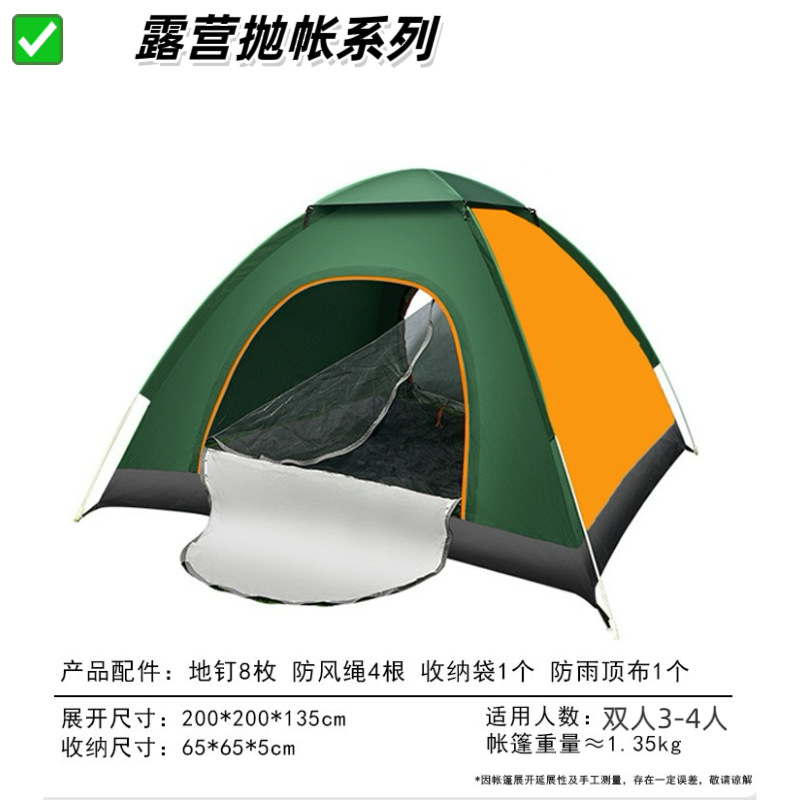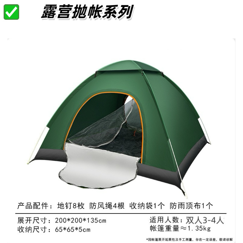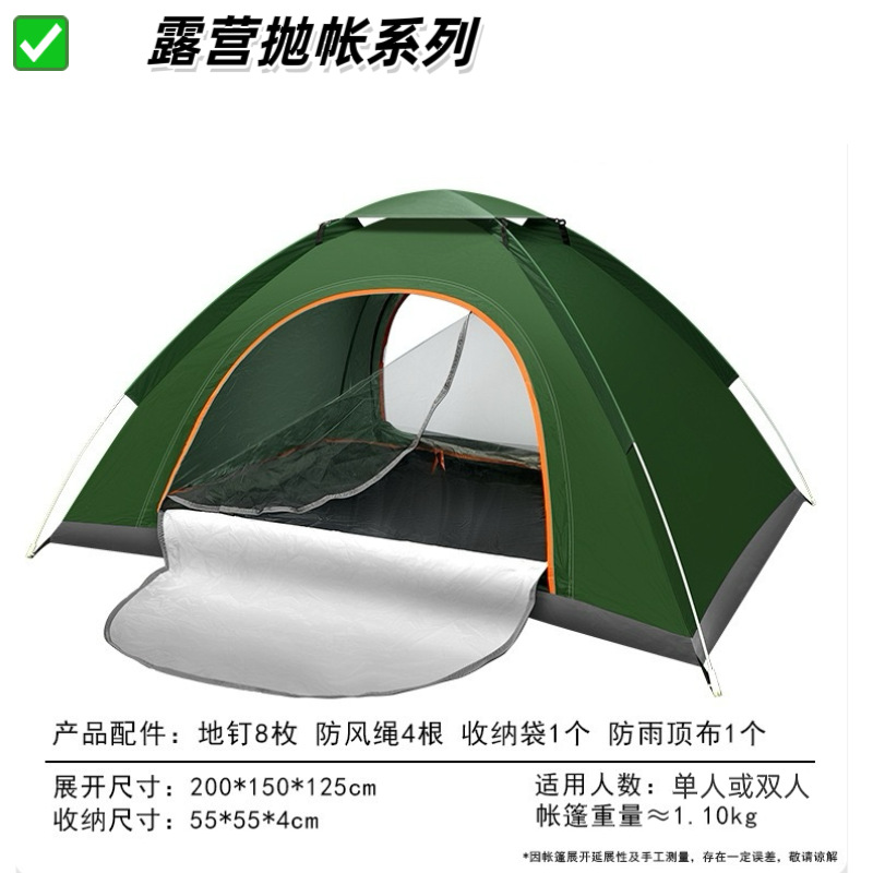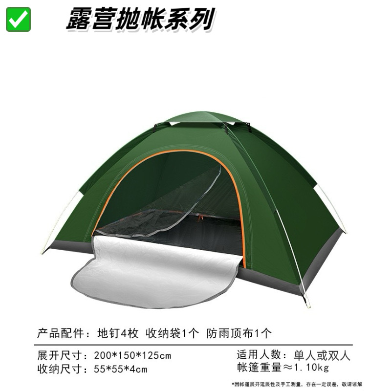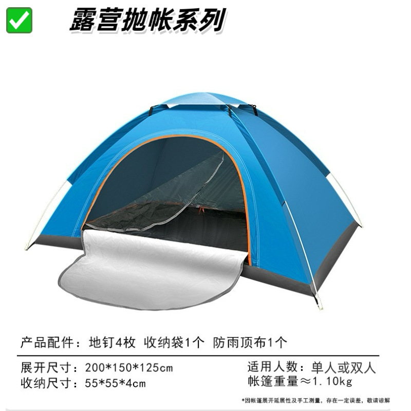 【产品特点】2秒速开,一抛即开,无需搭建,可适用于户外野营、公园休闲等实用面广。涤塔夫涂银面料,防晒健康无异味。纤维帐杆任性好不易损坏。便携式包装袋,体积小携带方便。