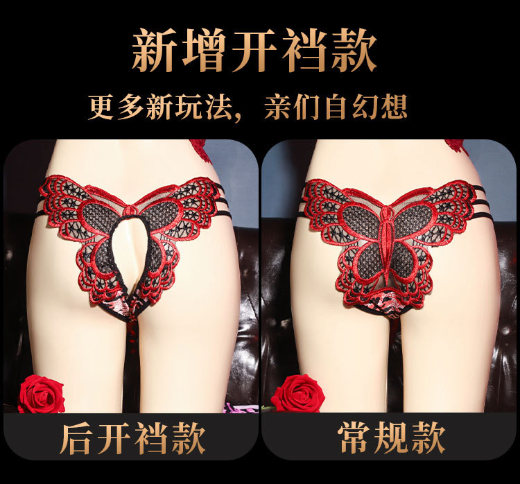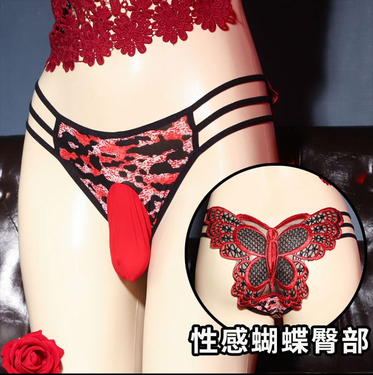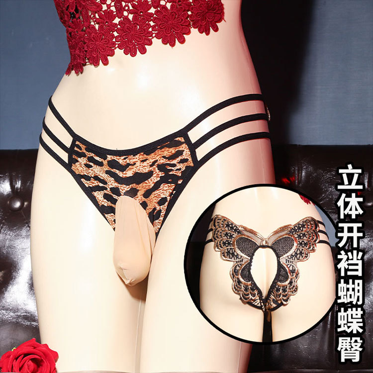 남자의 섹시한 3D 나비 자수 코끼리 코 속옷 재미 낮은 허리 크로치 오픈 총알 분할 브리프