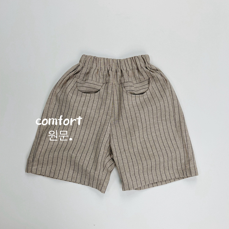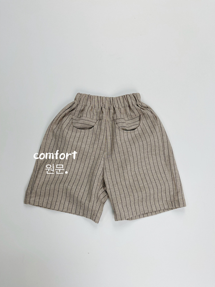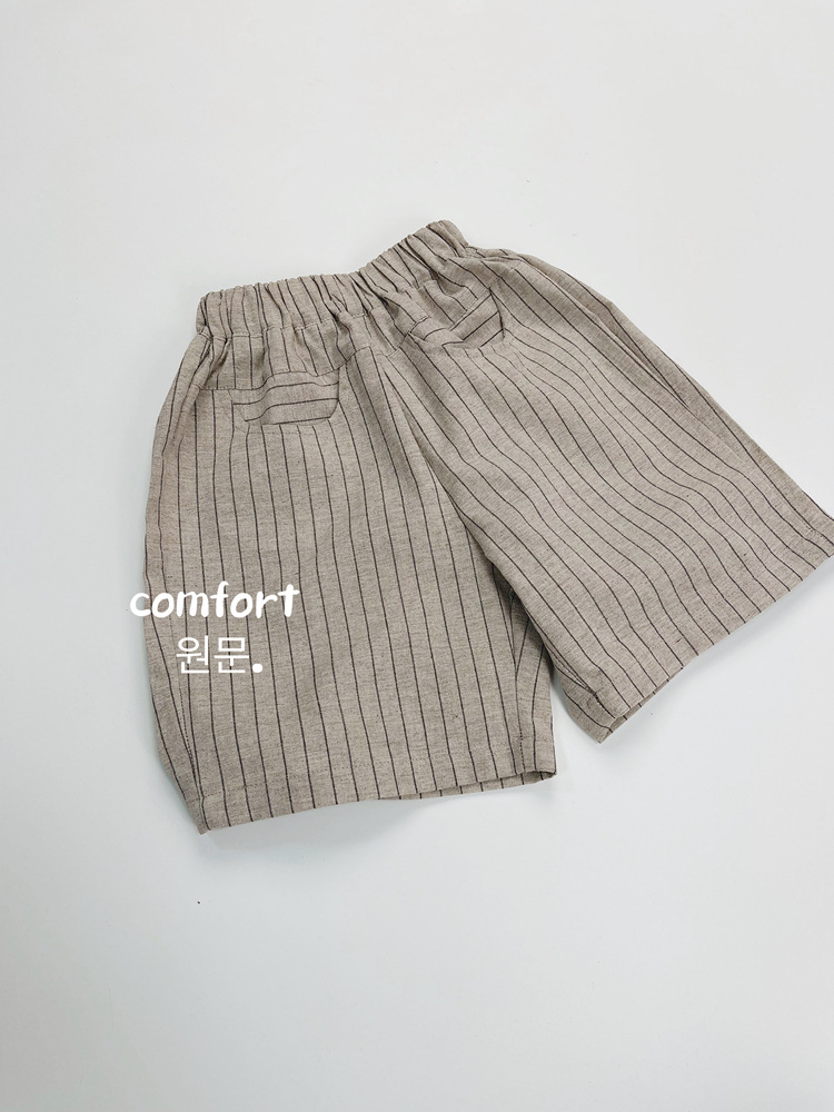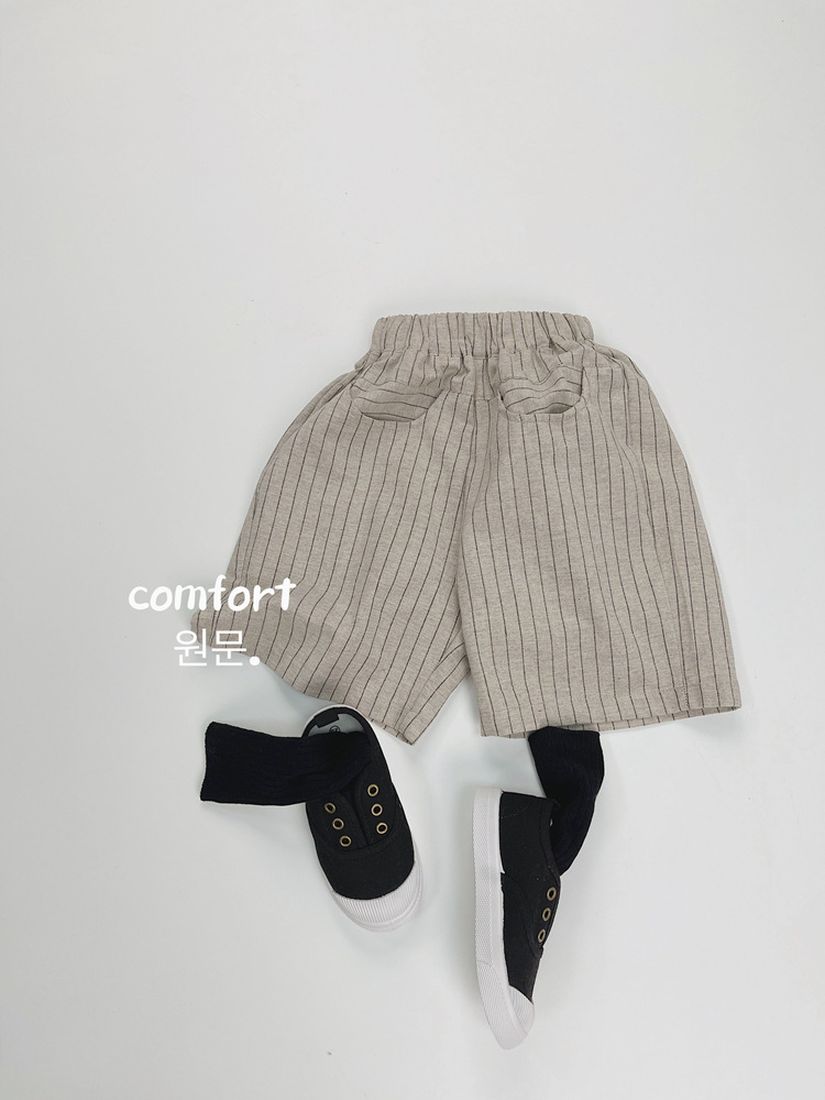 한국식 어린이 줄무늬 린넨 중간 길이 바지 여름 새 얇은 수직 5 개 바지 어린이 느슨한 중간 길이 바지스토어 가기