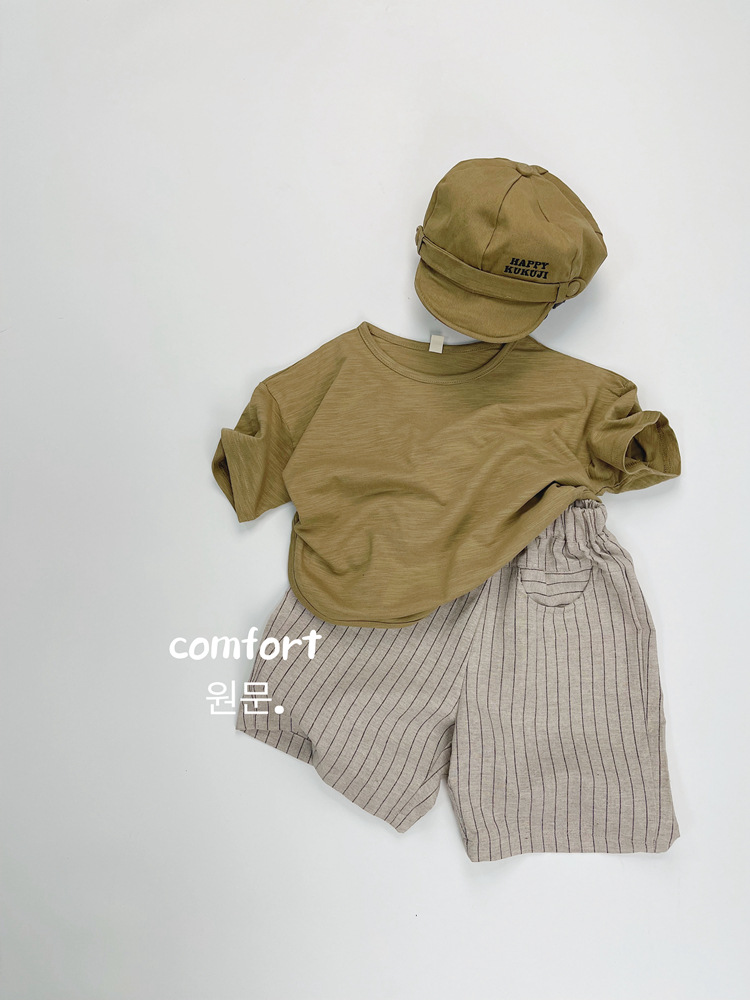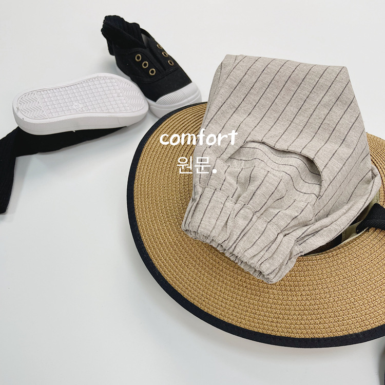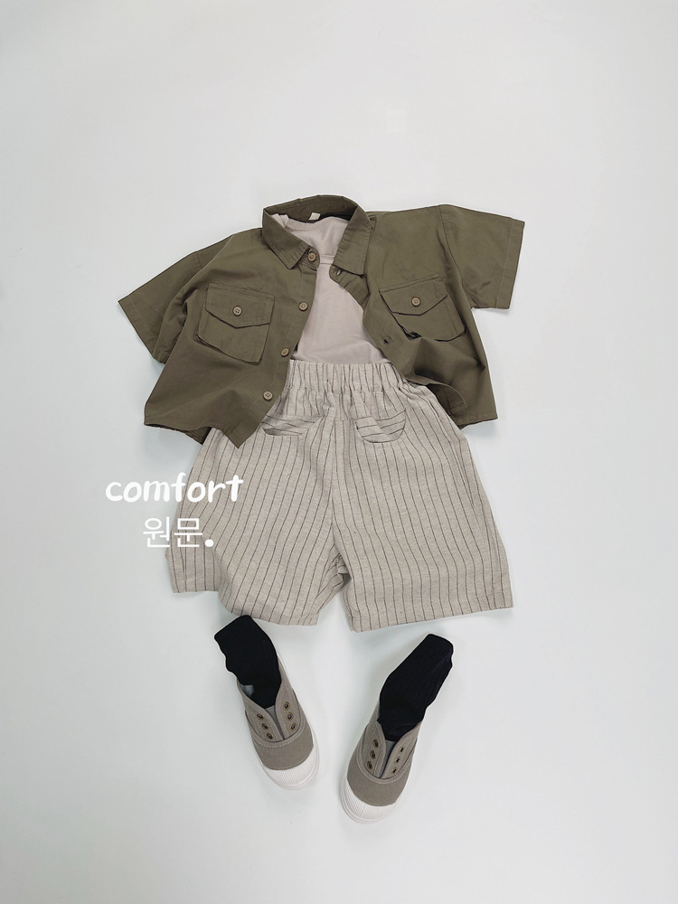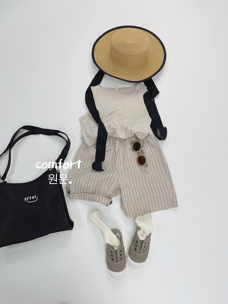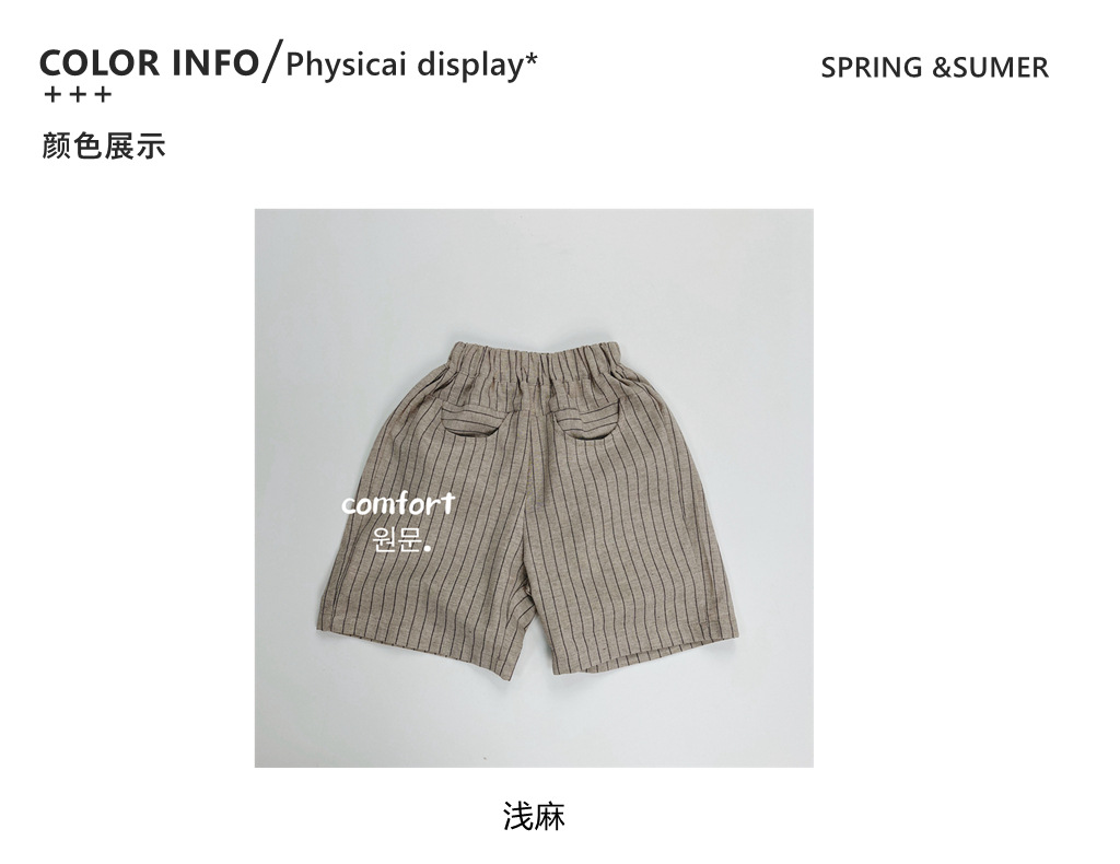 한국식 어린이 줄무늬 린넨 중간 길이 바지 여름 새 얇은 수직 5 개 바지 어린이 느슨한 중간 길이 바지스토어 가기